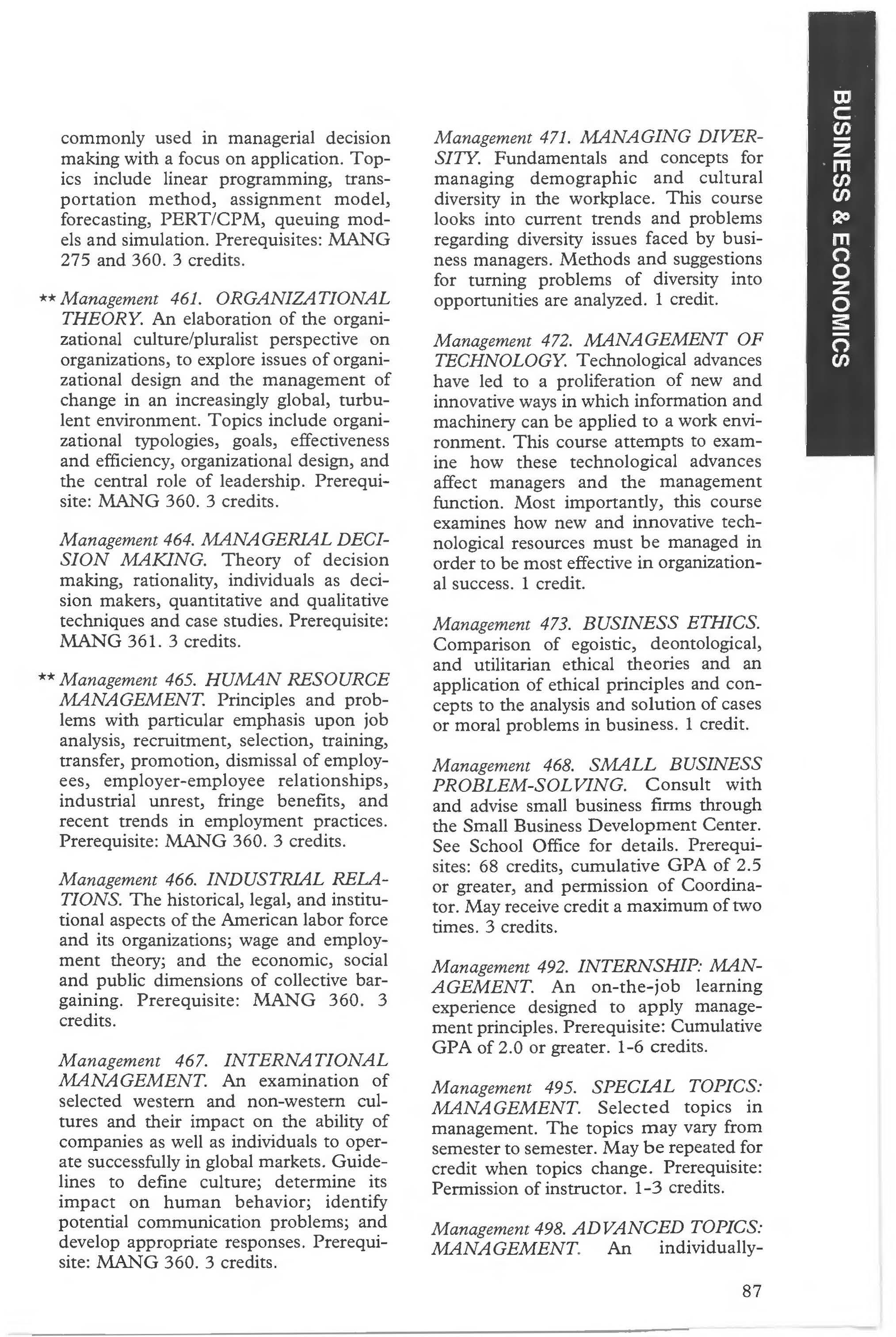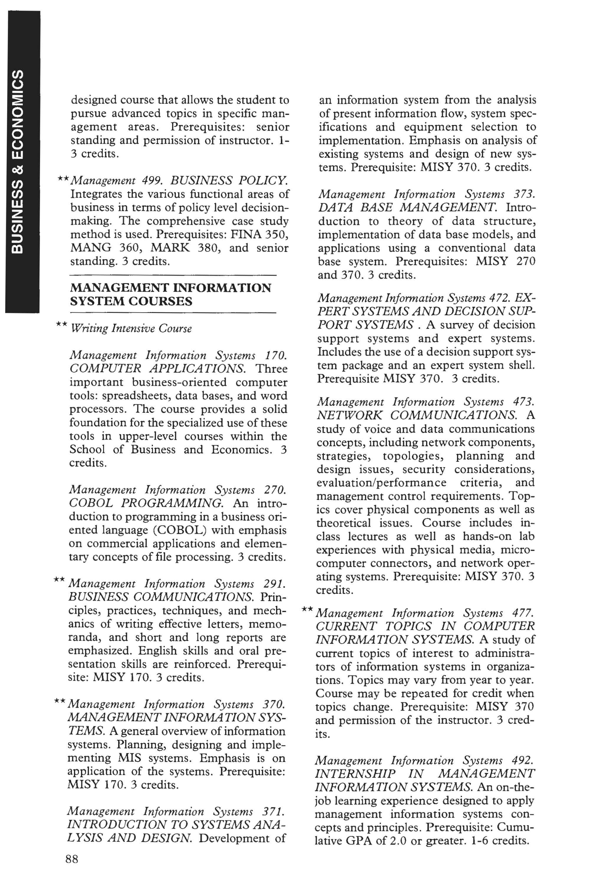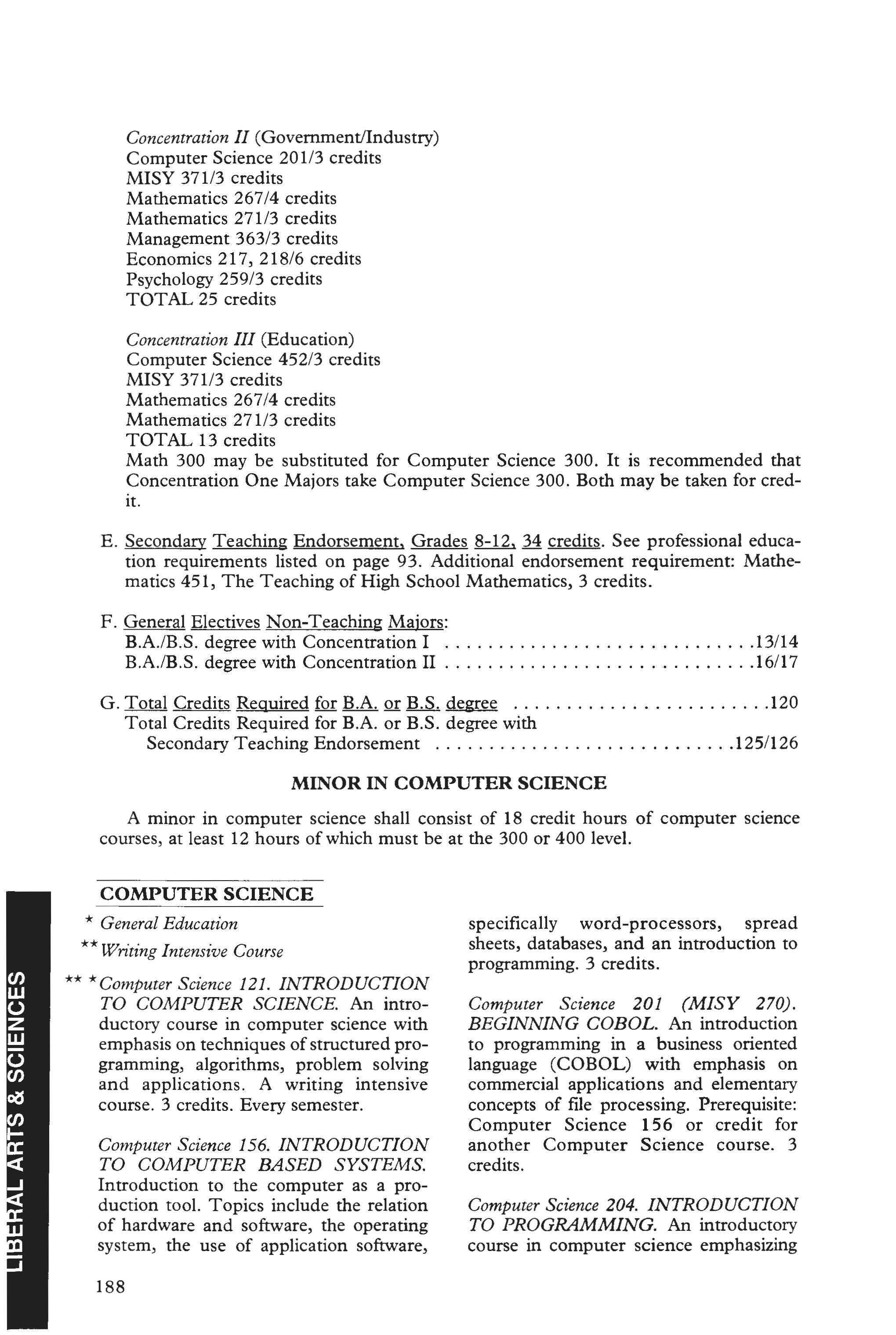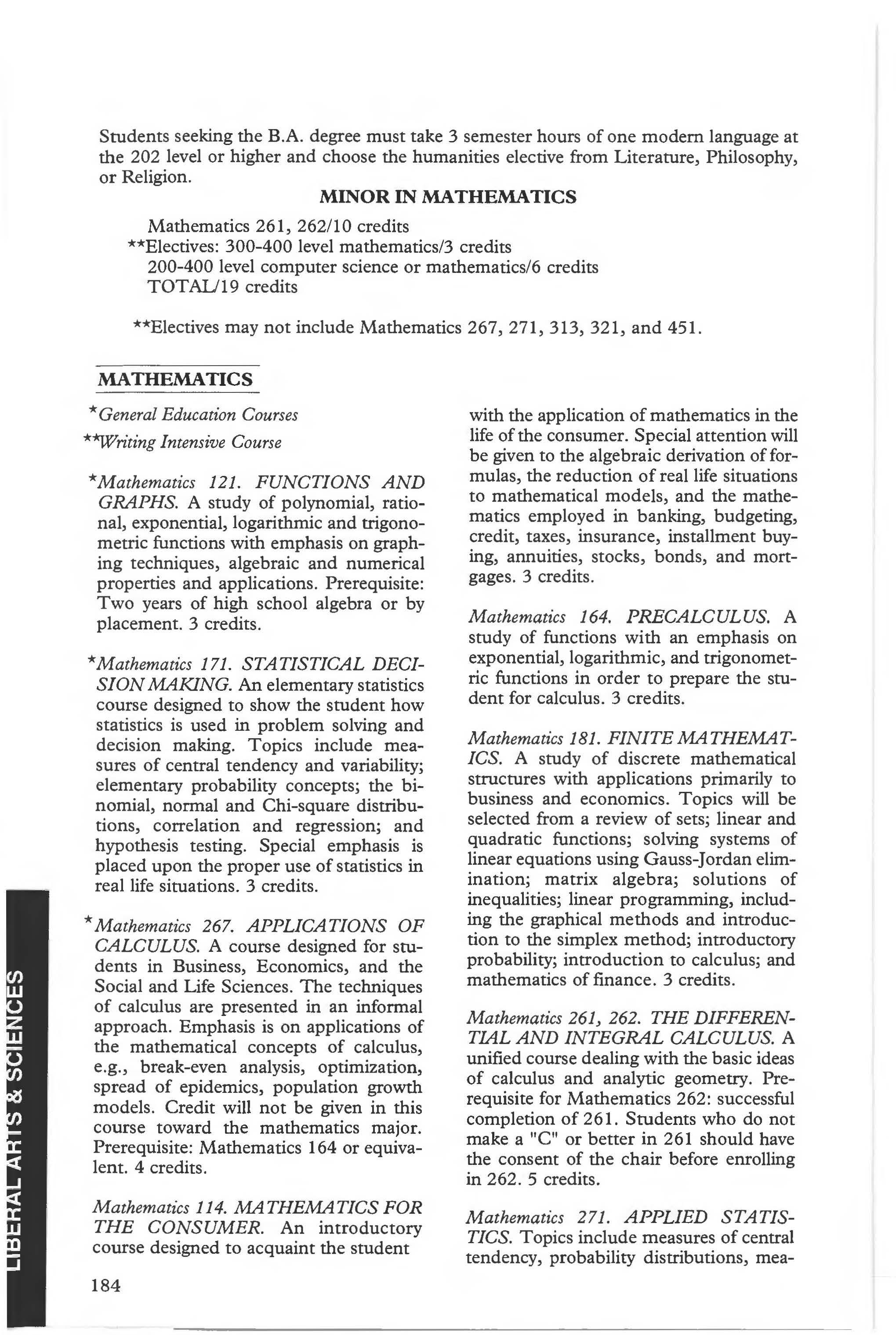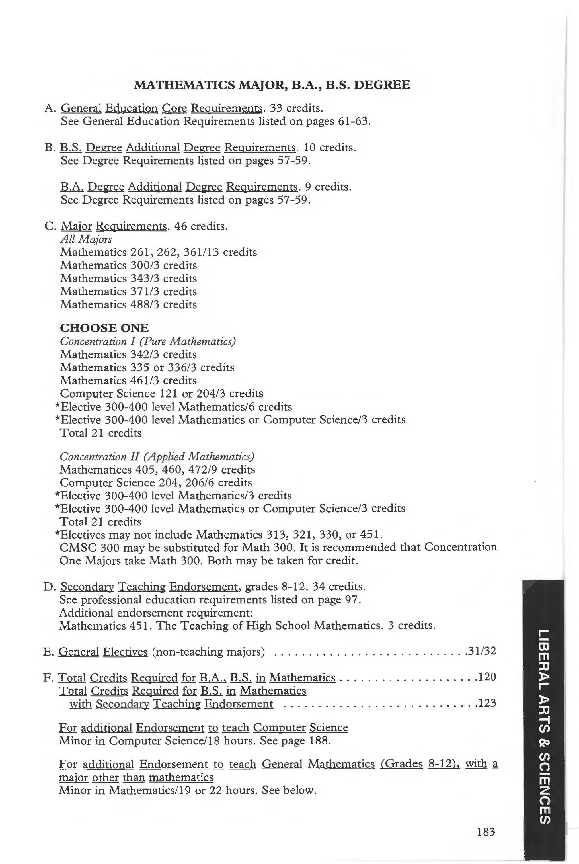 Major Program, Requirements 58 Management & Marketing, Program .................. 74-75 Management Courses 86-88 Management Information Systems Courses ....... ... . 88-89 Marketing Courses ............ .. 89 Mathematics Courses 184-187 Mathematics Major, B.A., B.S . Degree 183-184