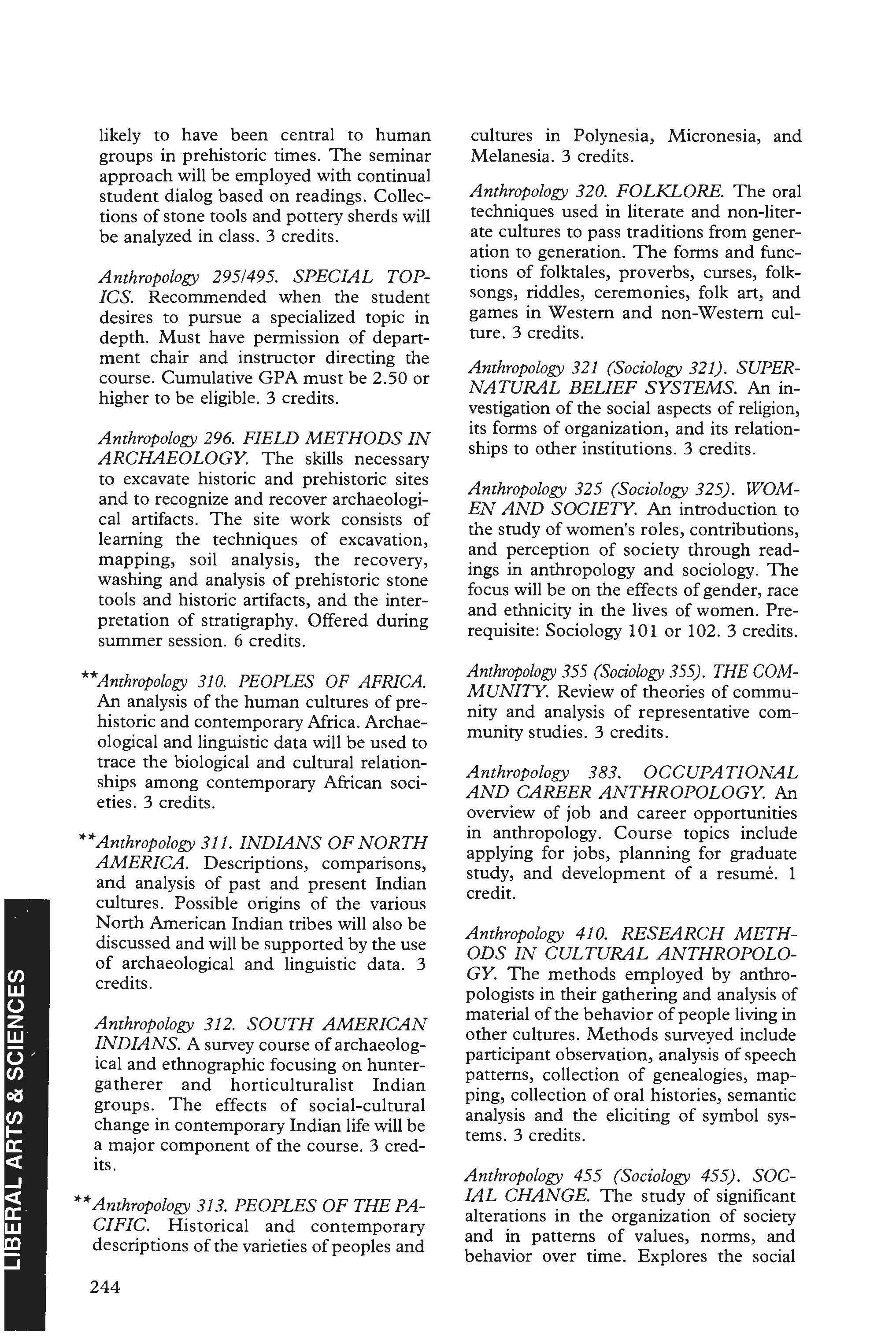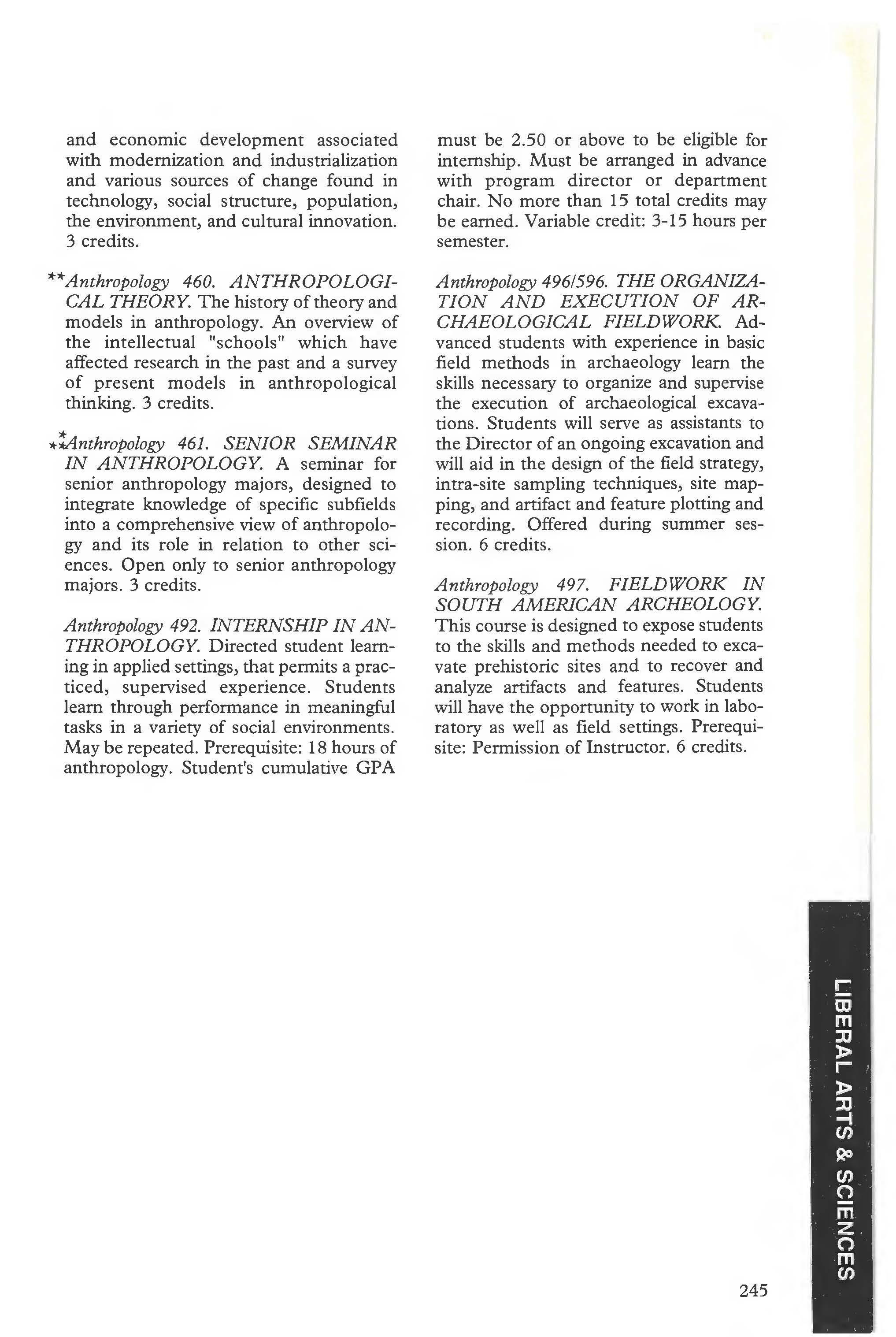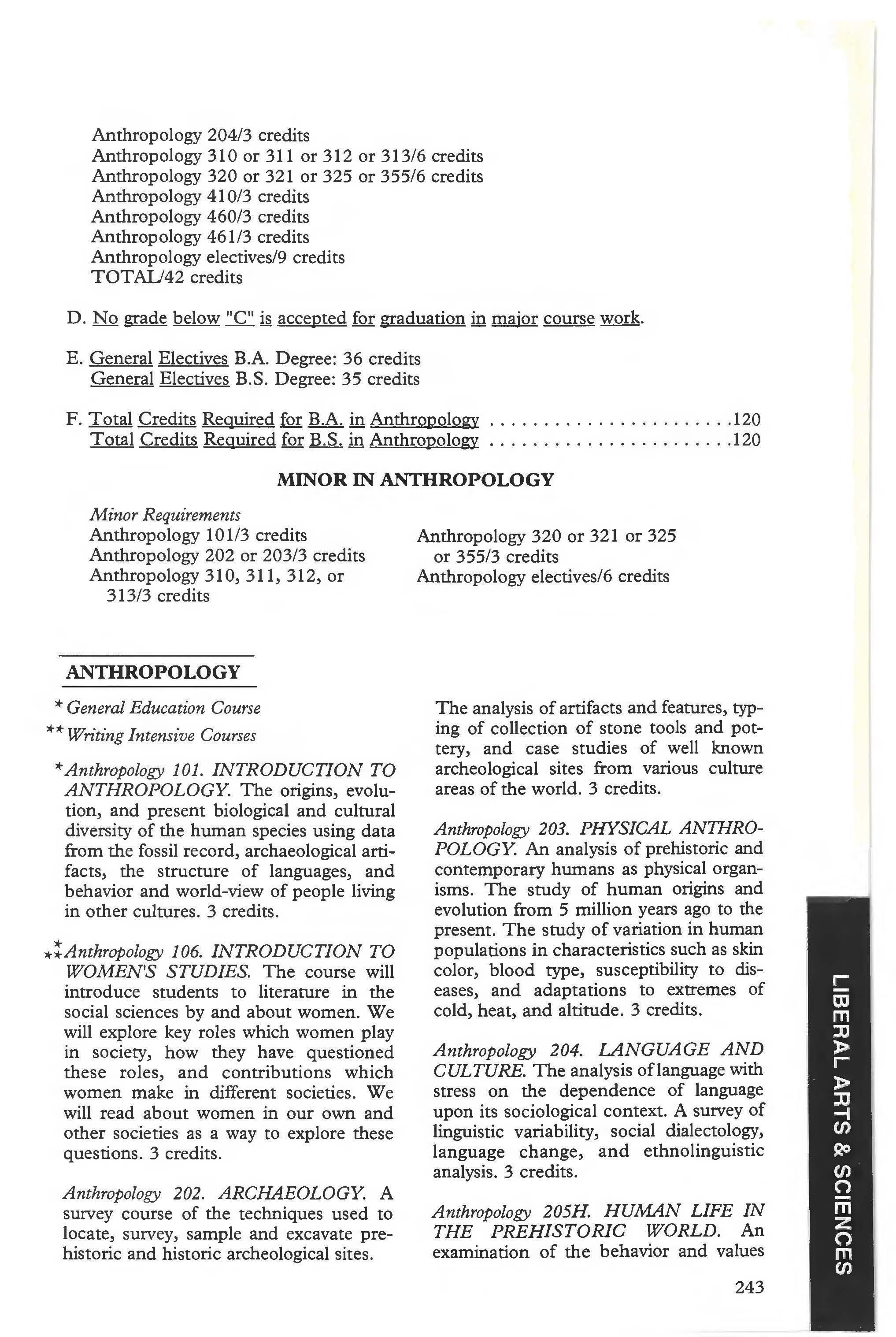 Admission Into the Teacher Education Program 94 Admission Into Student Teaching Program 94 Anthropology Courses 243-245 Anthropology Major, B.A., B.S. Degree 242-243 Anthropology Minor ..... . ..... .243 Anthropology Program ....... 242-243 Application for Assistance Procedures 24