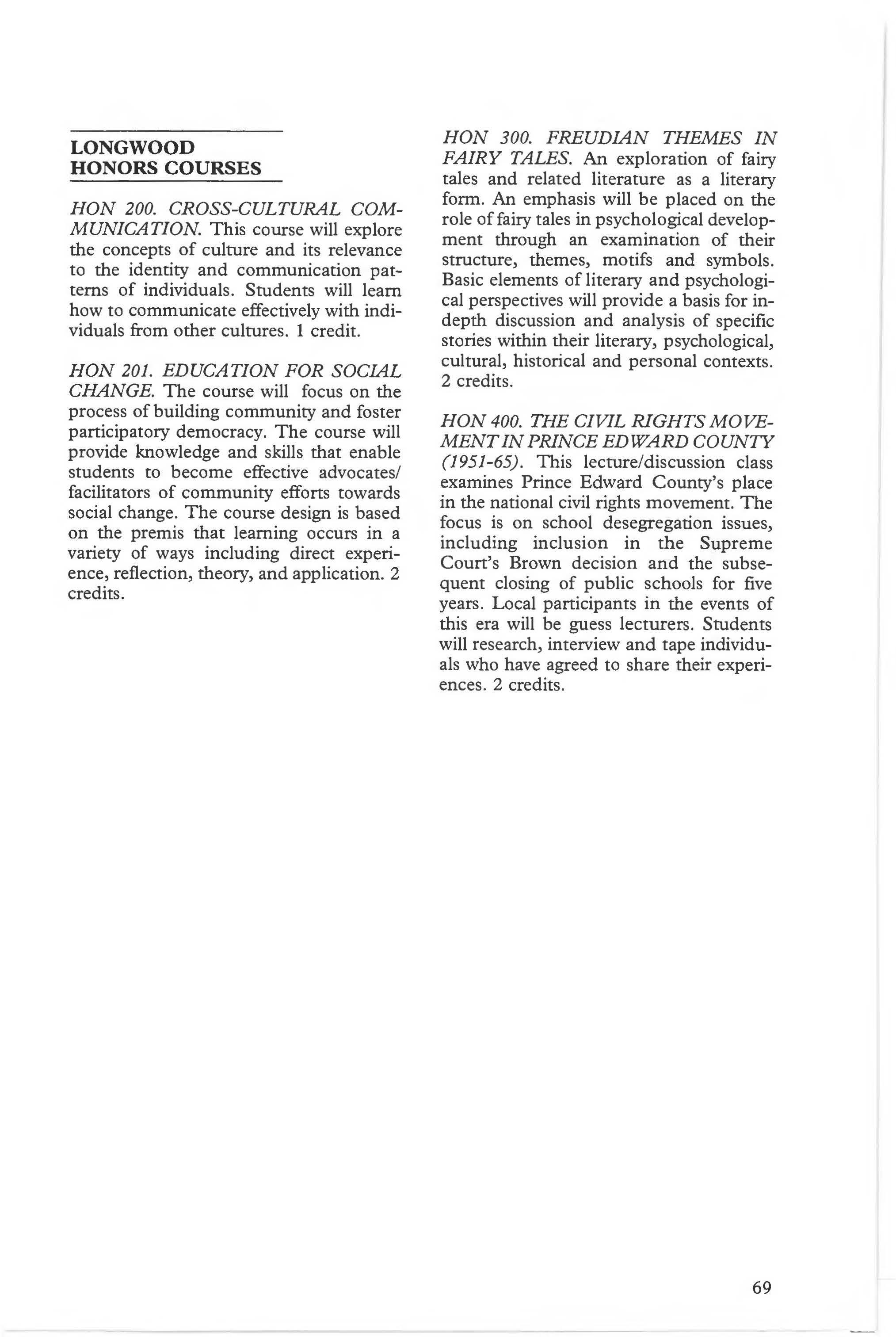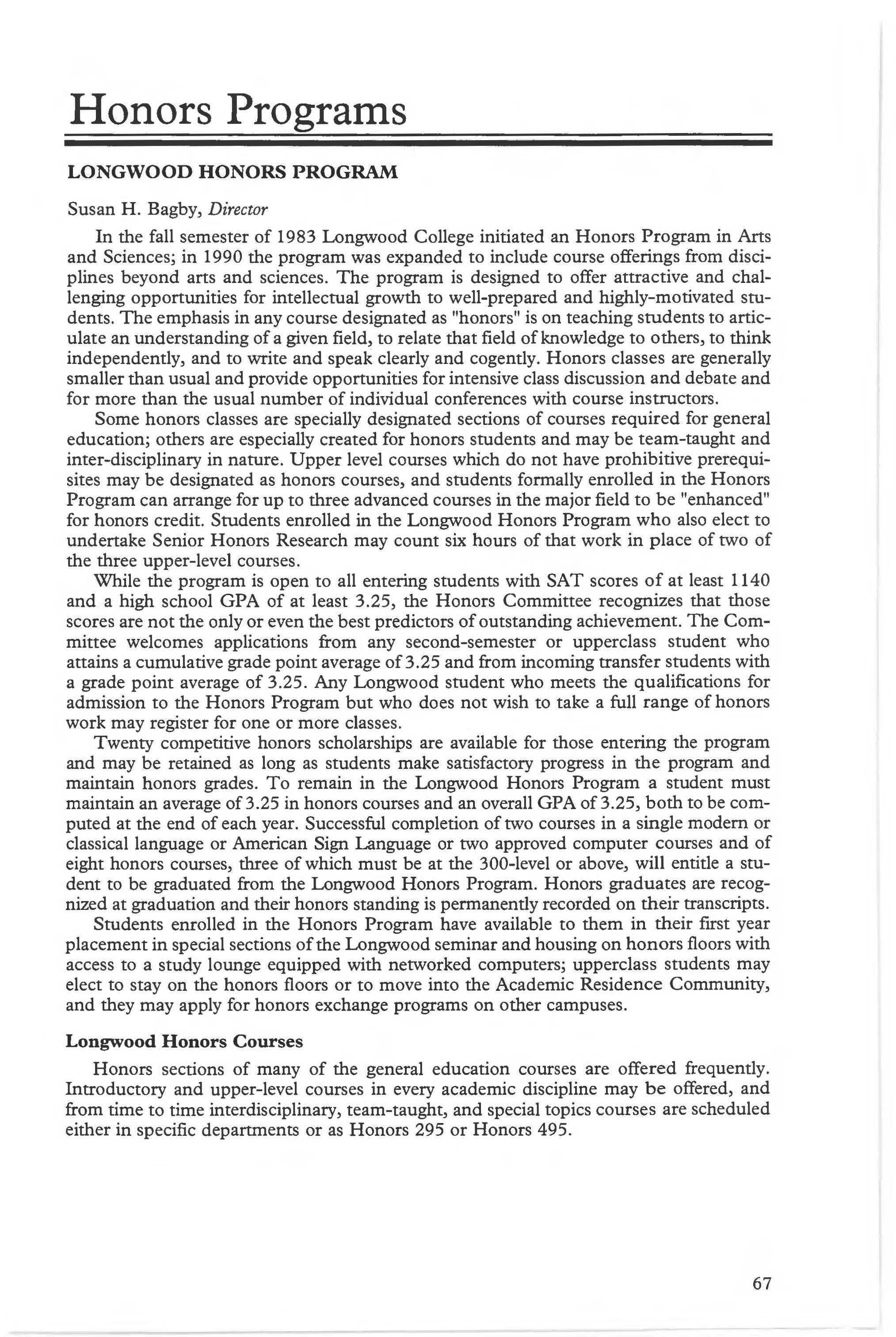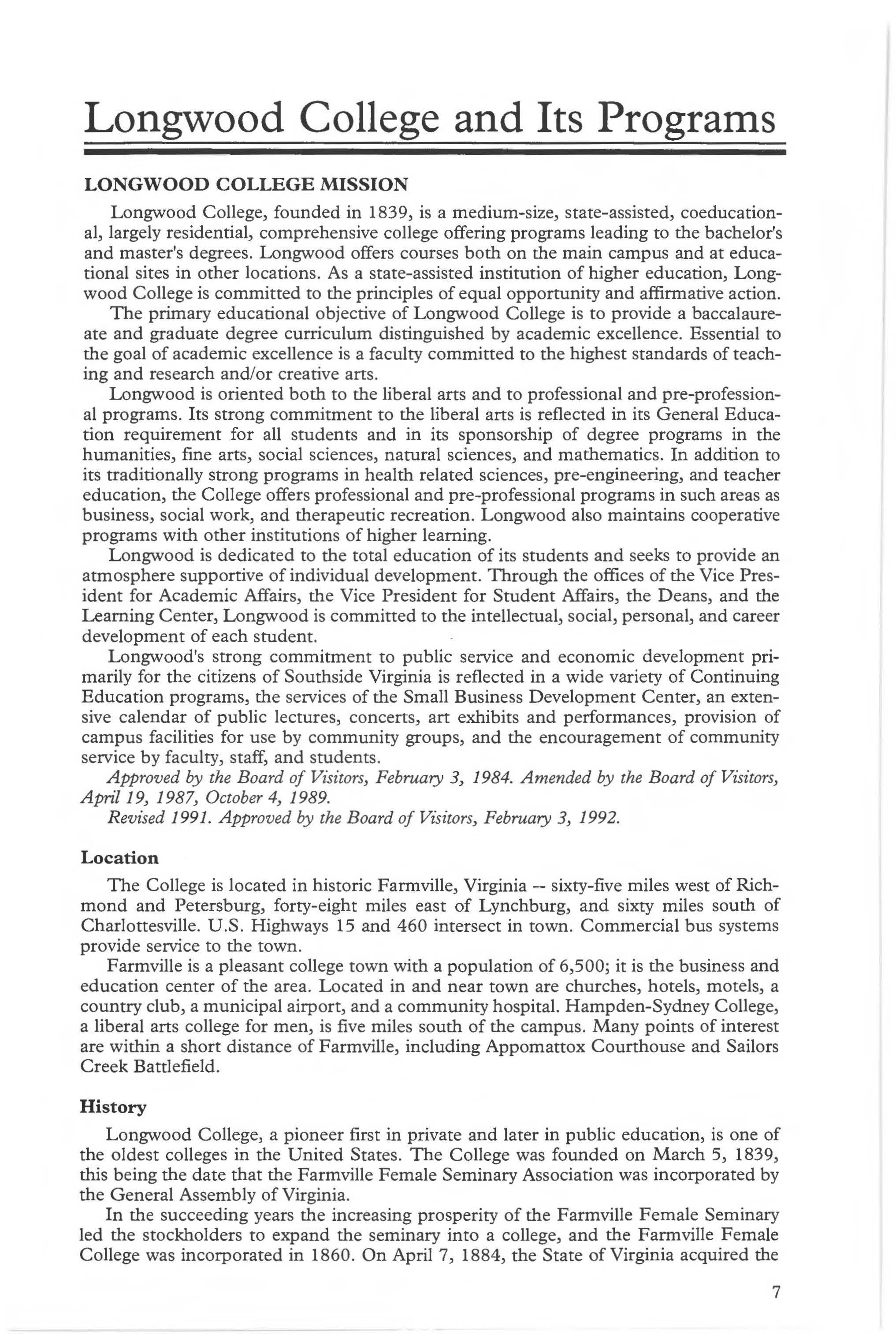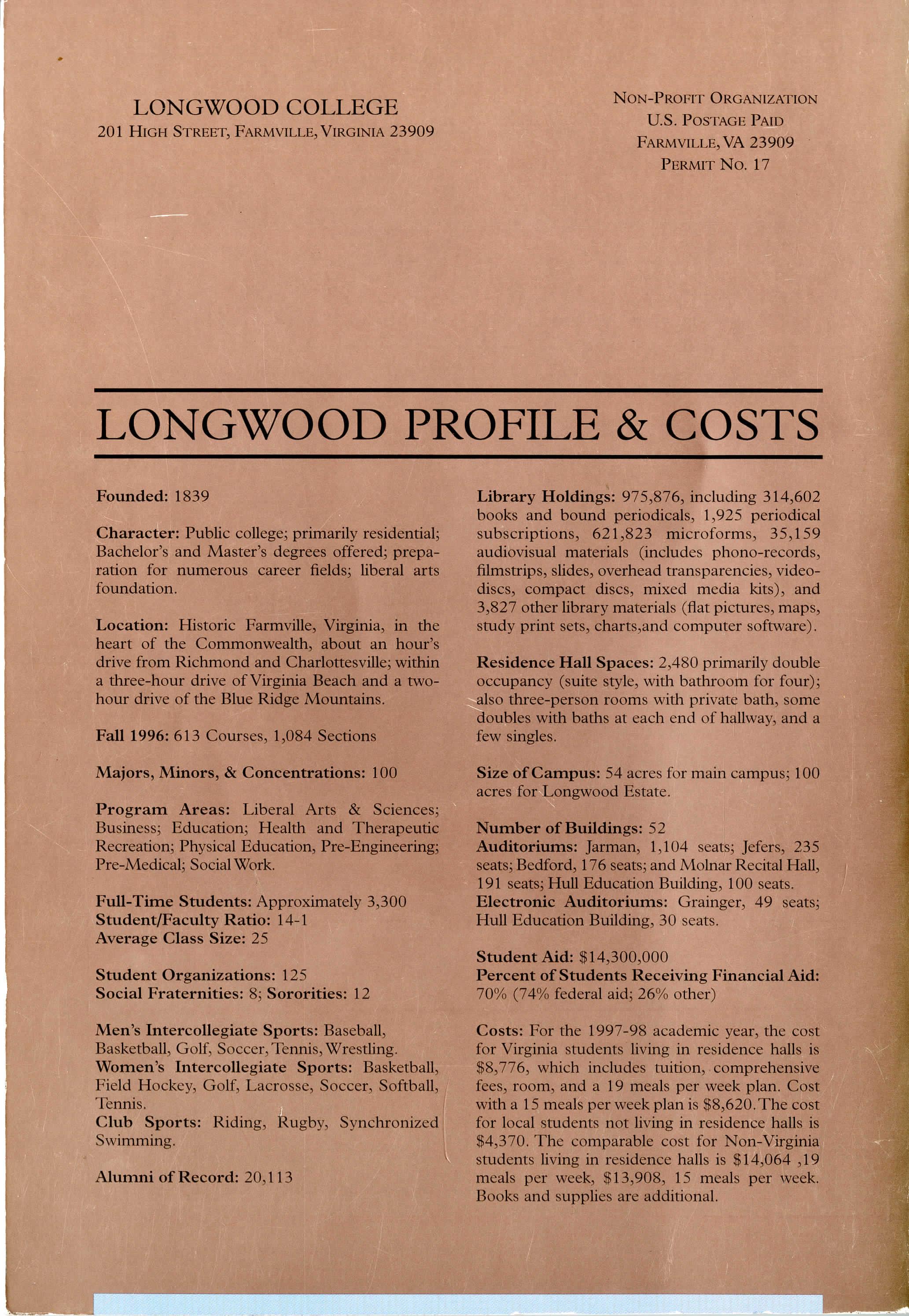 Longwood College & Its Programs .... 7 Longwood Profile & Cost Back Cover Longwood Seminar 57 Majors 54