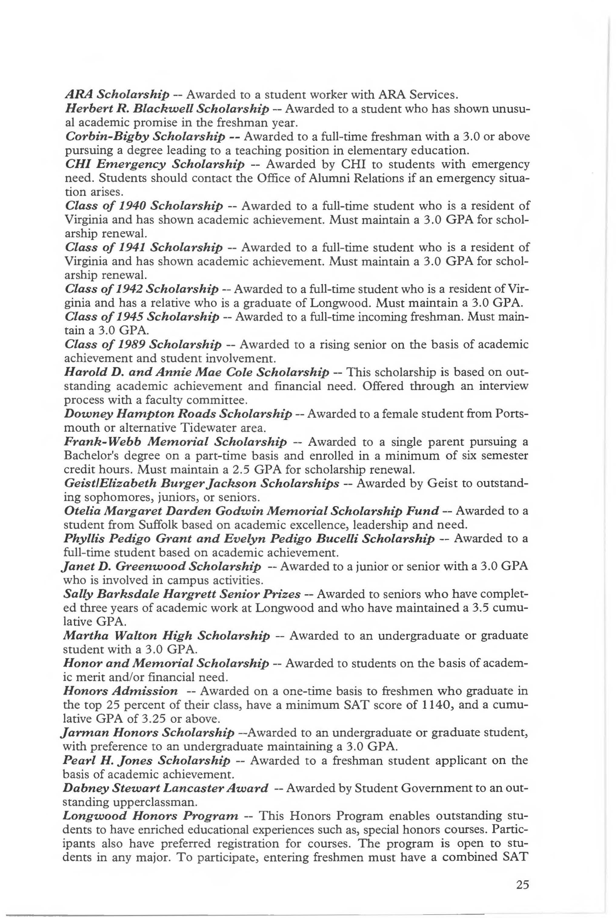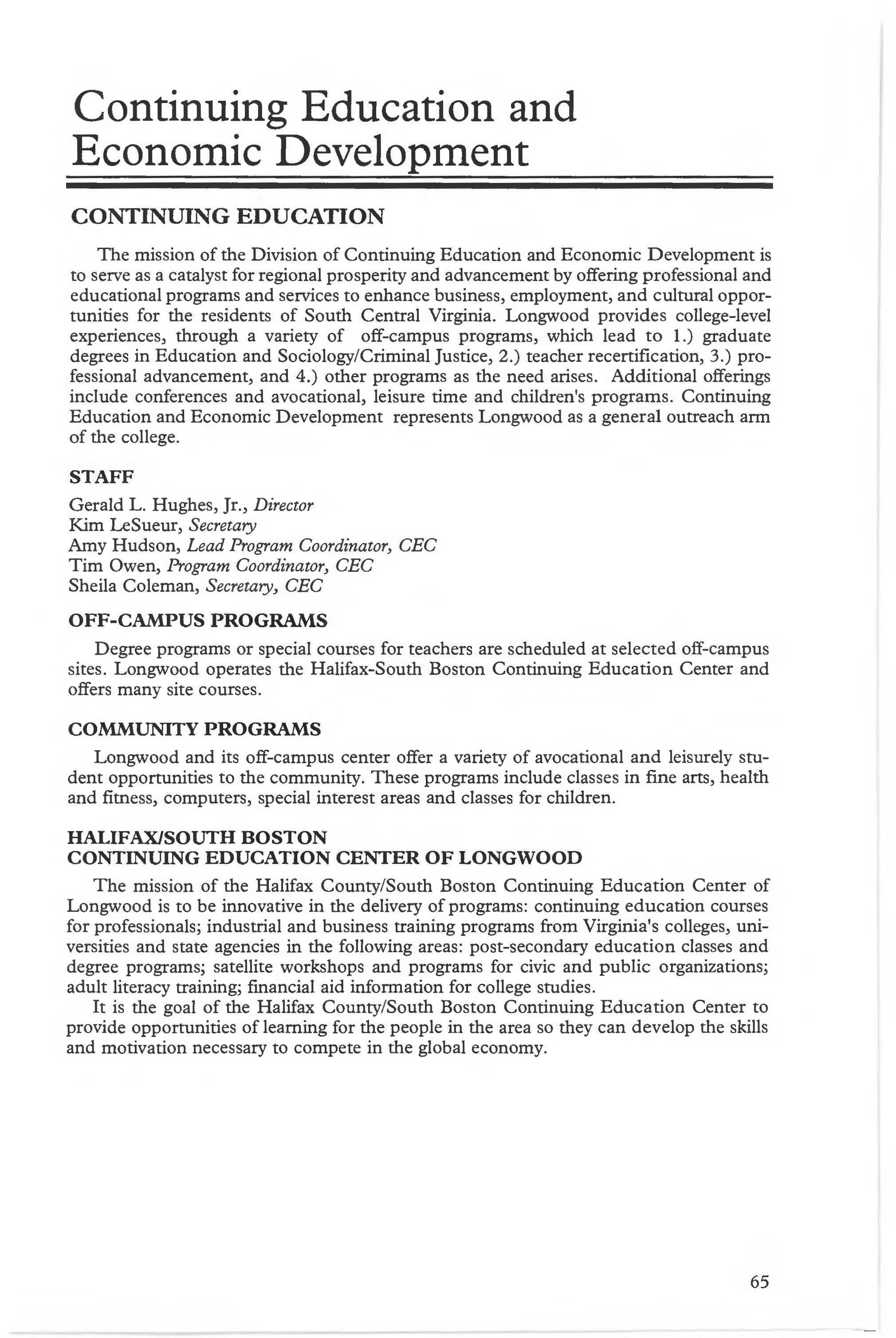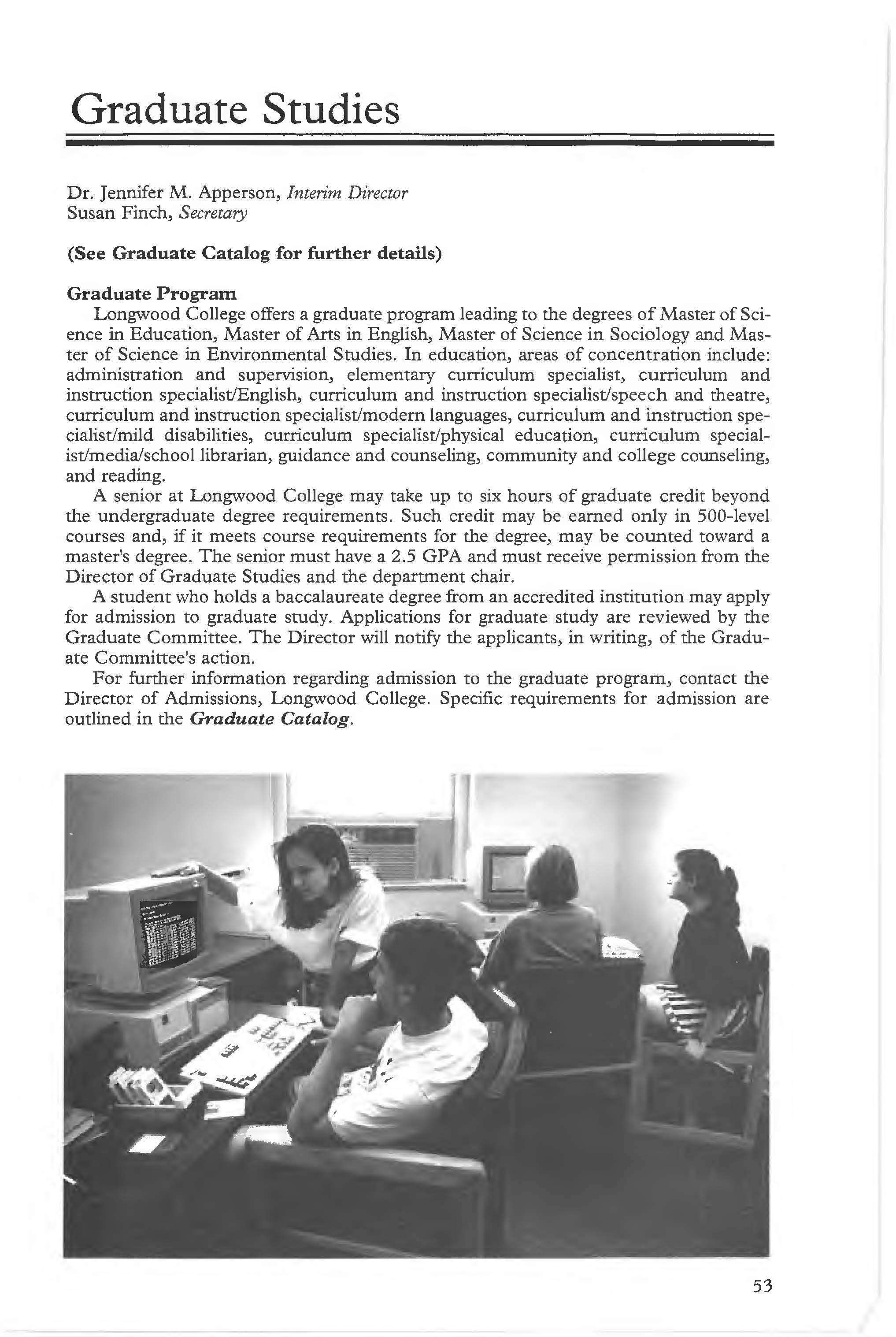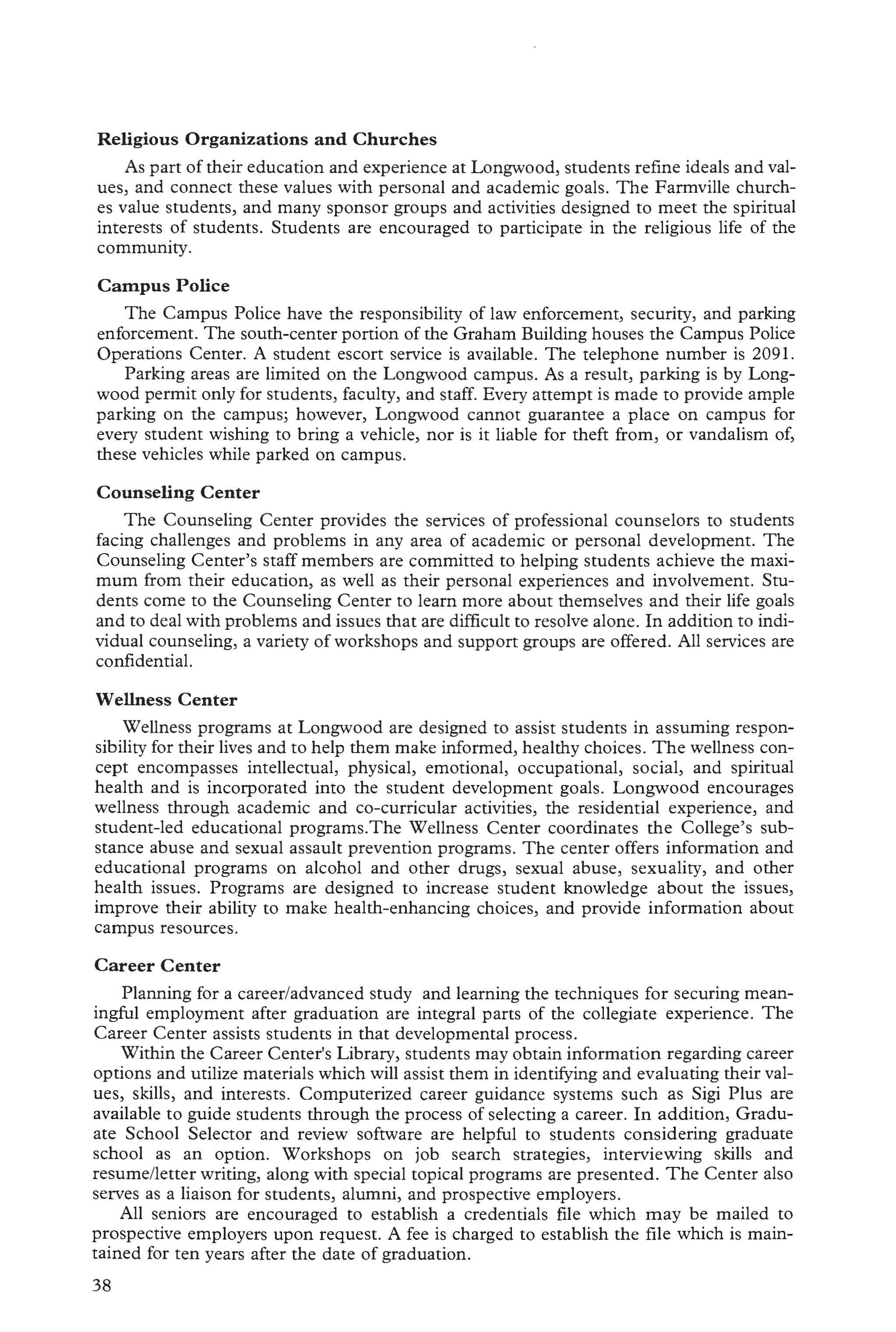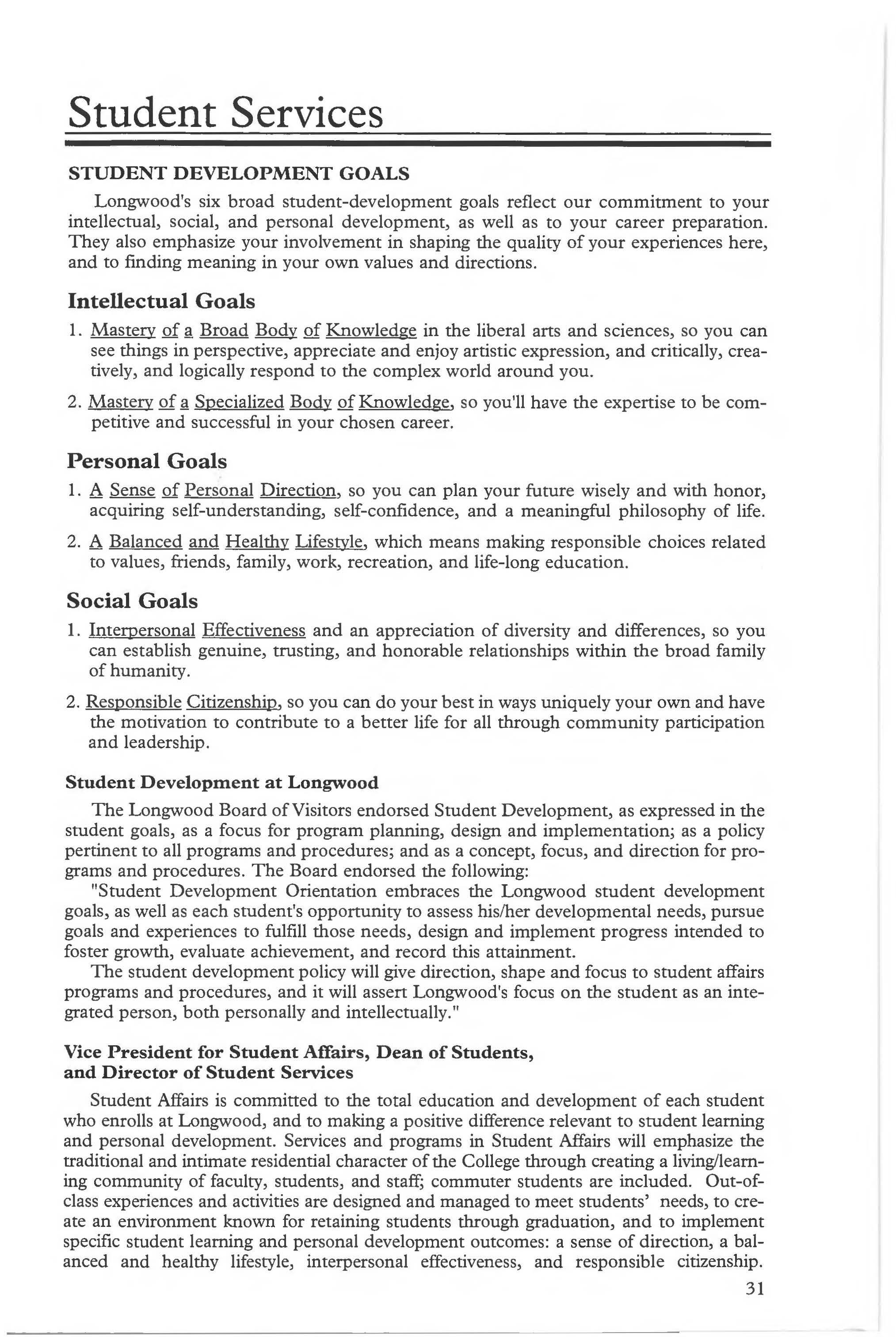 Longwood College & Its Programs .... 7 Longwood Profile & Cost Back Cover Longwood Seminar 57 Majors 54