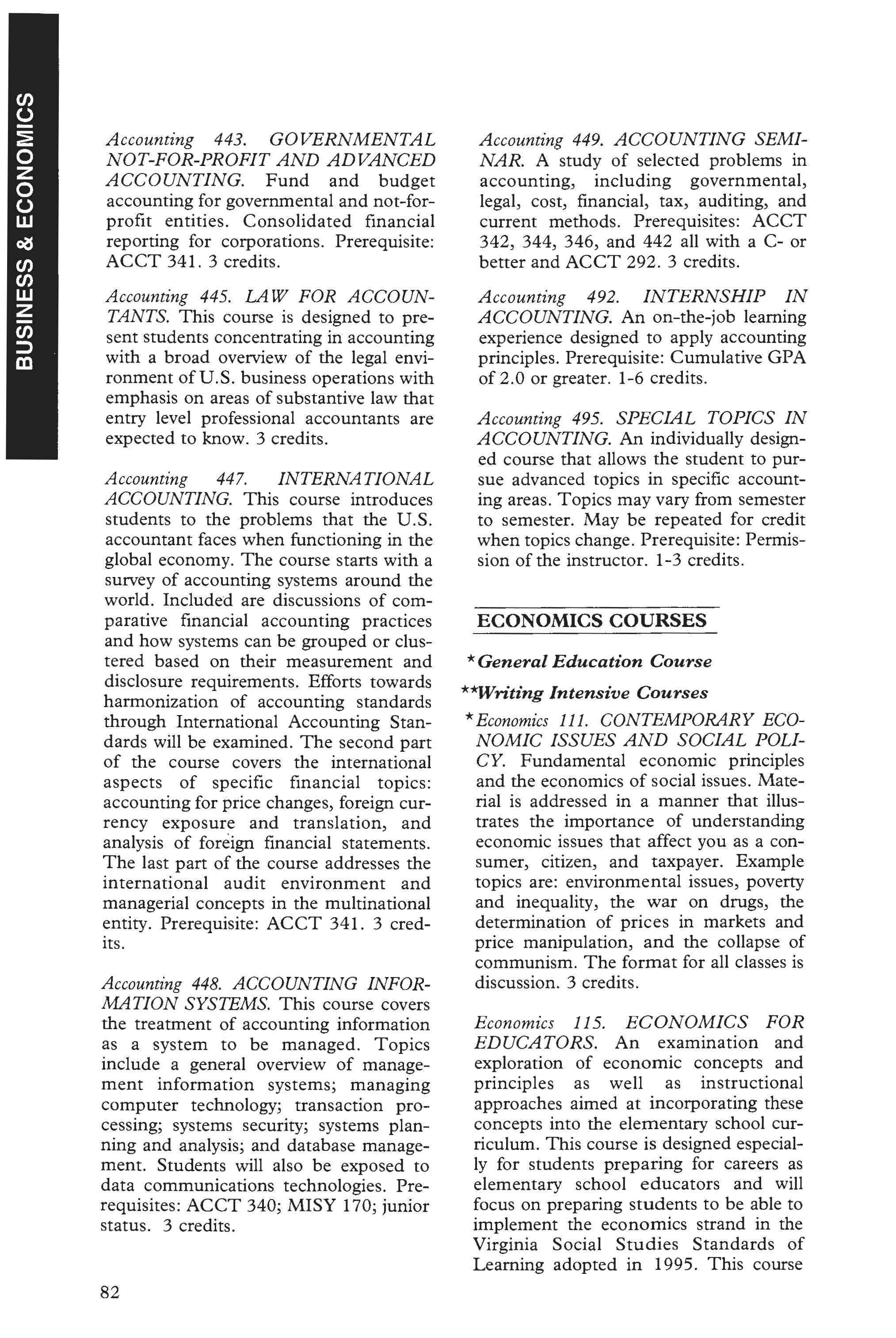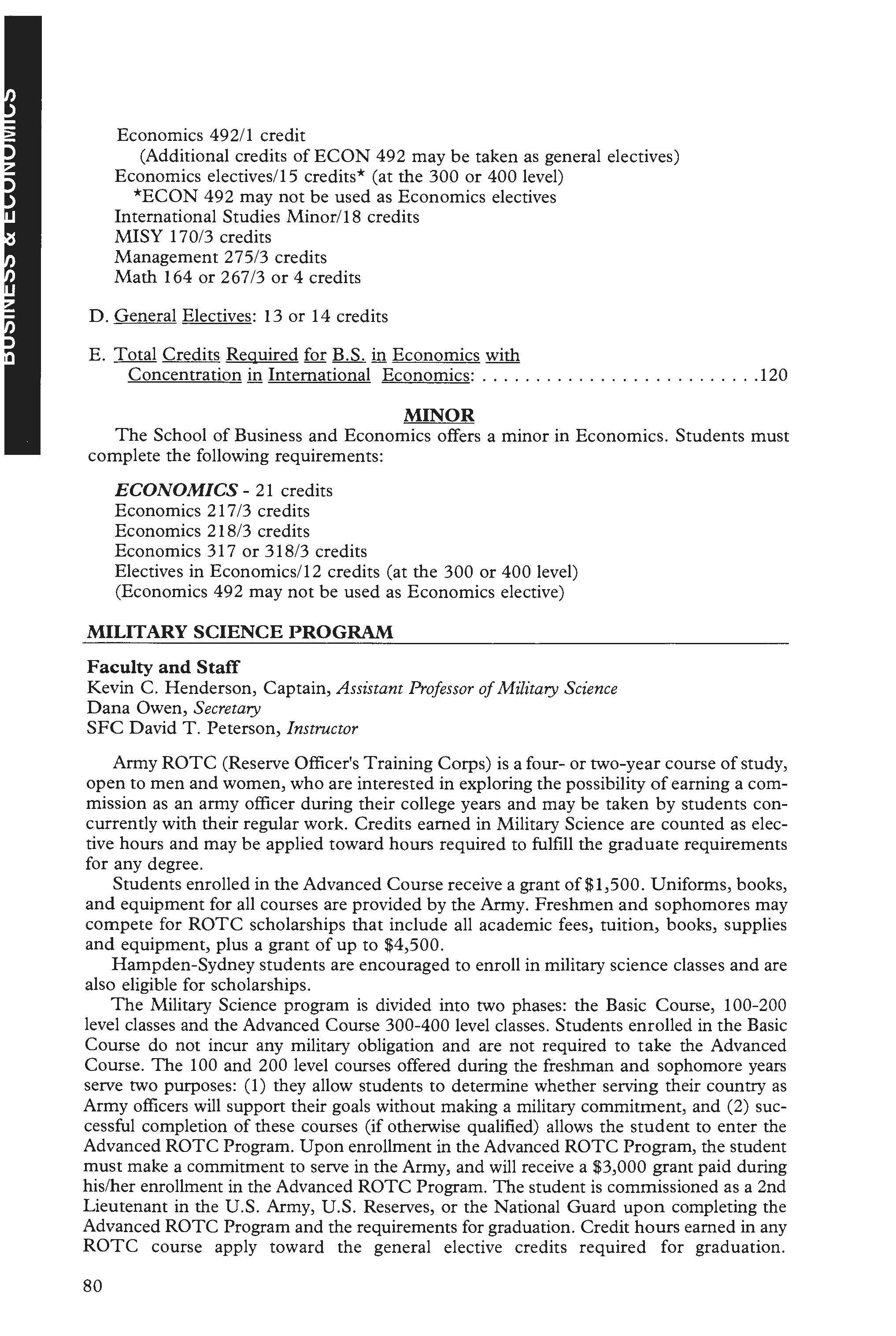 Economics Major . ... . ... .. .. .77-80 Economics Courses ... ... .. ... 82-85 Education Courses .. . .. .. .... 98-100 Education Program ..... ... ... 95-96