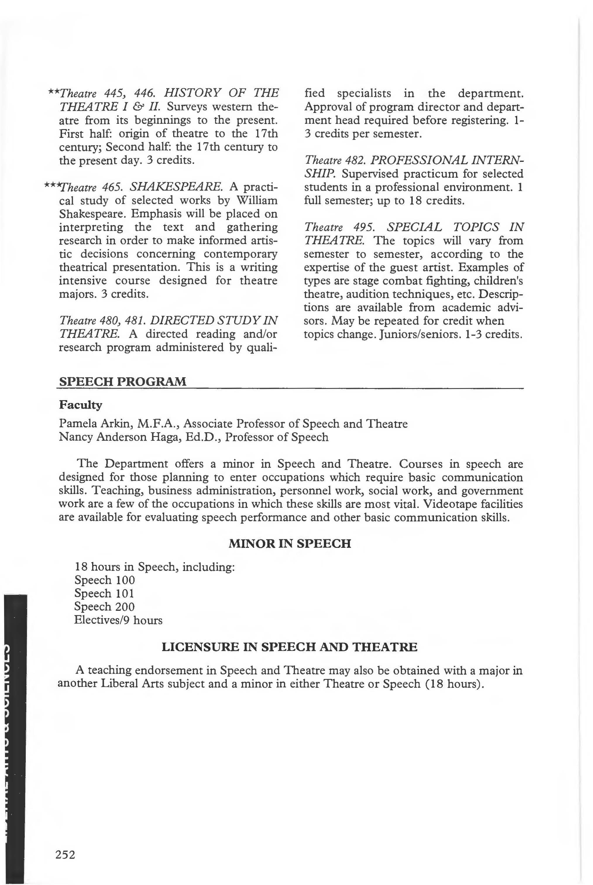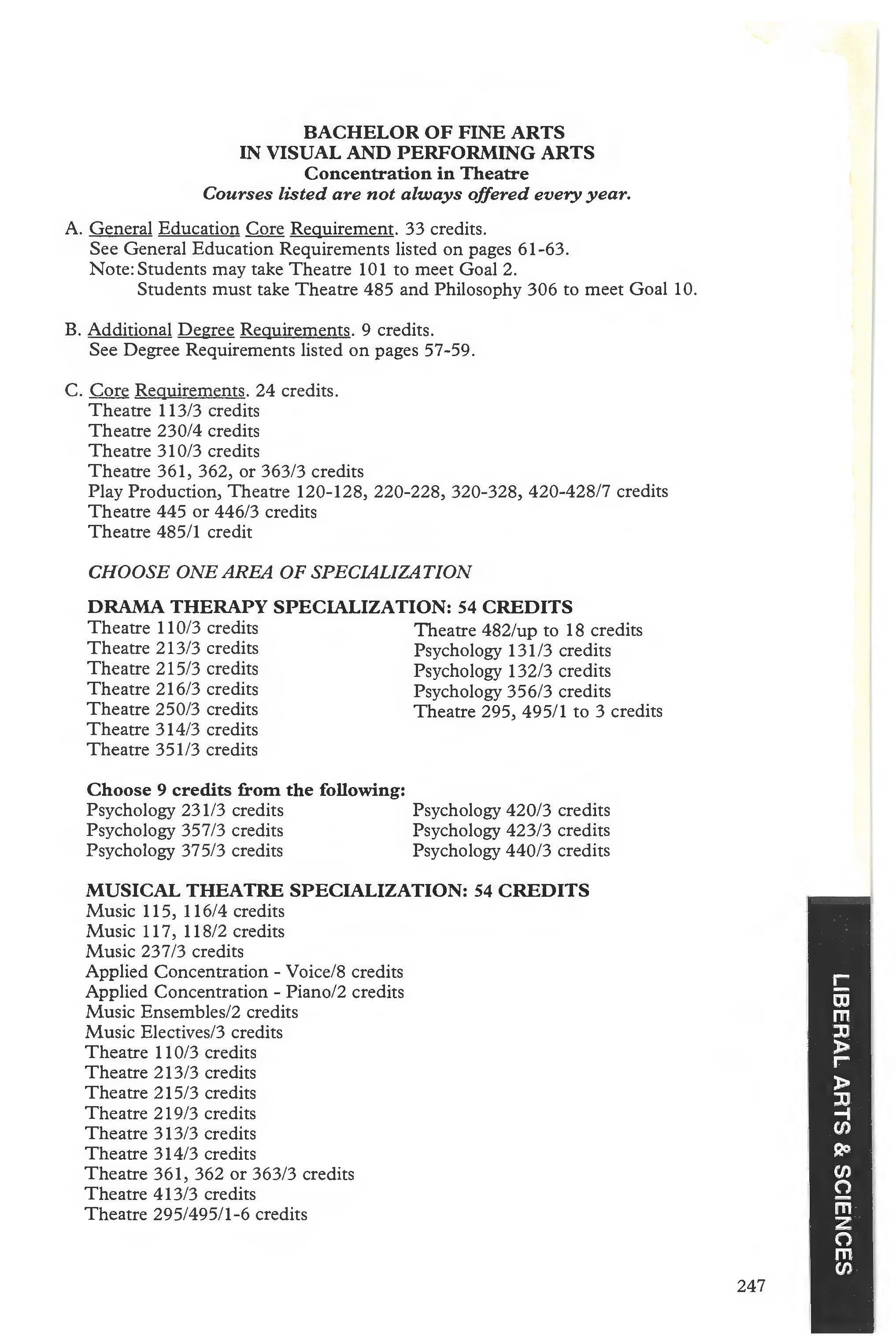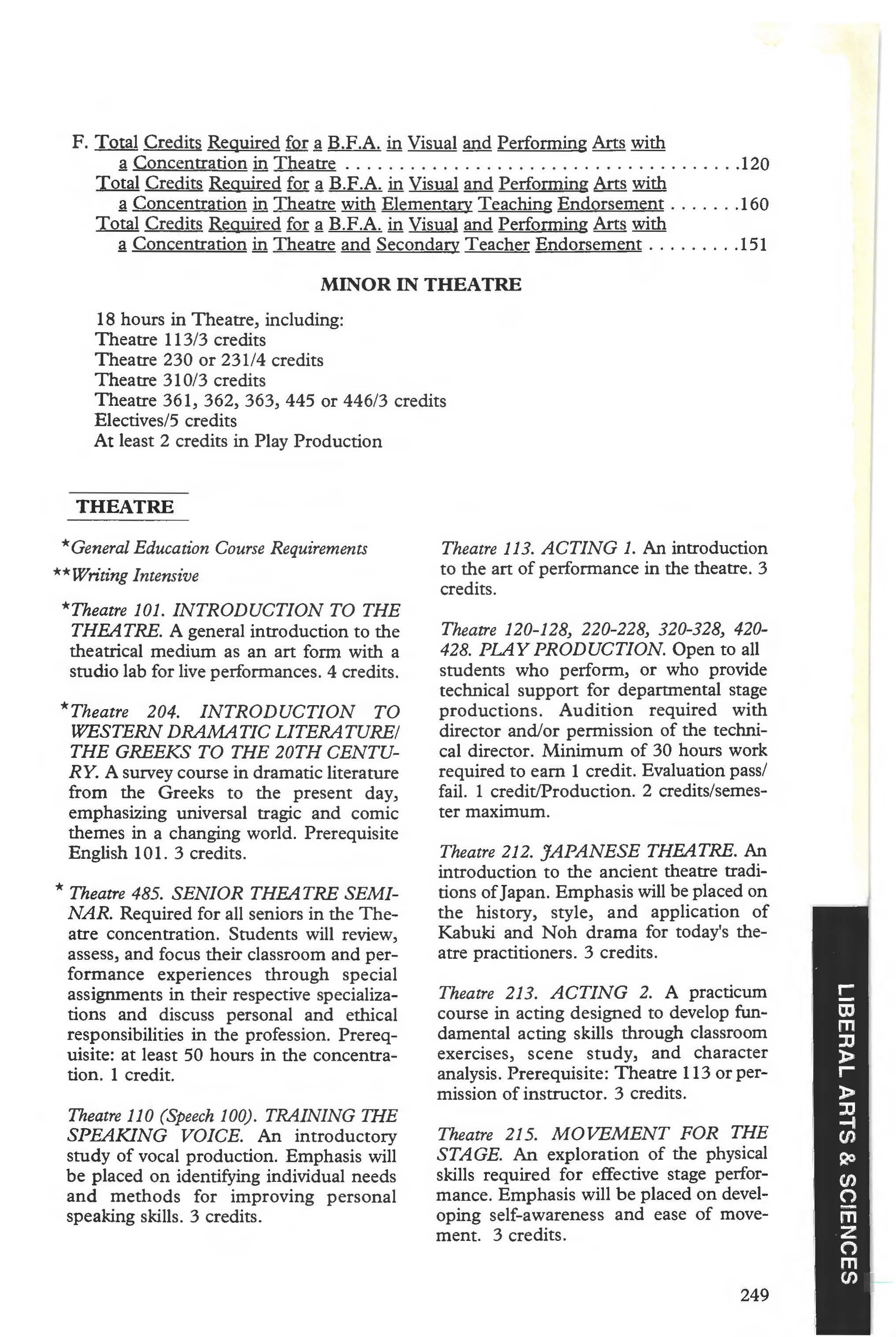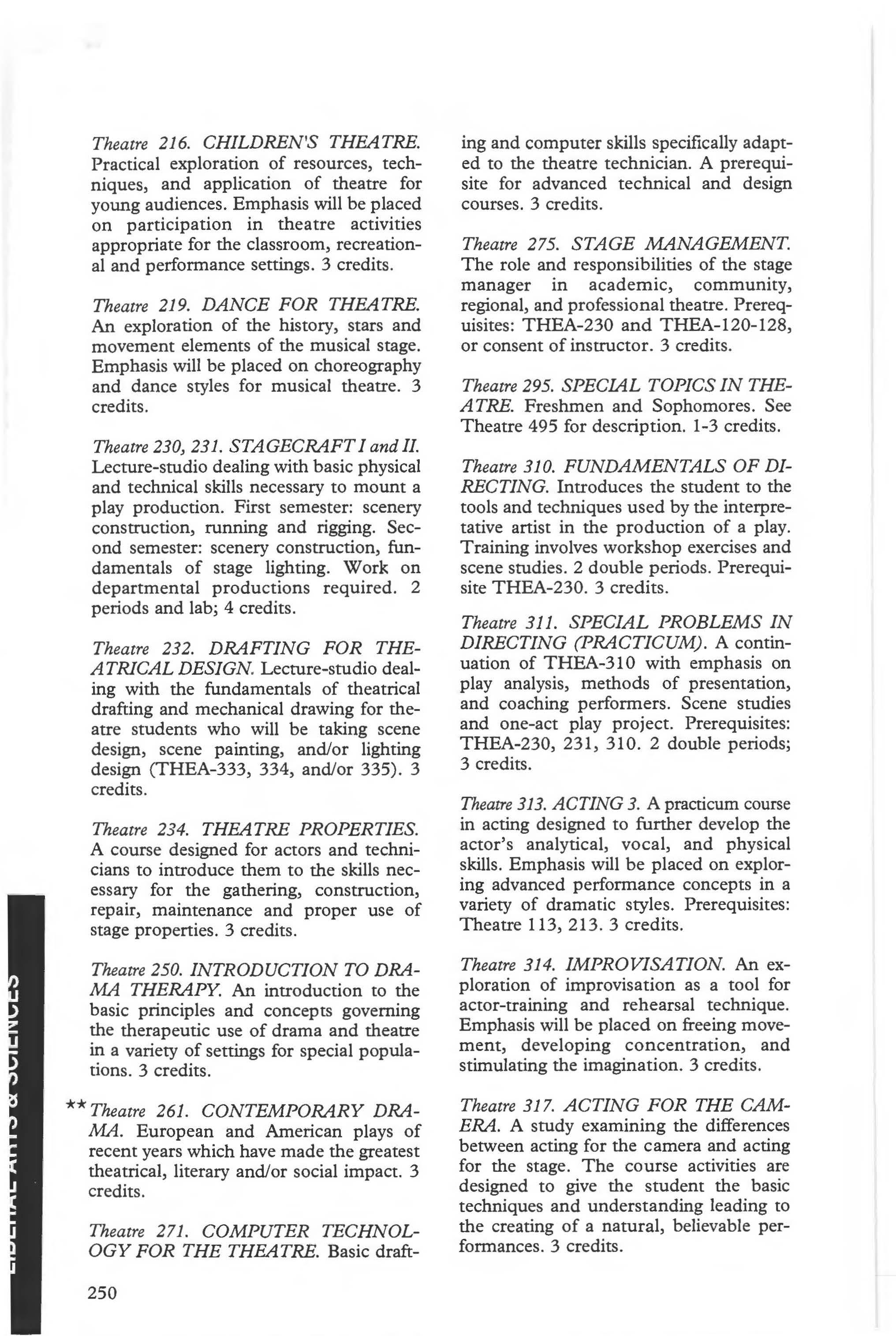 Therapeutic Recreation Degree, B .S. Major ................. 130 Theatre Concentration ....... 24 7-249 Theatre Courses 249-252 Theatre Minor 249 Theatre Program 246 Transcripts, Release of .51 Transfers 12