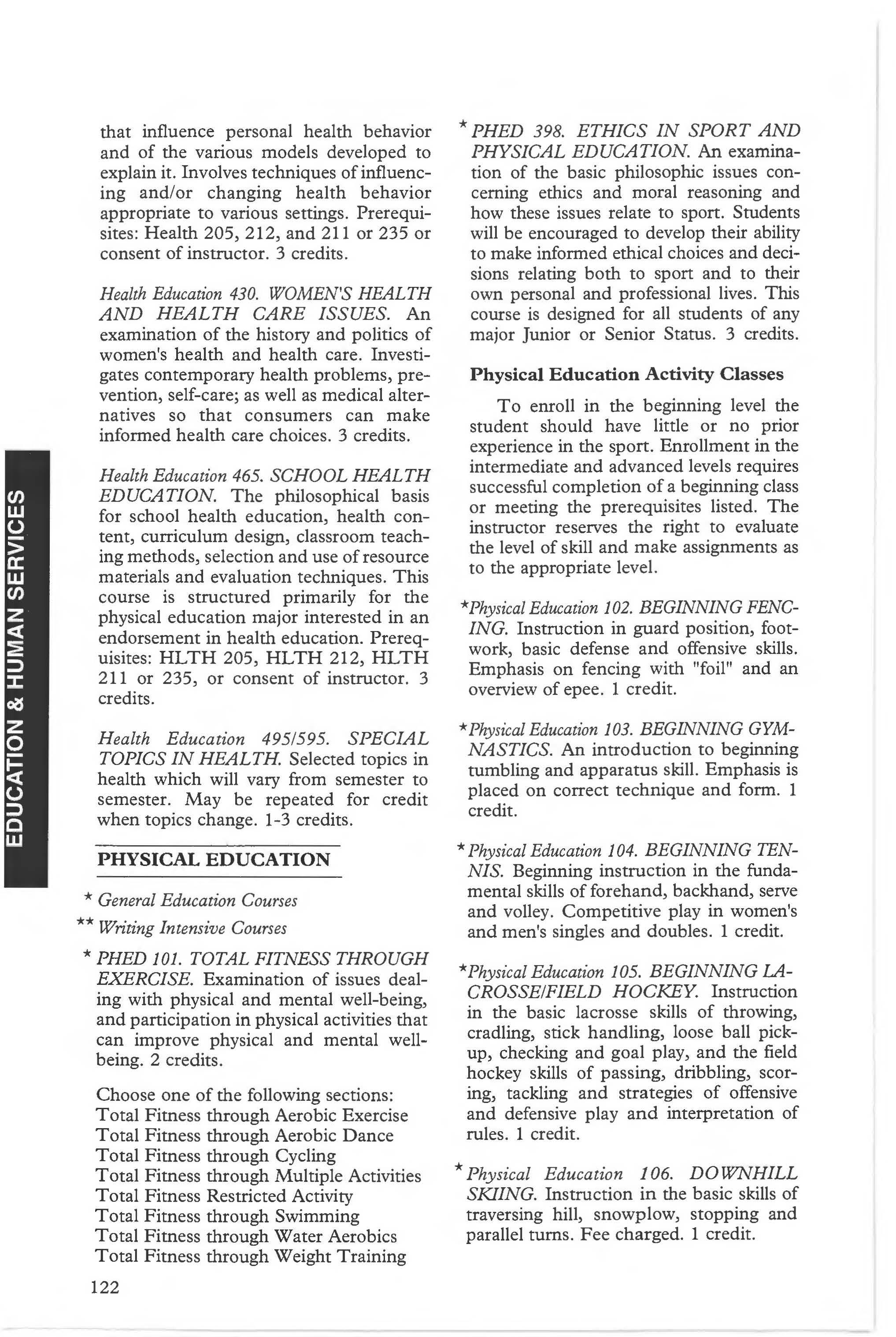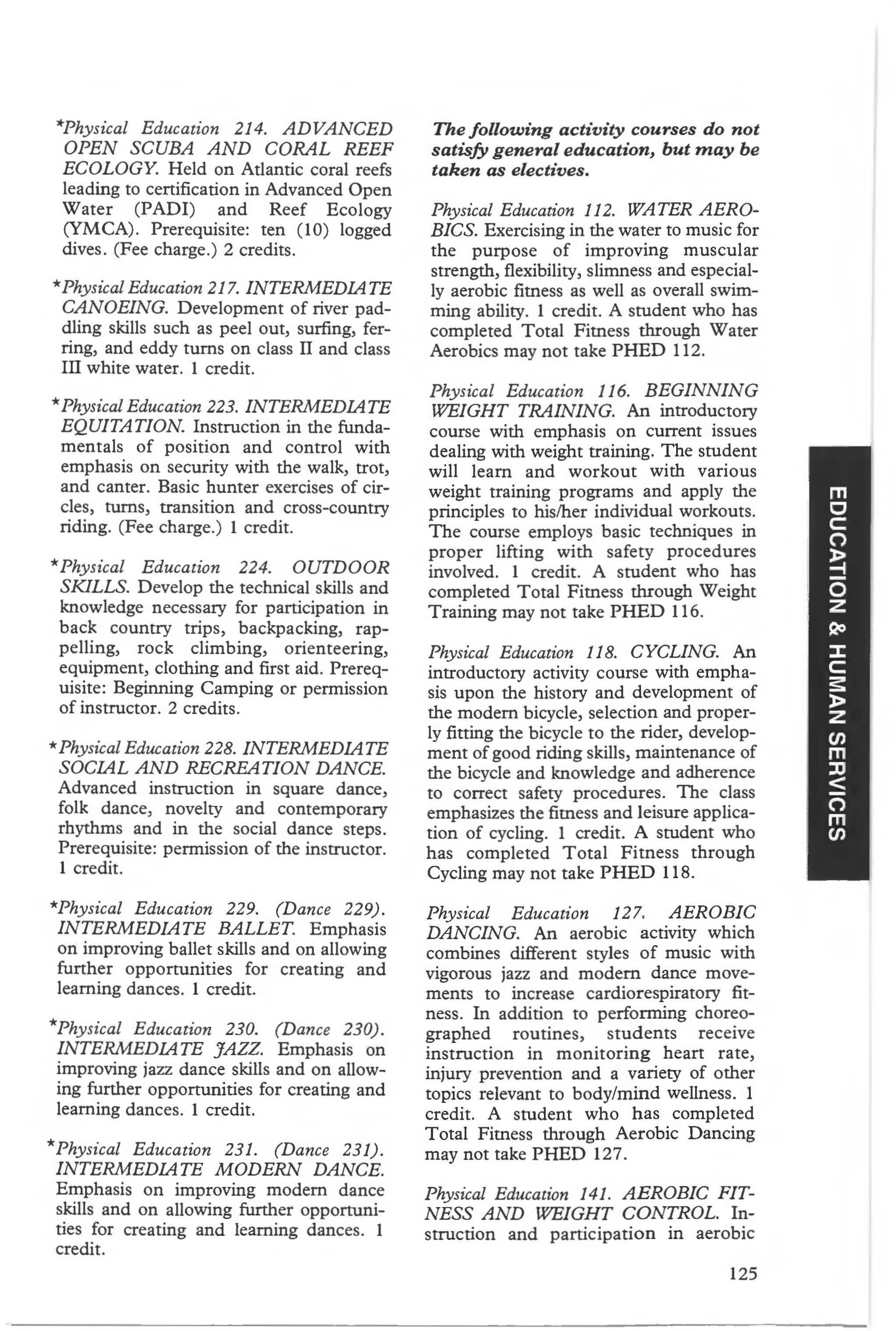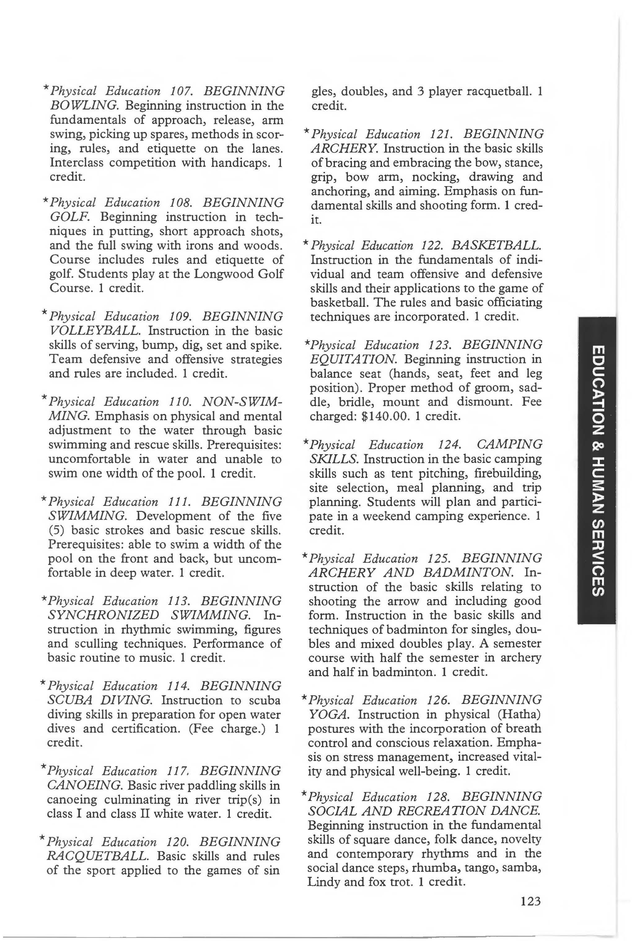 Physical Education Activity Classes Meeting General Education Requirements 122-125