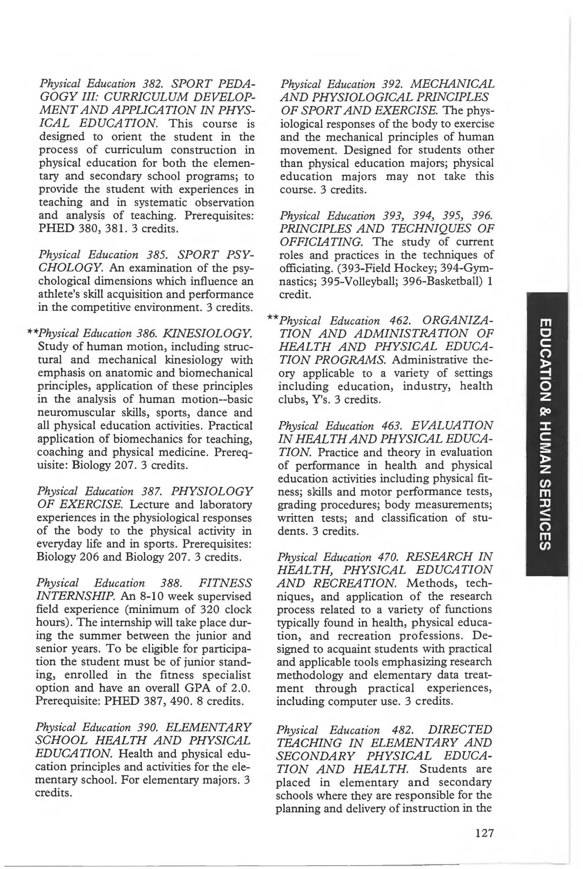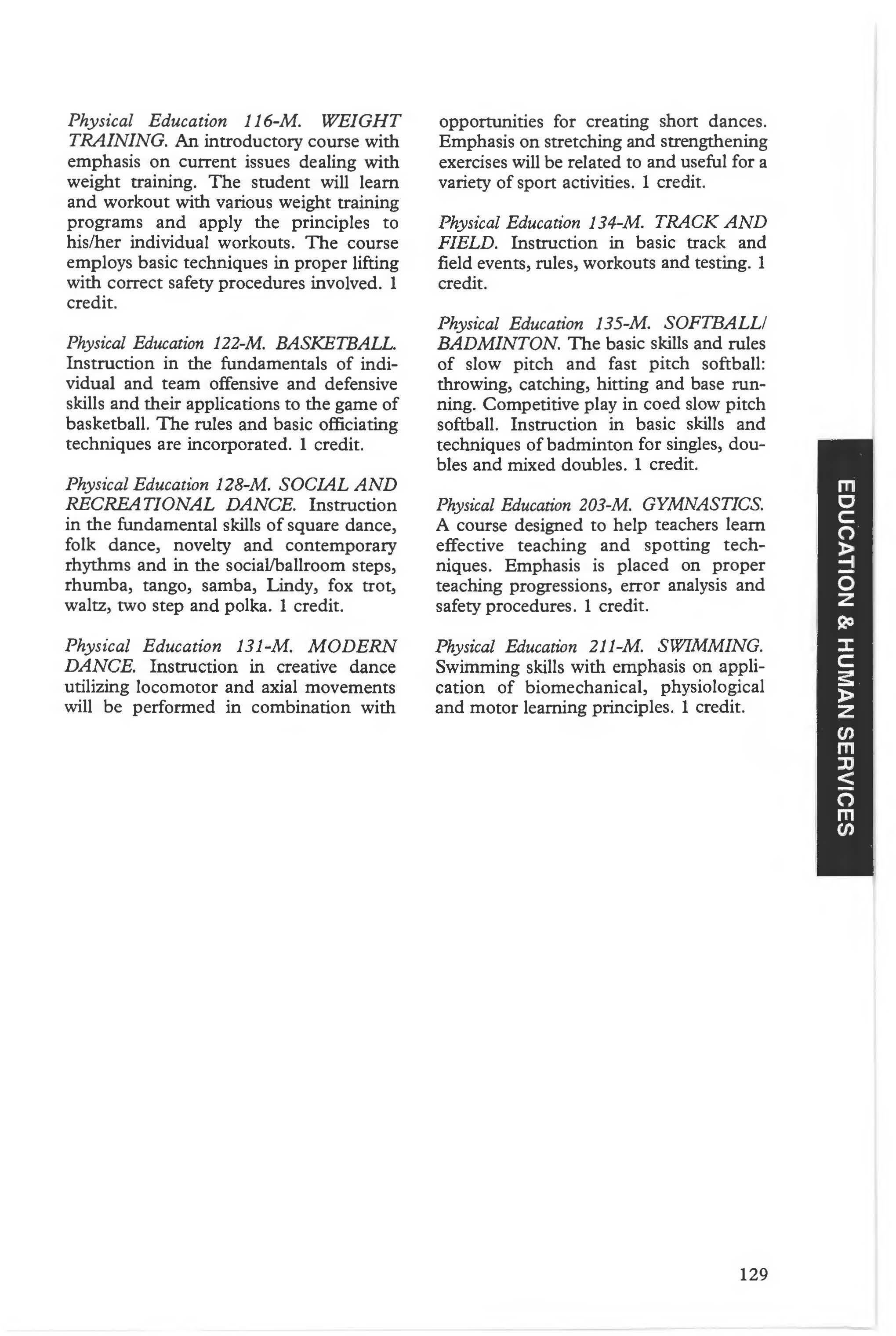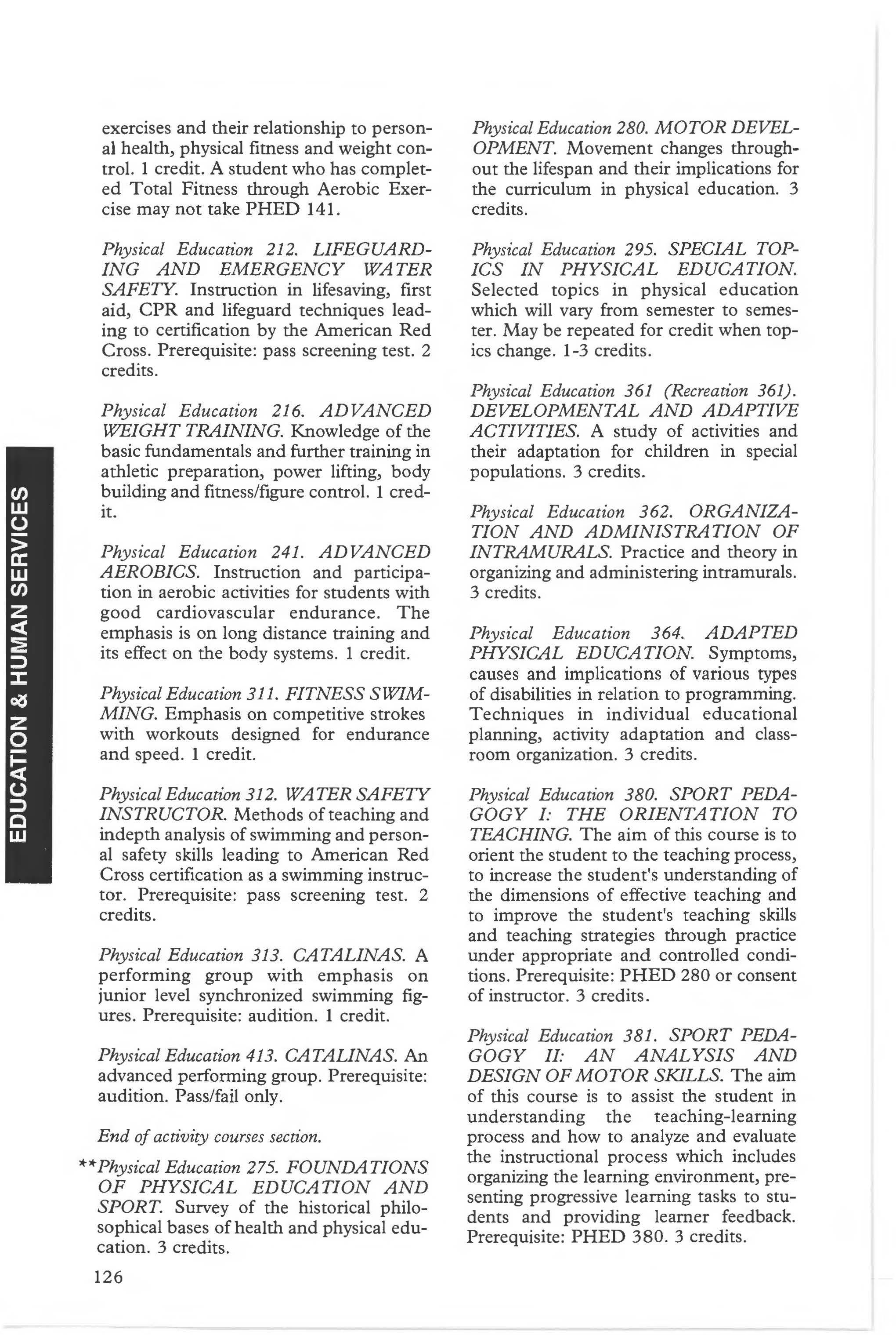 Physical Education Activity Classes Meeting General Education Requirements 122-125