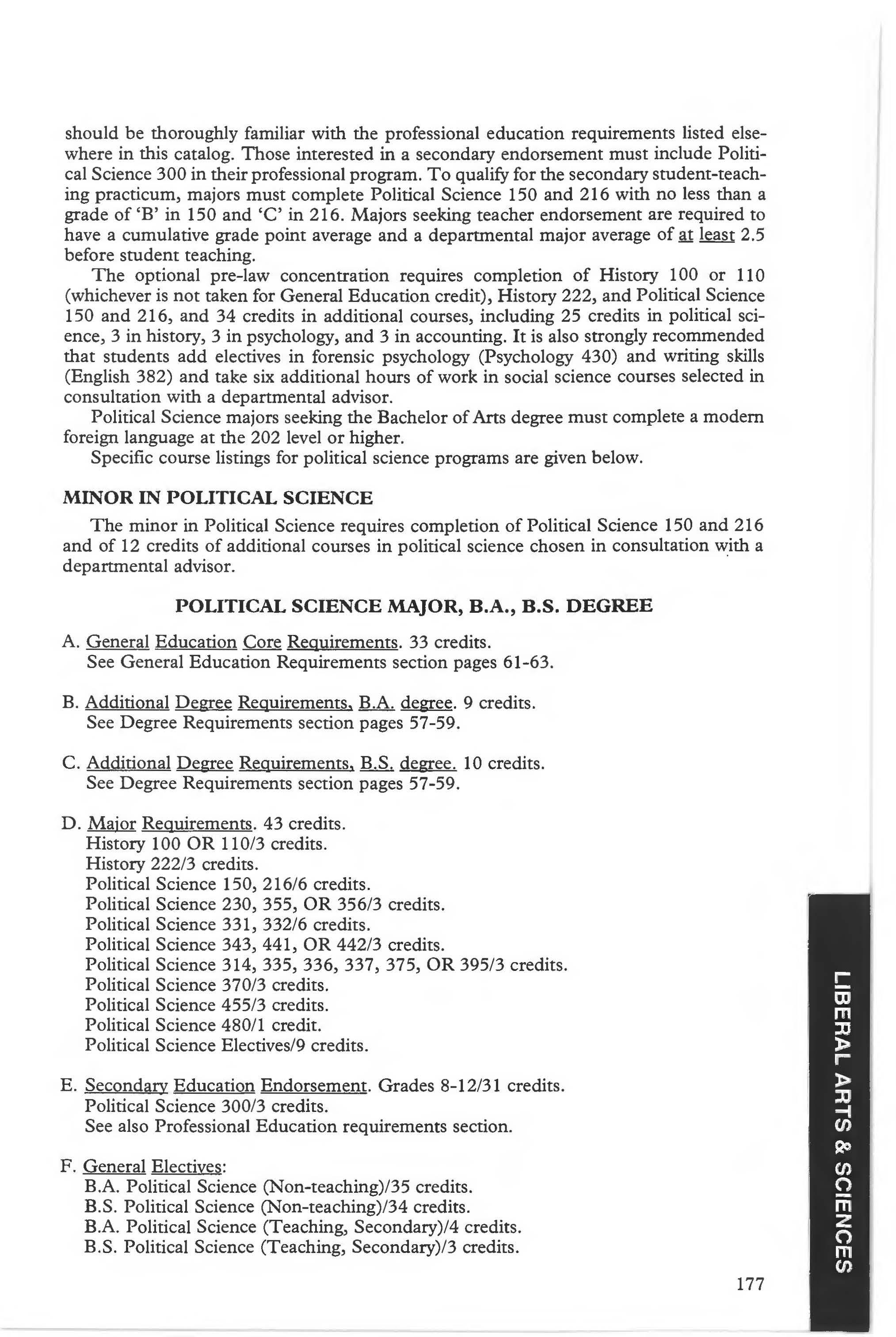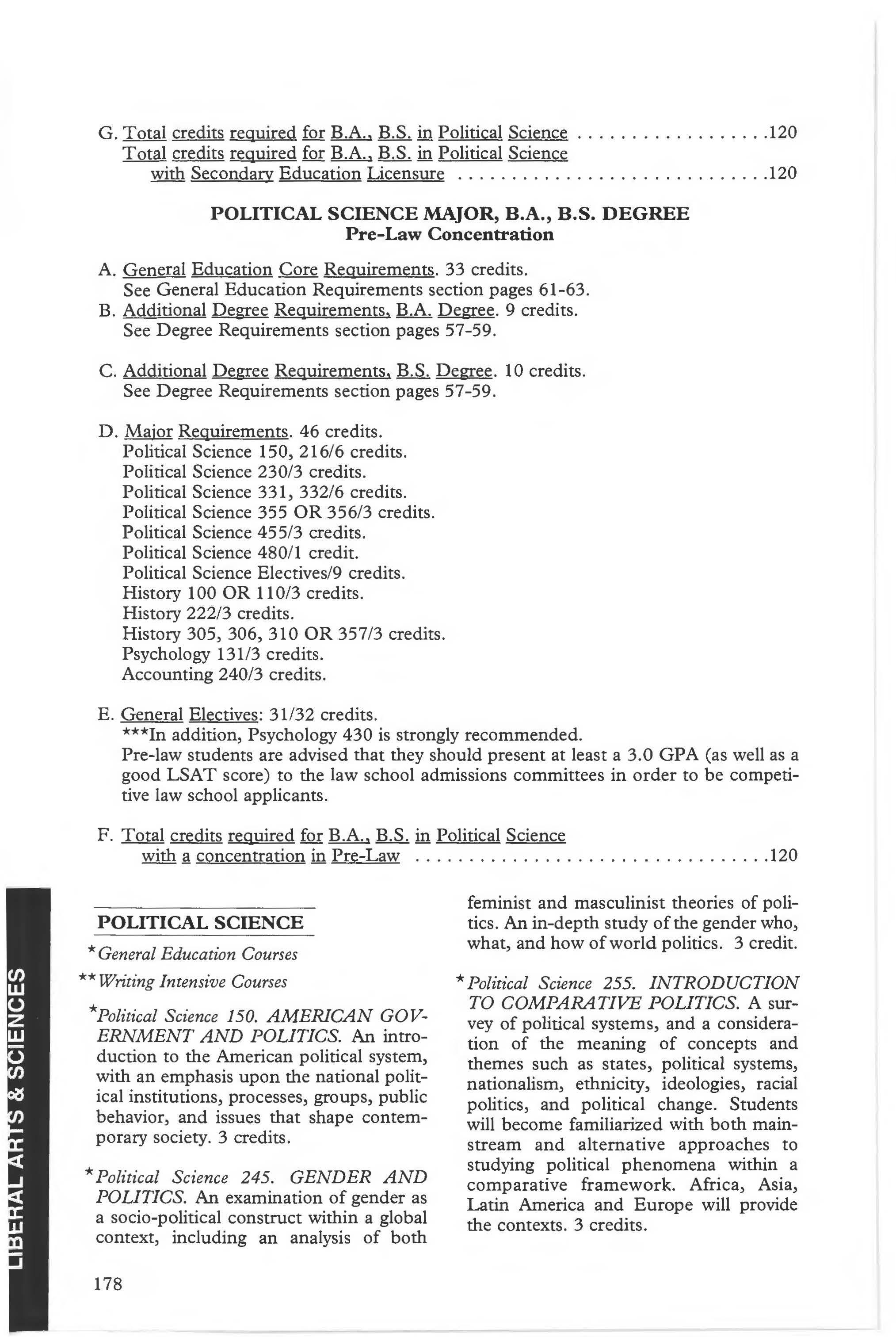 Political Science Courses 178-181 Political Science Major, B.A., B.S. Degree 177-178 Pre-Law Concentration ........ 178 Political Science Program ..... 17 6-177 PRAXIS 95 Pre-Dental Hygiene 224 Pre-Denistry 225 267