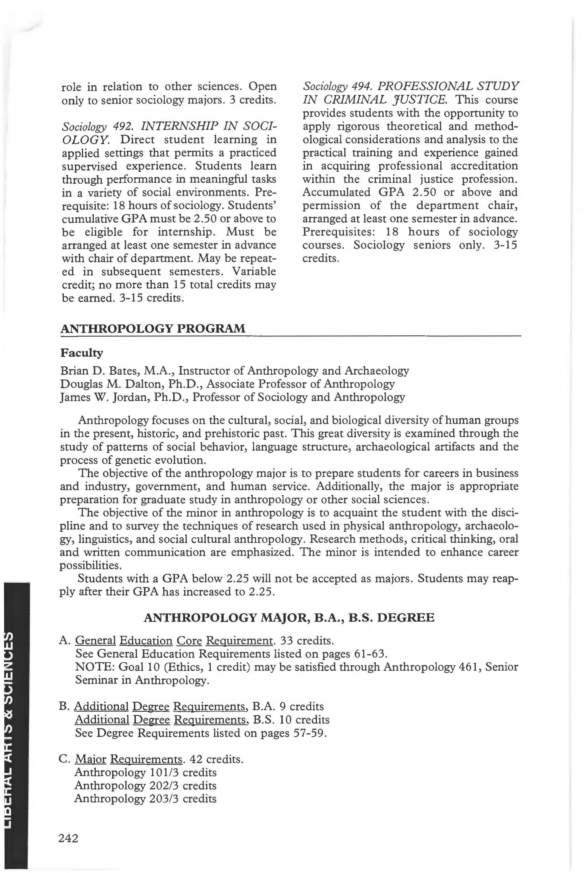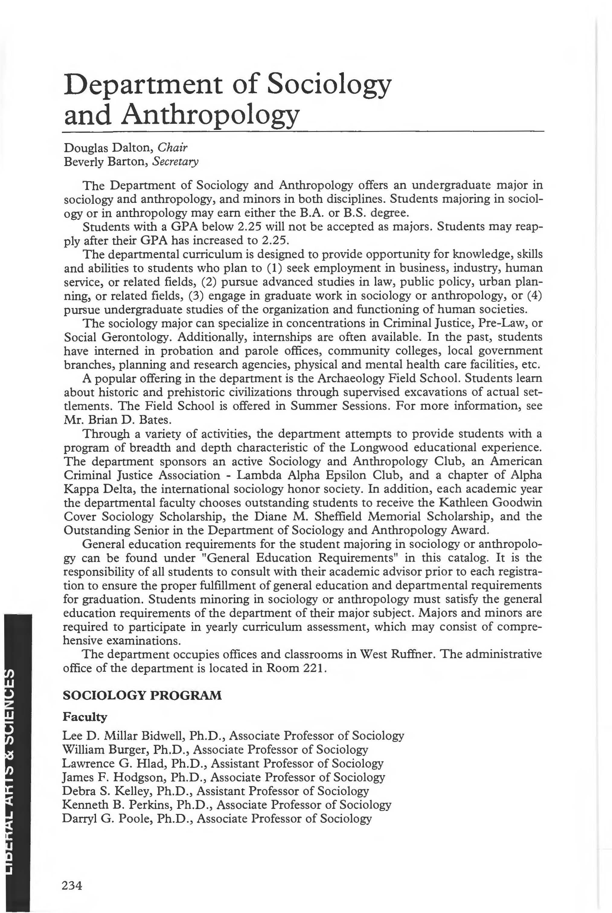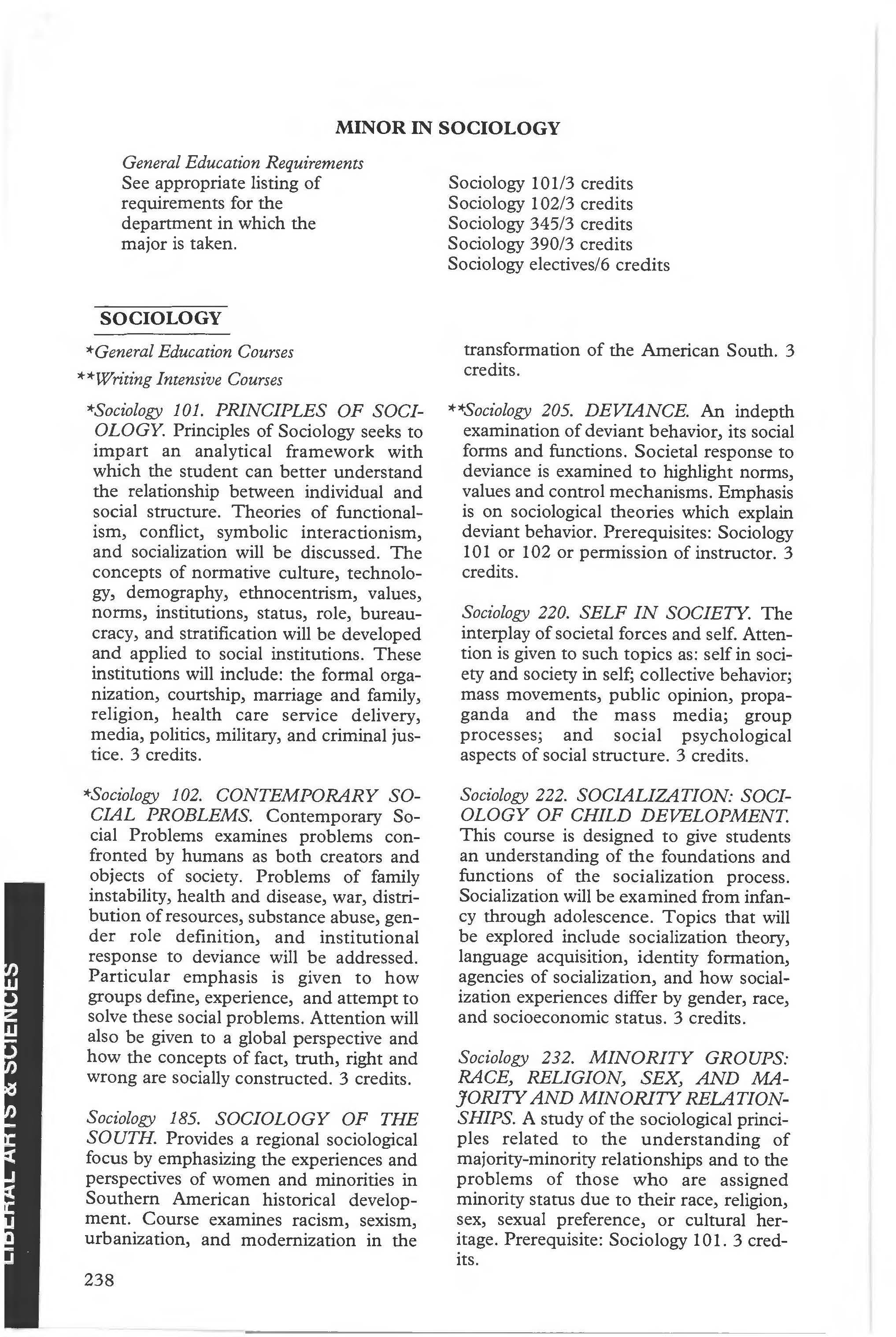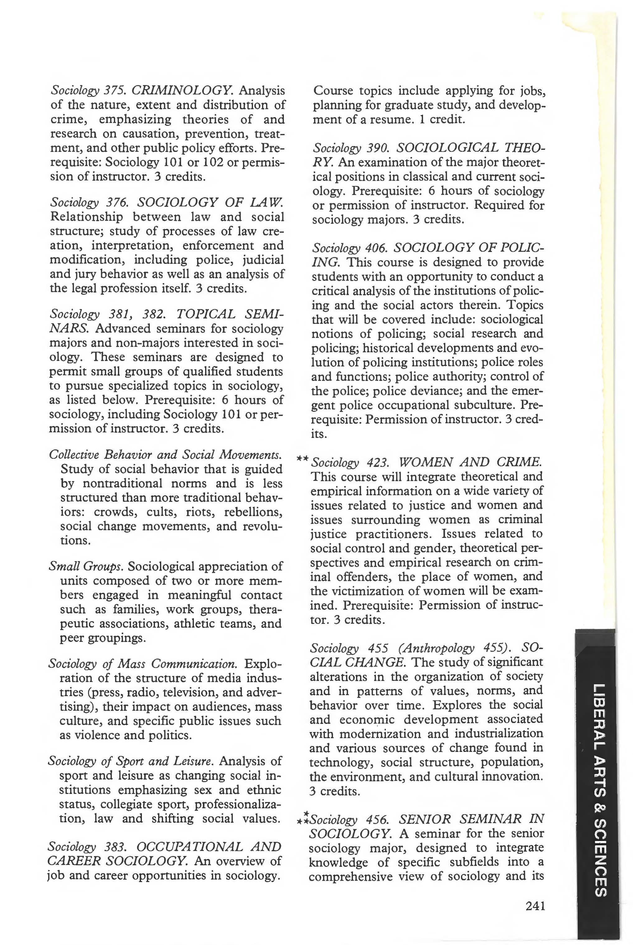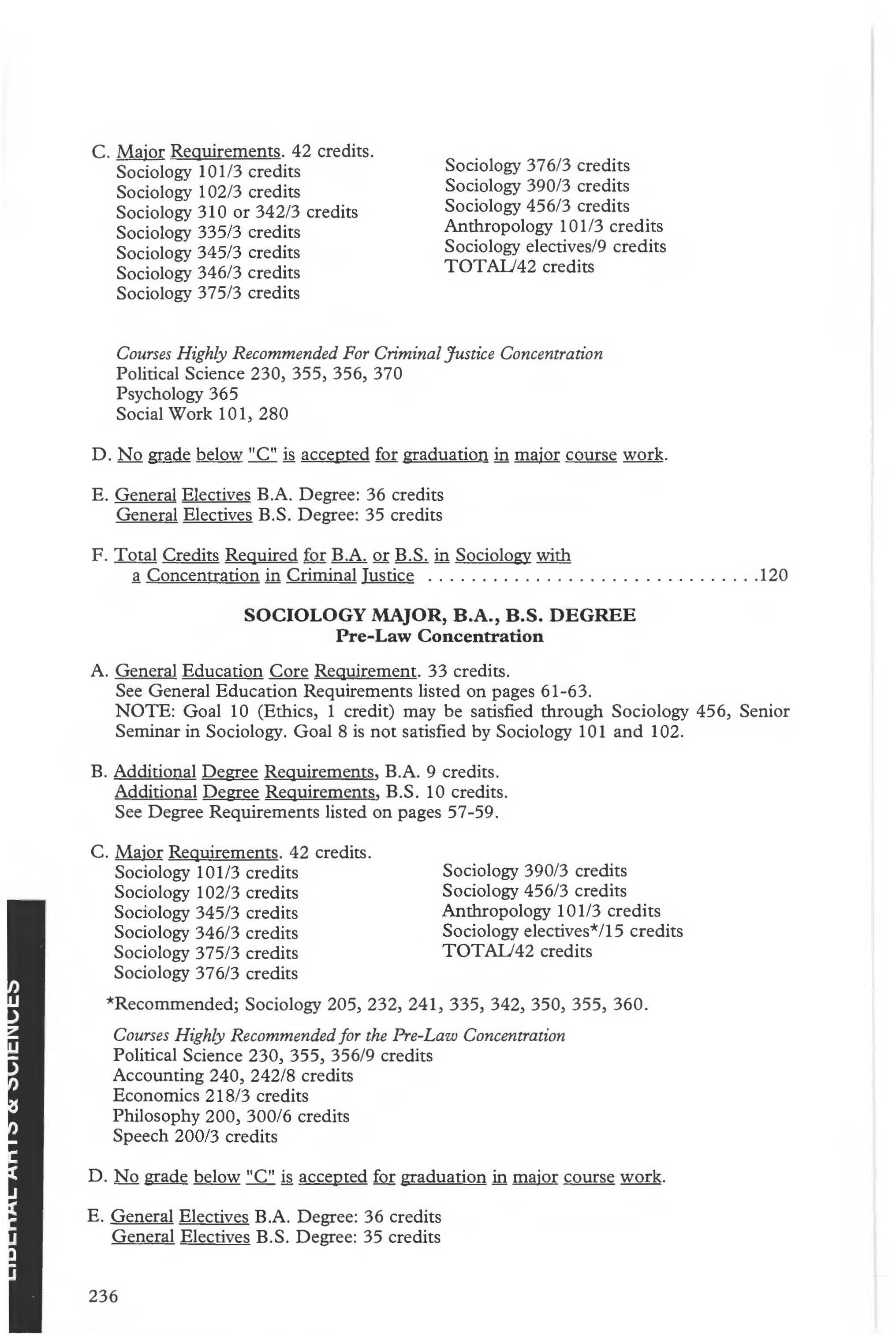 Sociology Major, B.A., B.S. Degree .234 Pre-Law Concentration 236-237 Criminal Justice Concentration 235-236