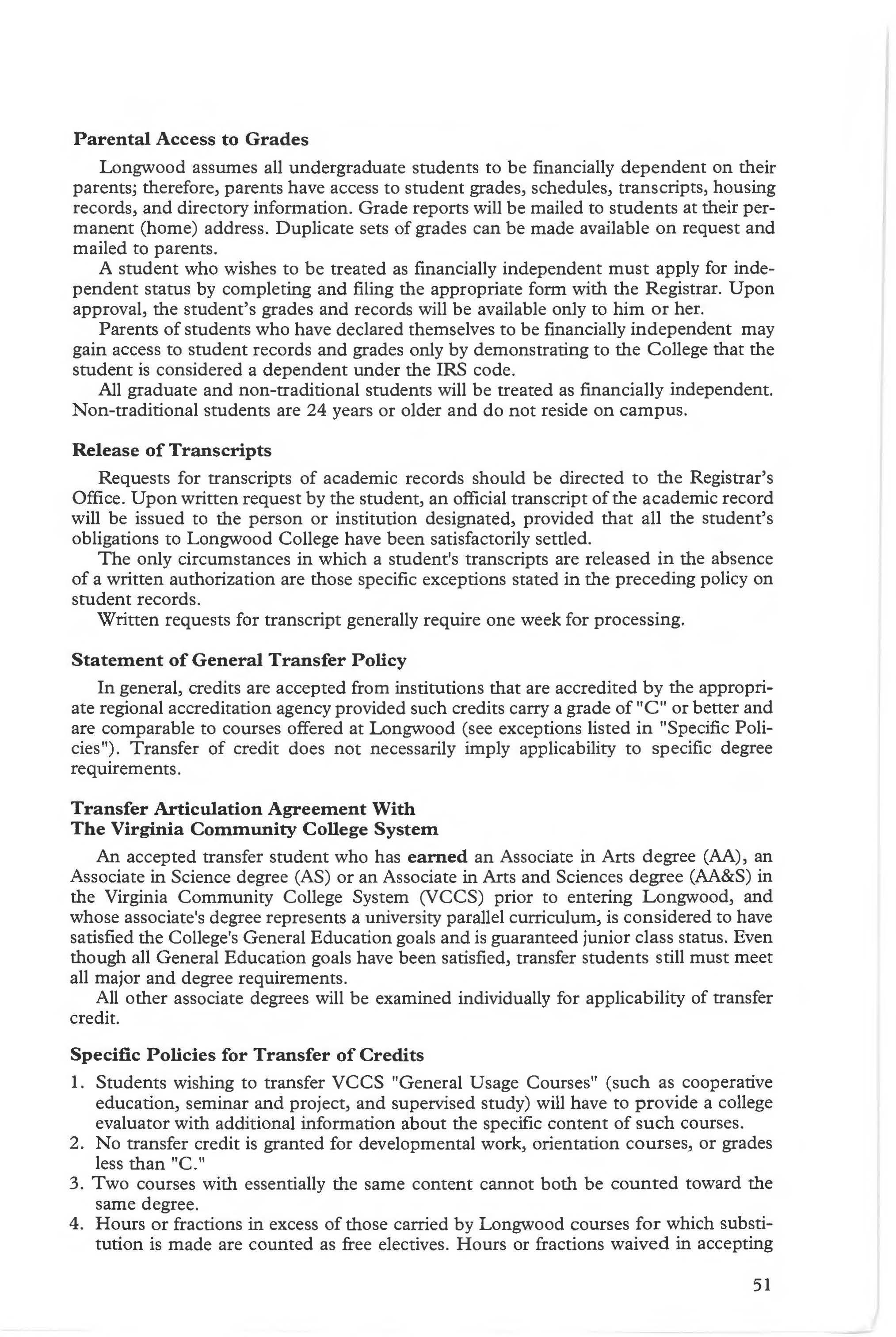 Transfer Policy with Community Colleges 51 Transfer of Credits .. .......... 51-52