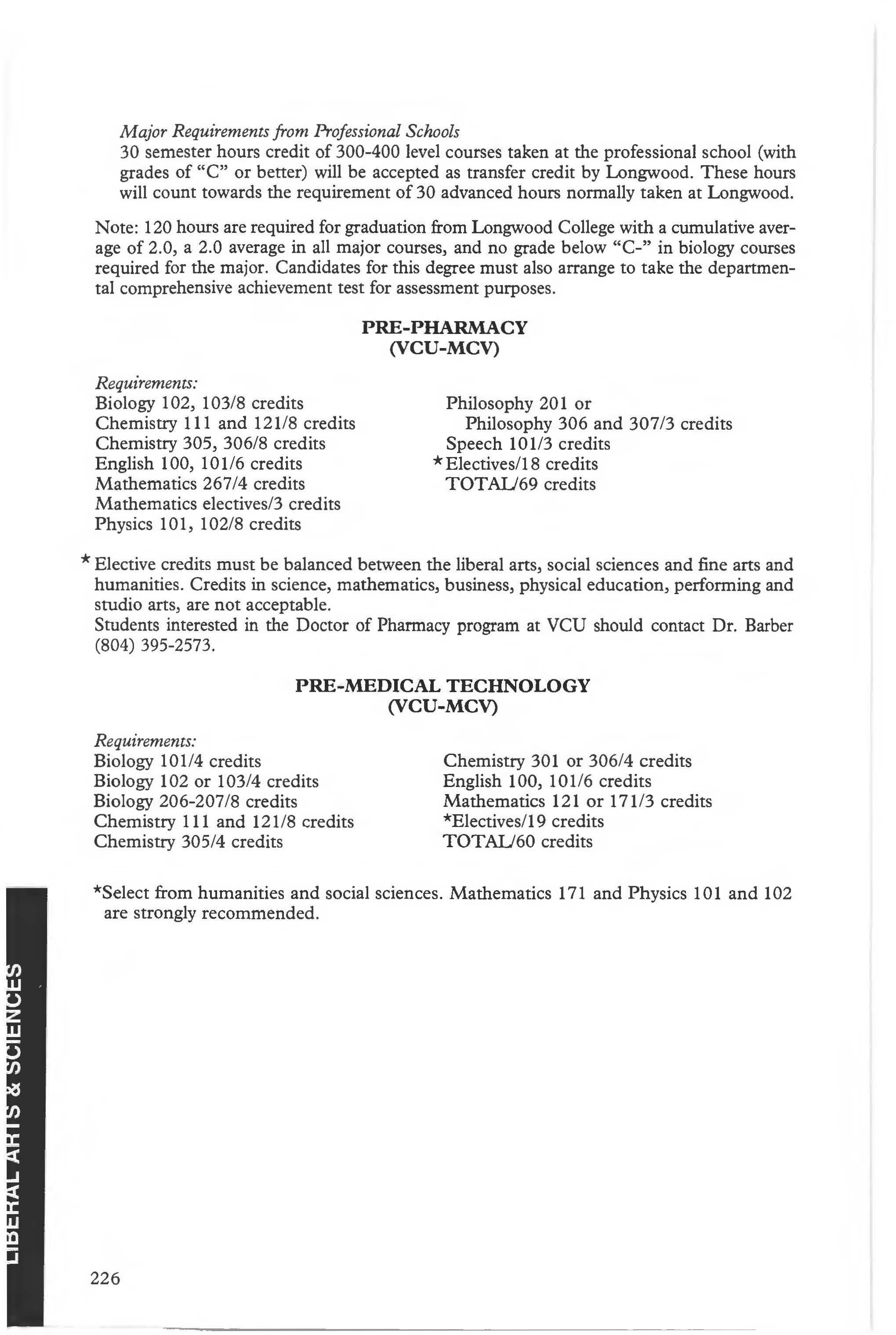 Pre-Pharmacy ...... .. . . .. .. . .. 226