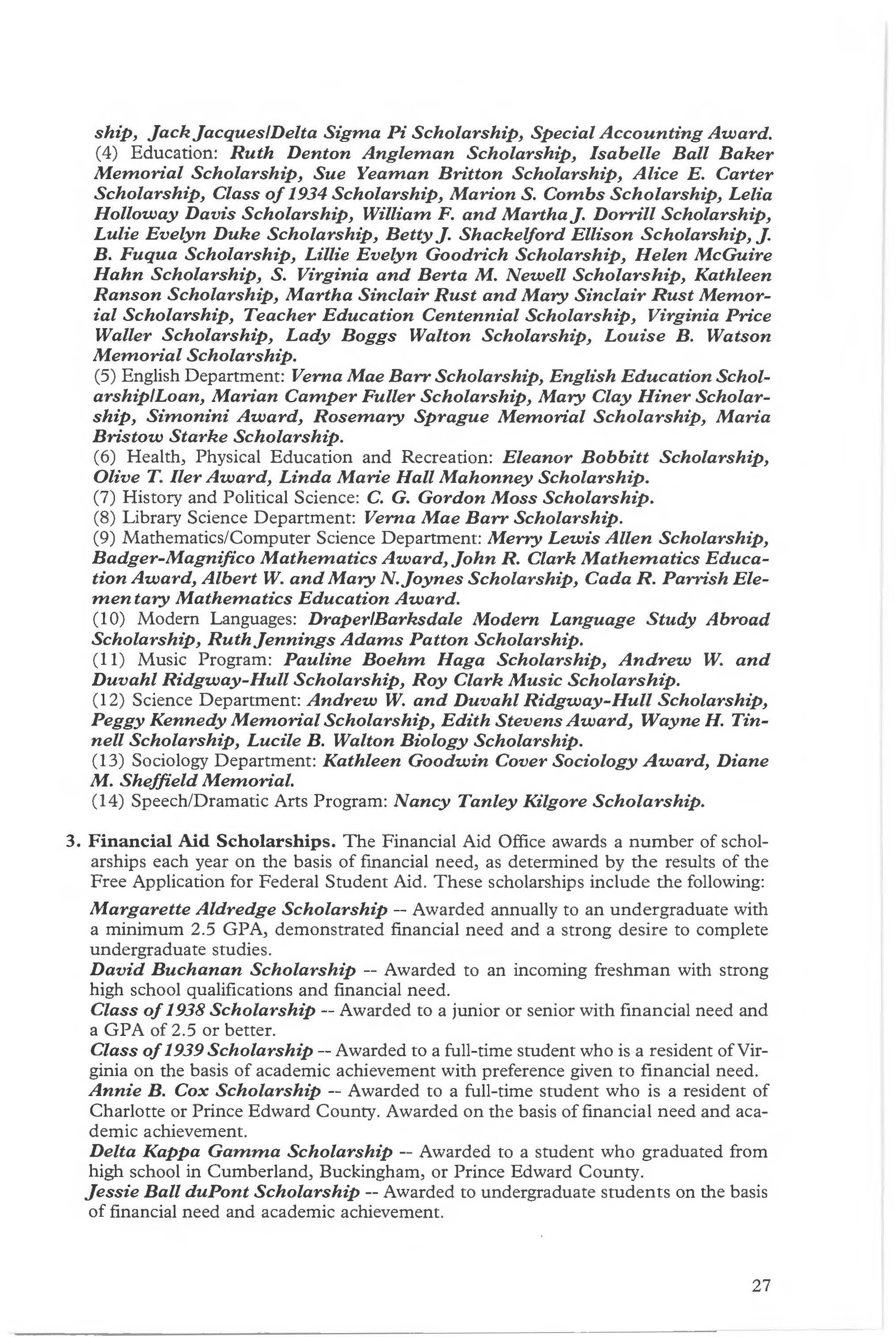 Dan Daniel Award for Scholarship & Citizenship ... . . .... . .. .... 29
