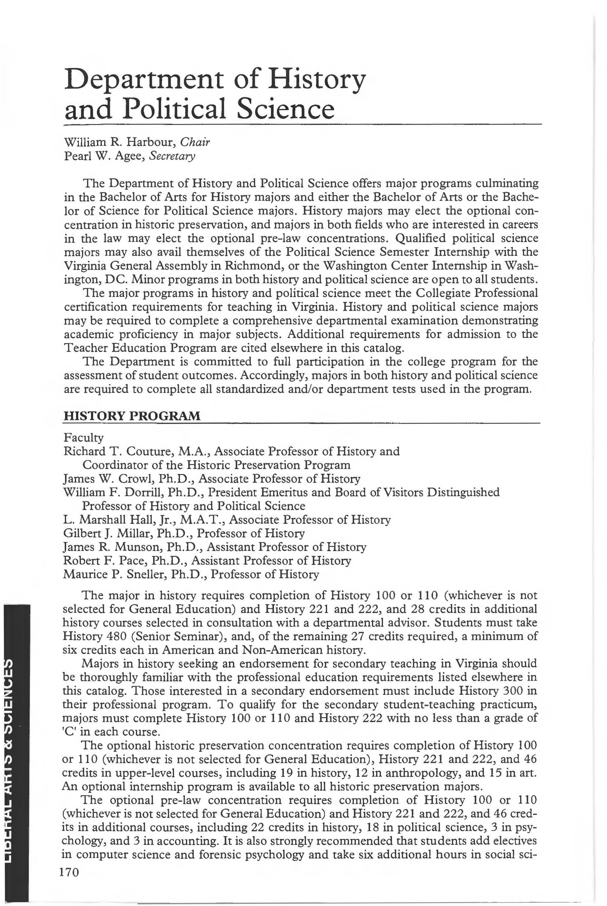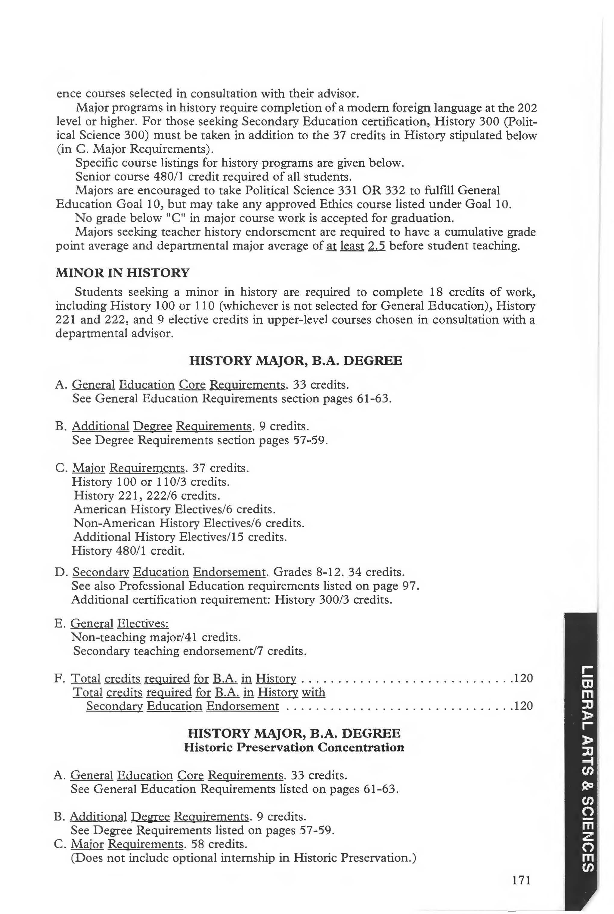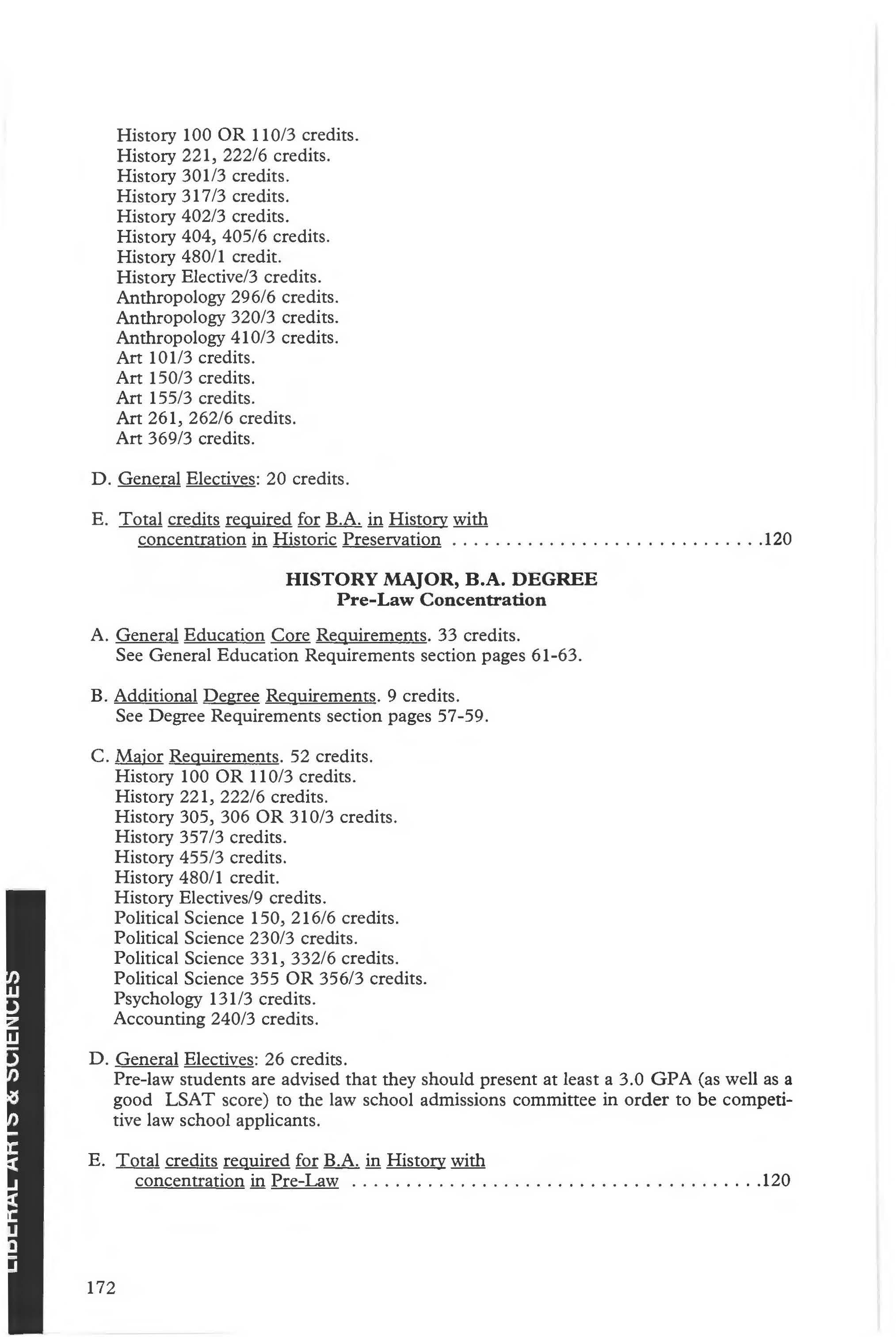 History Major, B.A. Degree 171 Historic Preservation Concentration 171-172 Pre-Law Concentration 172 History Program 170-171