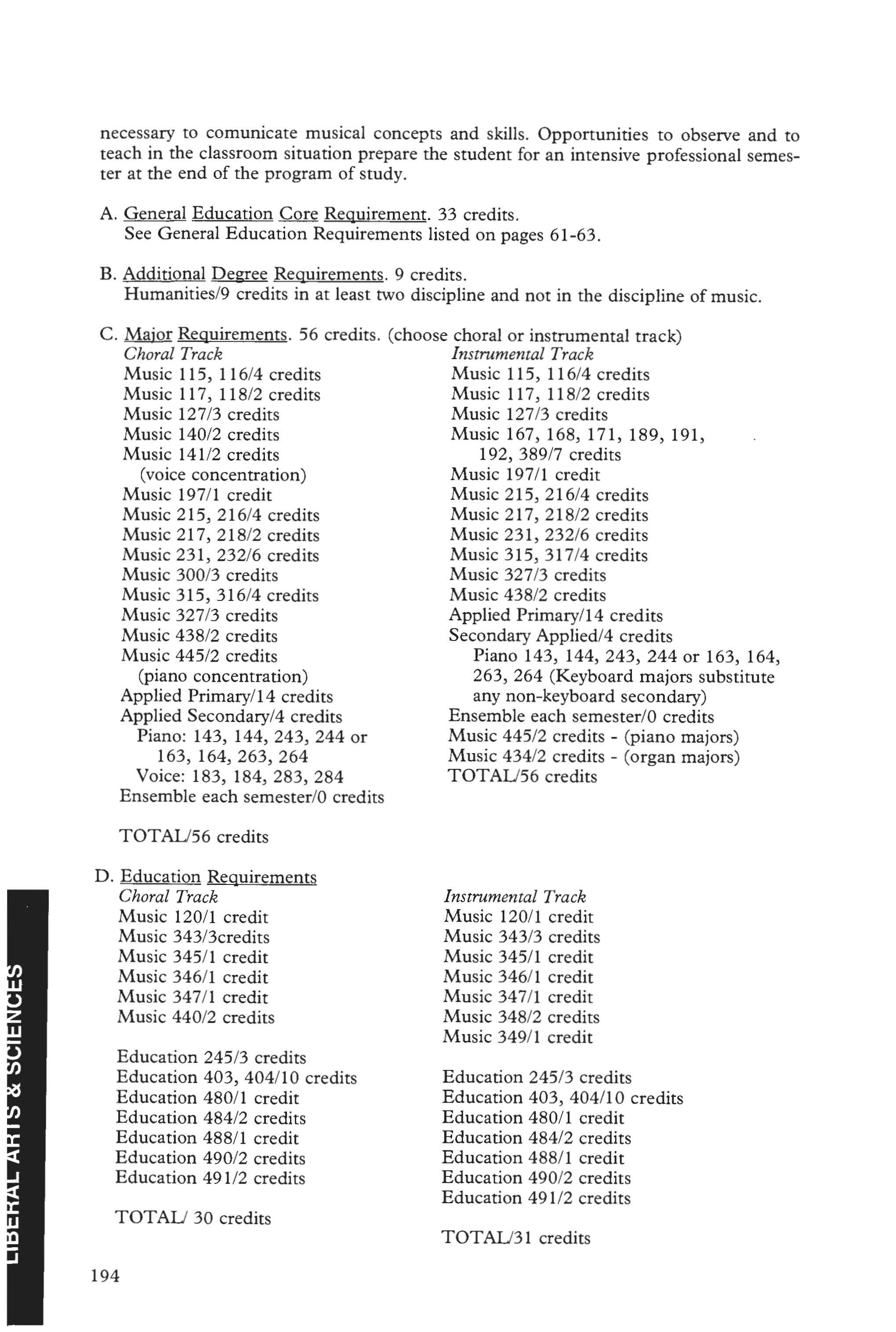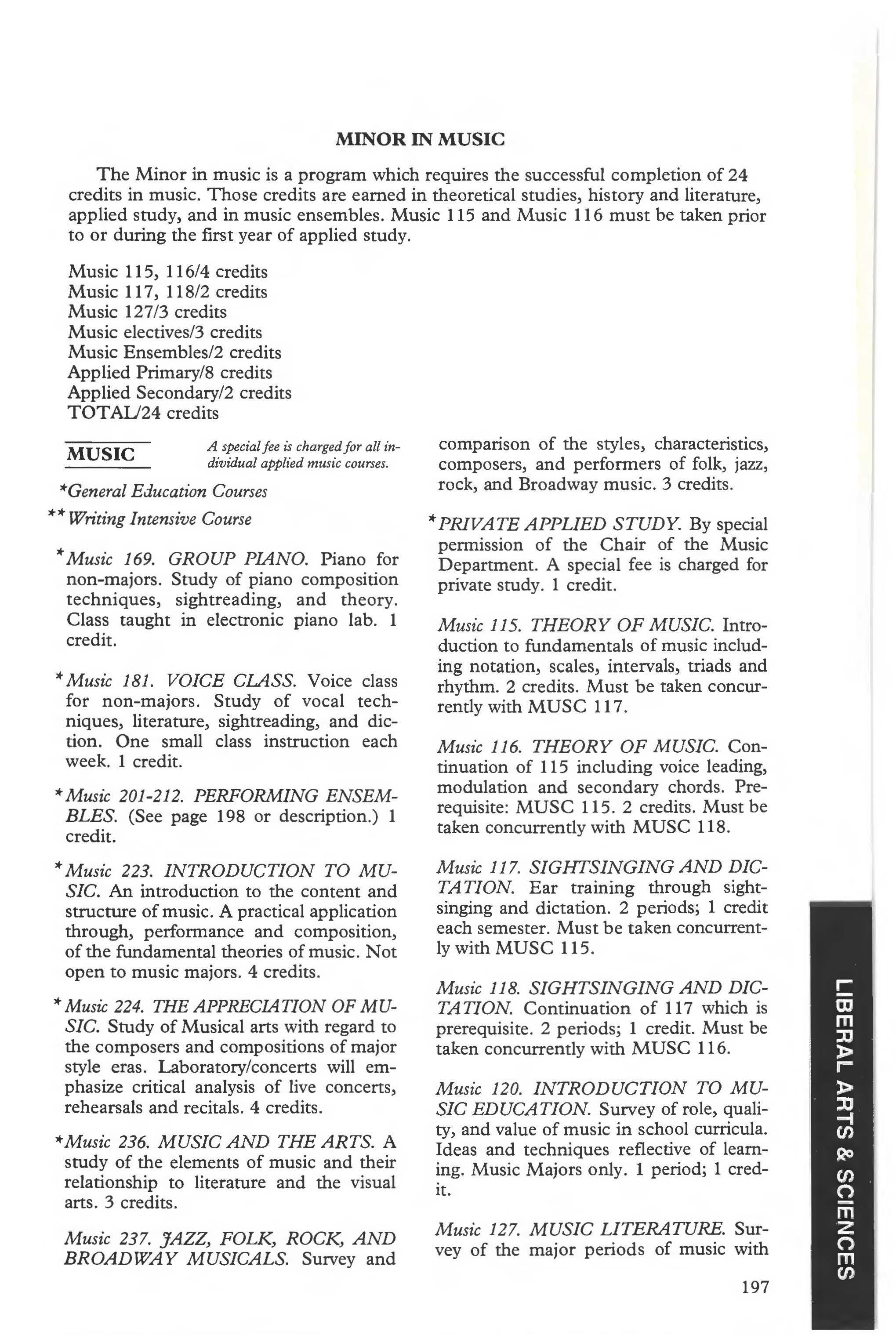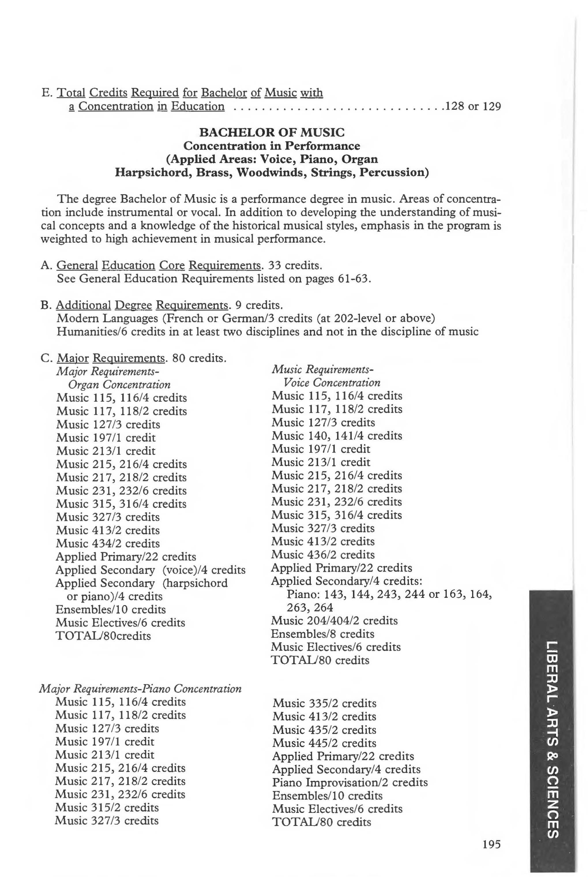Modern Languages Courses ... 163-169 Modern Languages Major, B.A. Degree ..... . .... ... 162-163 Minor in French, German or Spanish ........... 163 Modern Languages Program 161-162 Mortar Board .................. 36 Music, Bachelor of Music Concentration in Composition ... 196 Music, Bachelor of Music Concentration in Education 193-195 Music, B.A. in Visual and Performing Arts Concentration in Music 193 Music, Bachelor of Music Concentration in Performance 195-196 Music Courses ... .......... 197-202 Music, Department of 192 Music Minor 197 Natural Sciences, Dept. of 203 New Student Center .......... 32-33 Overload Fee .................. 23 Non-traditional Students .......... 13 Orientation 32-33 Part-Time Students ....... .. ... .. 22 Pass/ Fail Courses .45 Payment of Fees Plan 18 Philosophy Courses 15 8-160 Philosophy Program 158