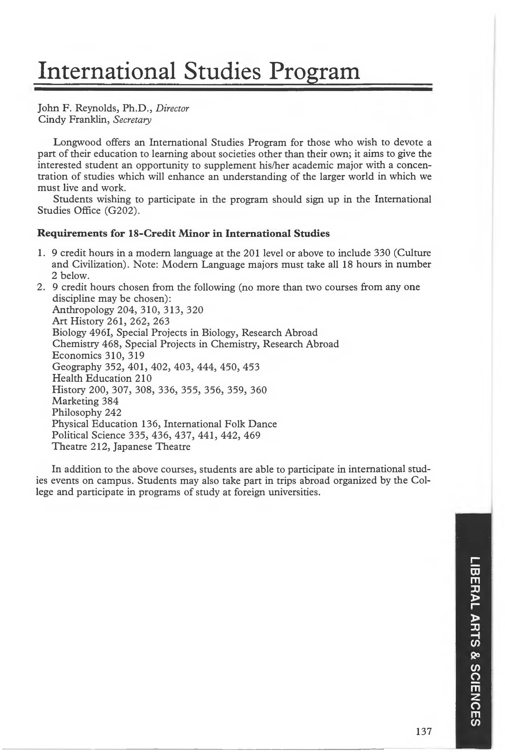 International Studies Program ..... 137 Minor in International Studies 13 7 Japanese Courses 166-16 7 Journalism ................ 152-153 Late Payment Fees .............. 21 Leaming Center 33-34 Liability Insurance 39 Liberal Studies 138-139 Liberal Studies Major 138-139 Liberal Studies Minor ........... 139 Liberal Studies-Special Education Program . ....... . ...... 101-102 Library & Resources ........ ... ... 8 Loan Programs ................. 23 Location 7