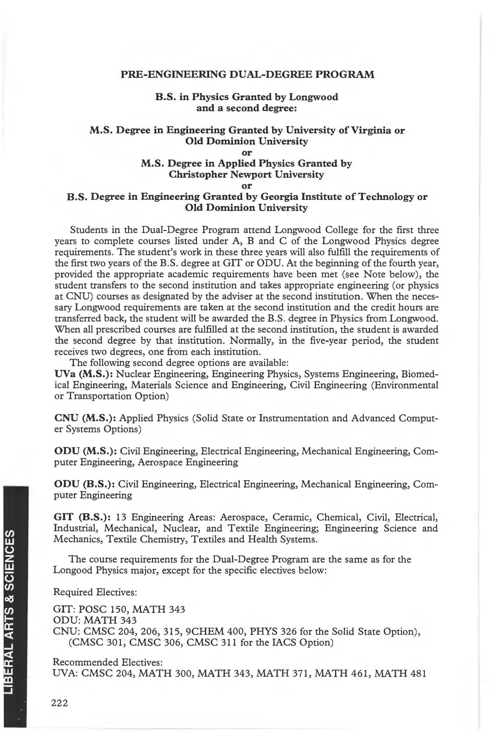 Pre-Engineering Dual Degree Program . ... .. ..... .. 222