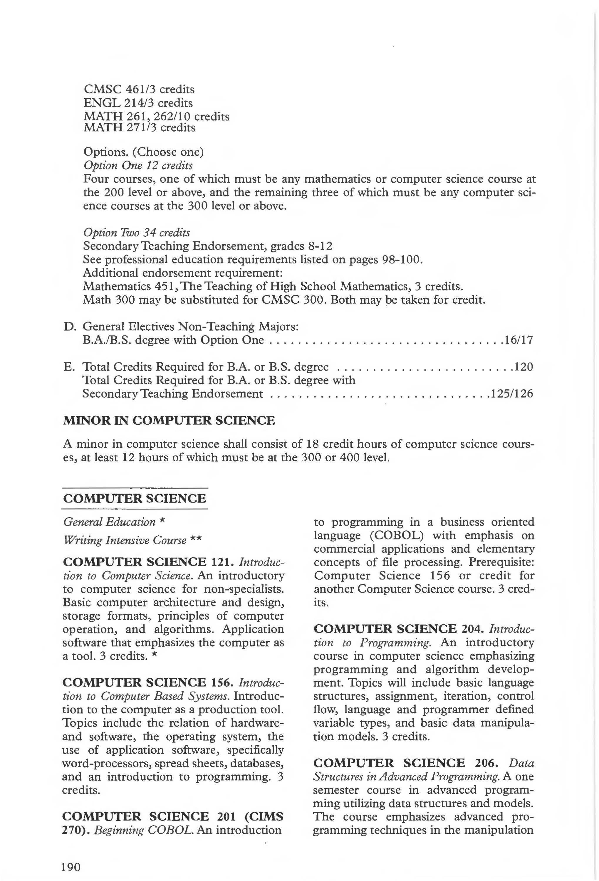 Computer Information Management English Proficiency 44 Systems Courses 85-86 English Program ........... 152-153 Computer Science Courses .... 190-193 Environmental Studies Courses .... 210 Computer Science Major Environmental/Studies Minor 205 B.A., B.S. Degree ......... 189-190 Examination Fee, Special .......... 17