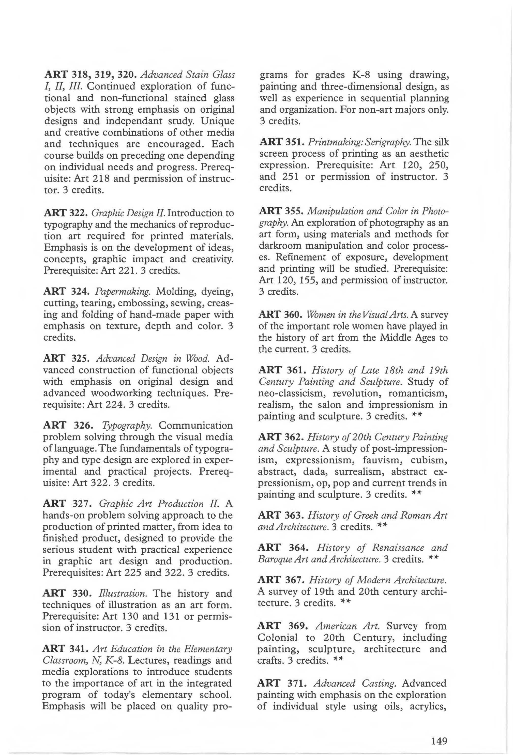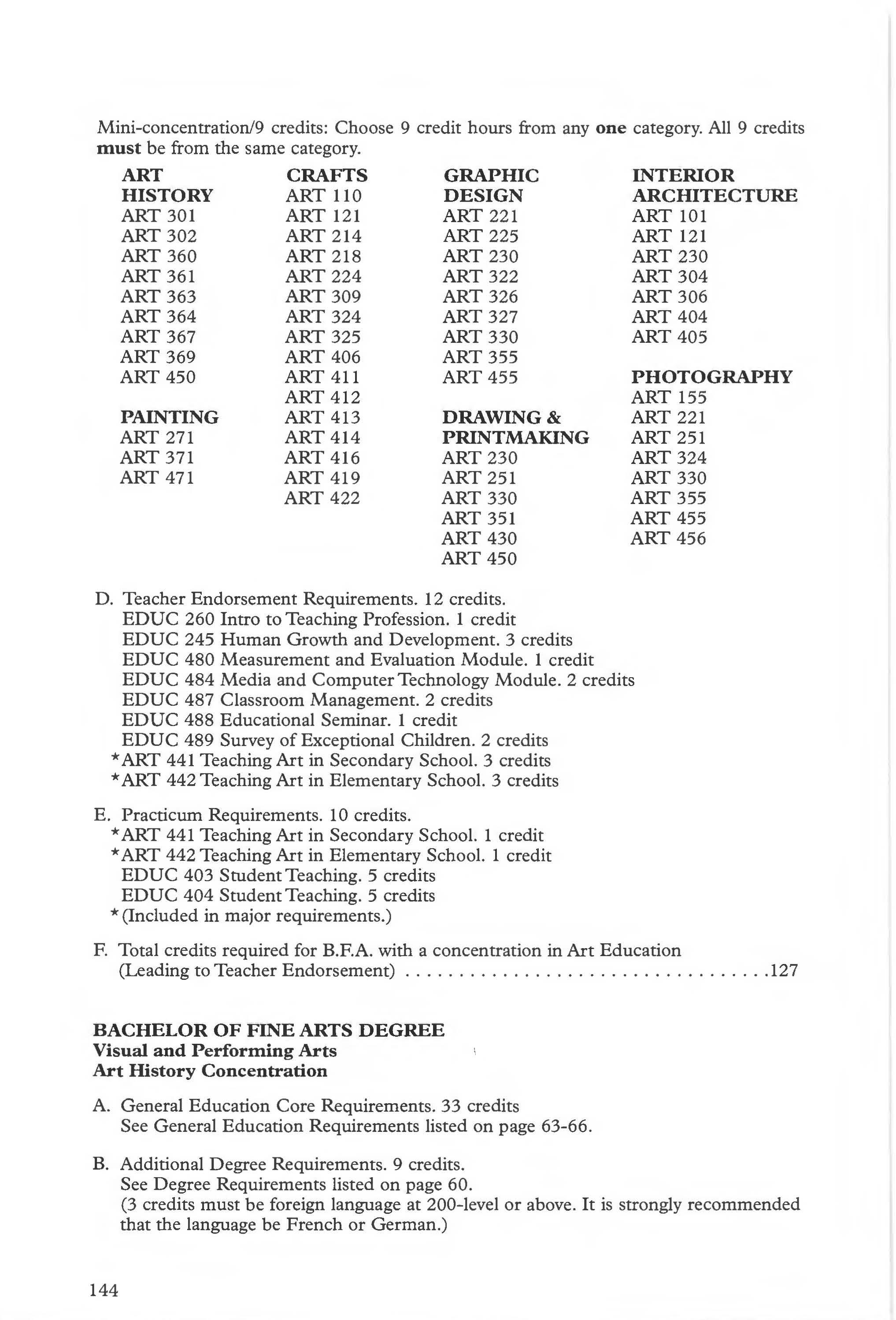 Application Procedures . 11 Application & Registration Fees 19 Art, B.F.A. Degree .......... 143-146 Art Education Concentration 143-144 Art History Concentration 144-145 Studio Concentration .... . . 145-146