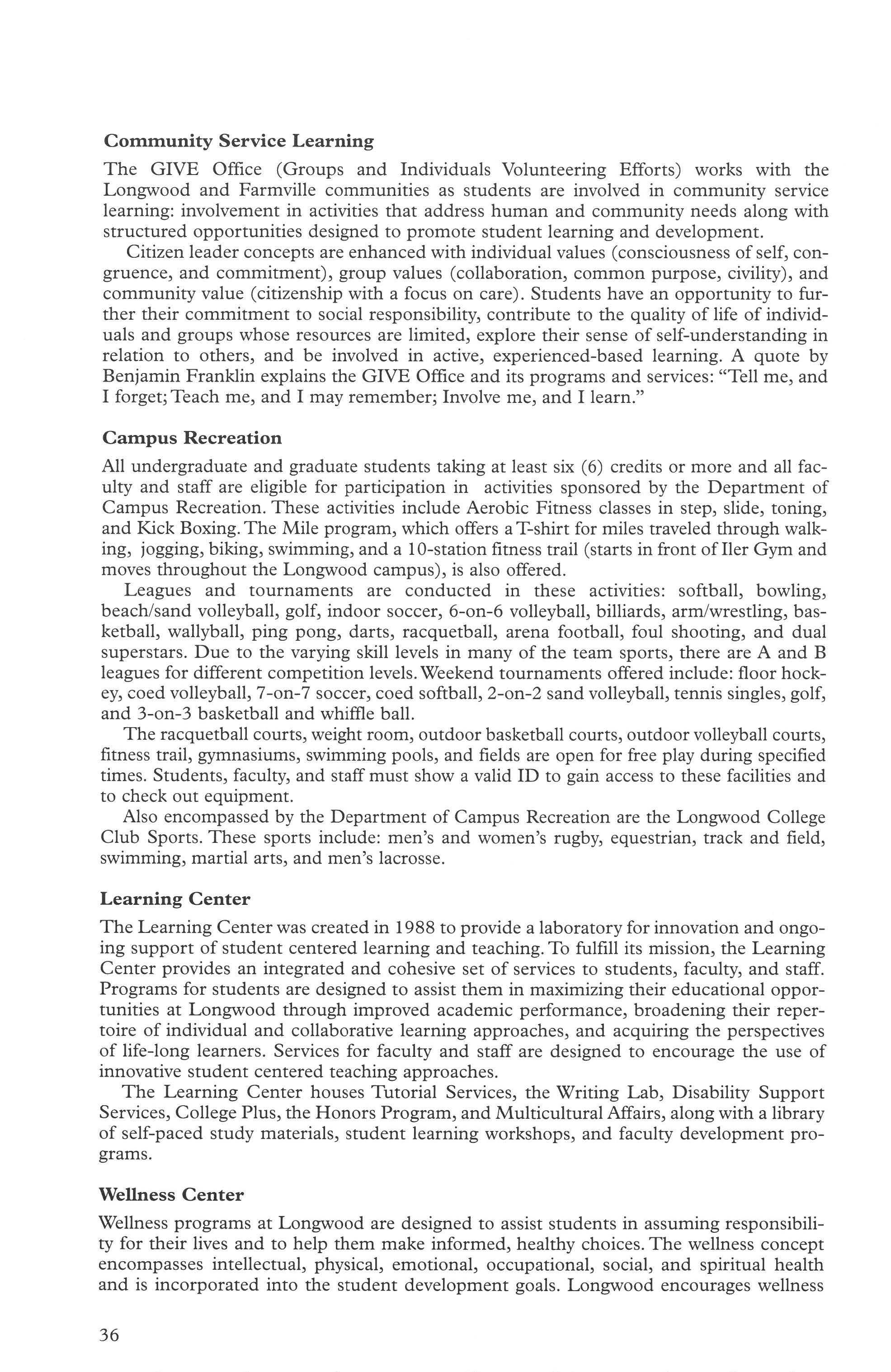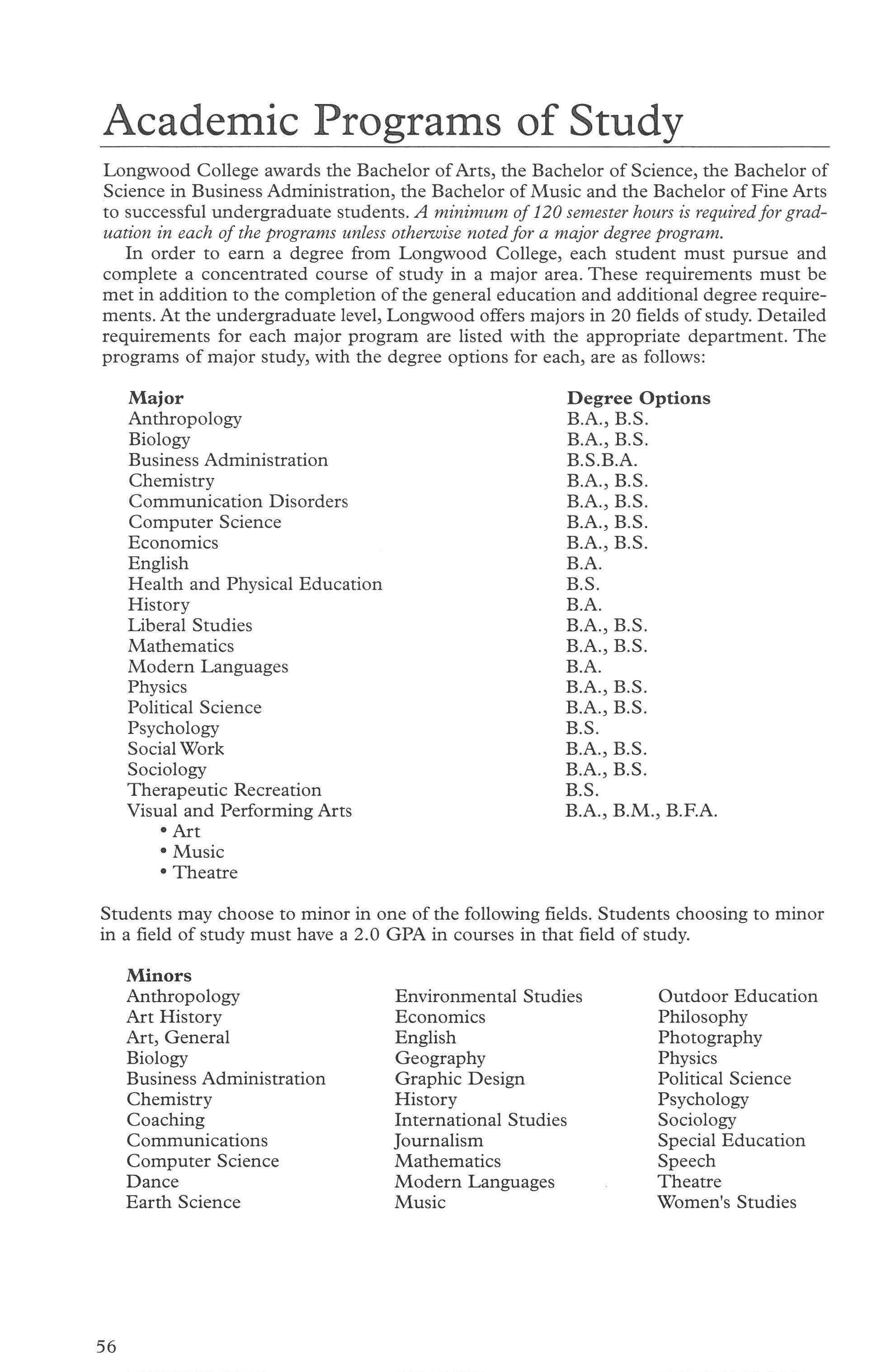 Longwood Profile & Cost Back Cover Longwood Seminar 33 Majors . ....... . . . ......... . .. 56