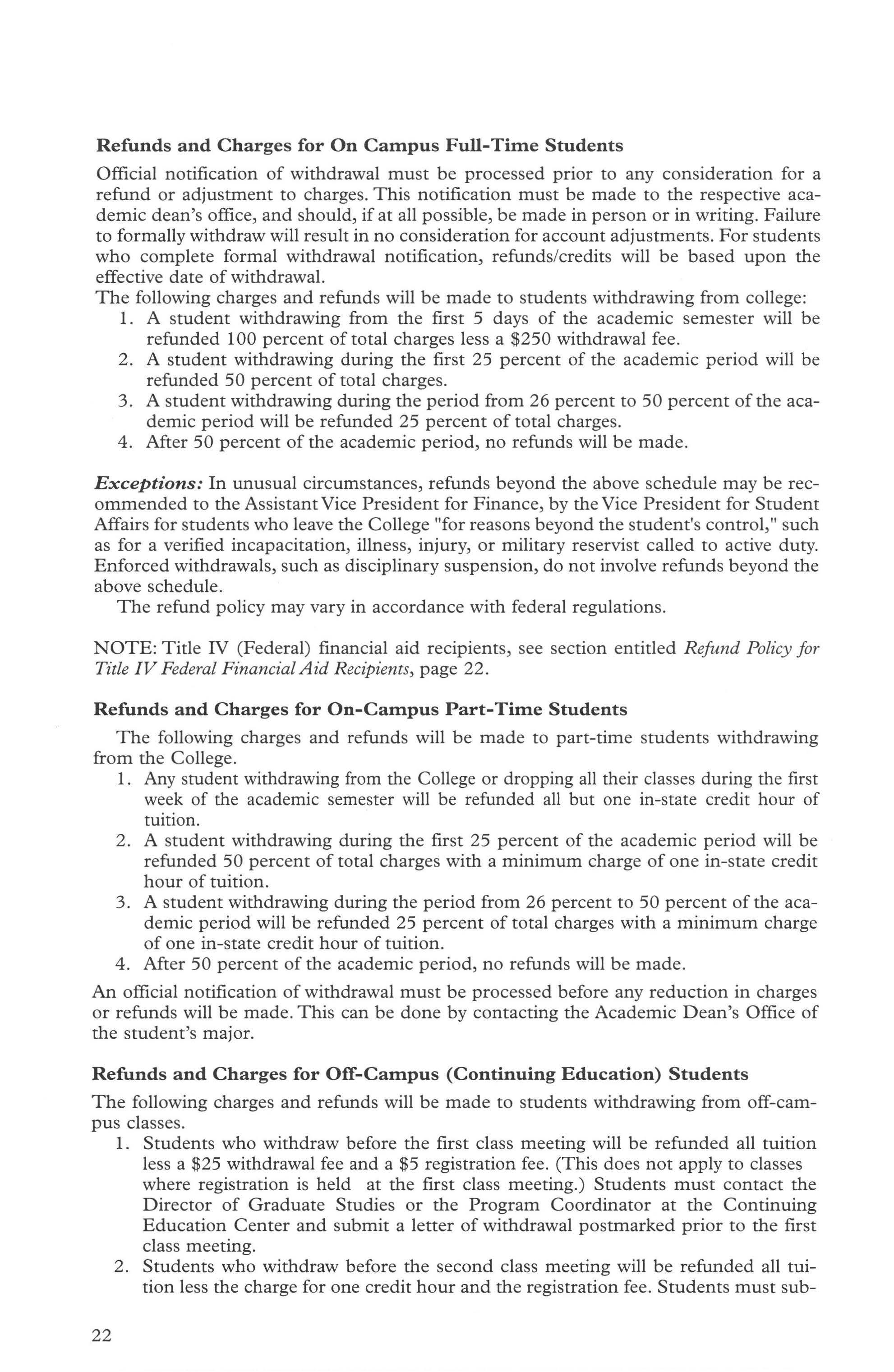 Cooperative Programs 57 Late Payment Fee 20 Correspondence Courses .......... 54 Policy on Minimum Refunds ....... 23 Counseling Service .............. 37 Policy on Unpaid Tuition and Fees ... 21 Course Fees 17 Policy on Unpaid Course Numbers 44 Telephone Accounts 21 Course Repeats ................. 48 Field Courses ................. . 17