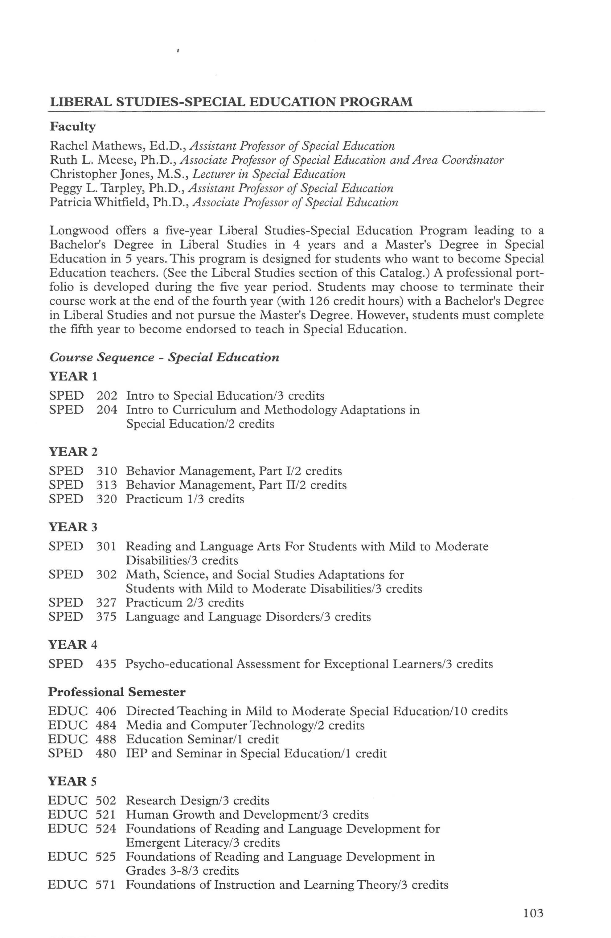 Pre-Medical Curriculum ......... 228 Special Education Courses .... 104-106