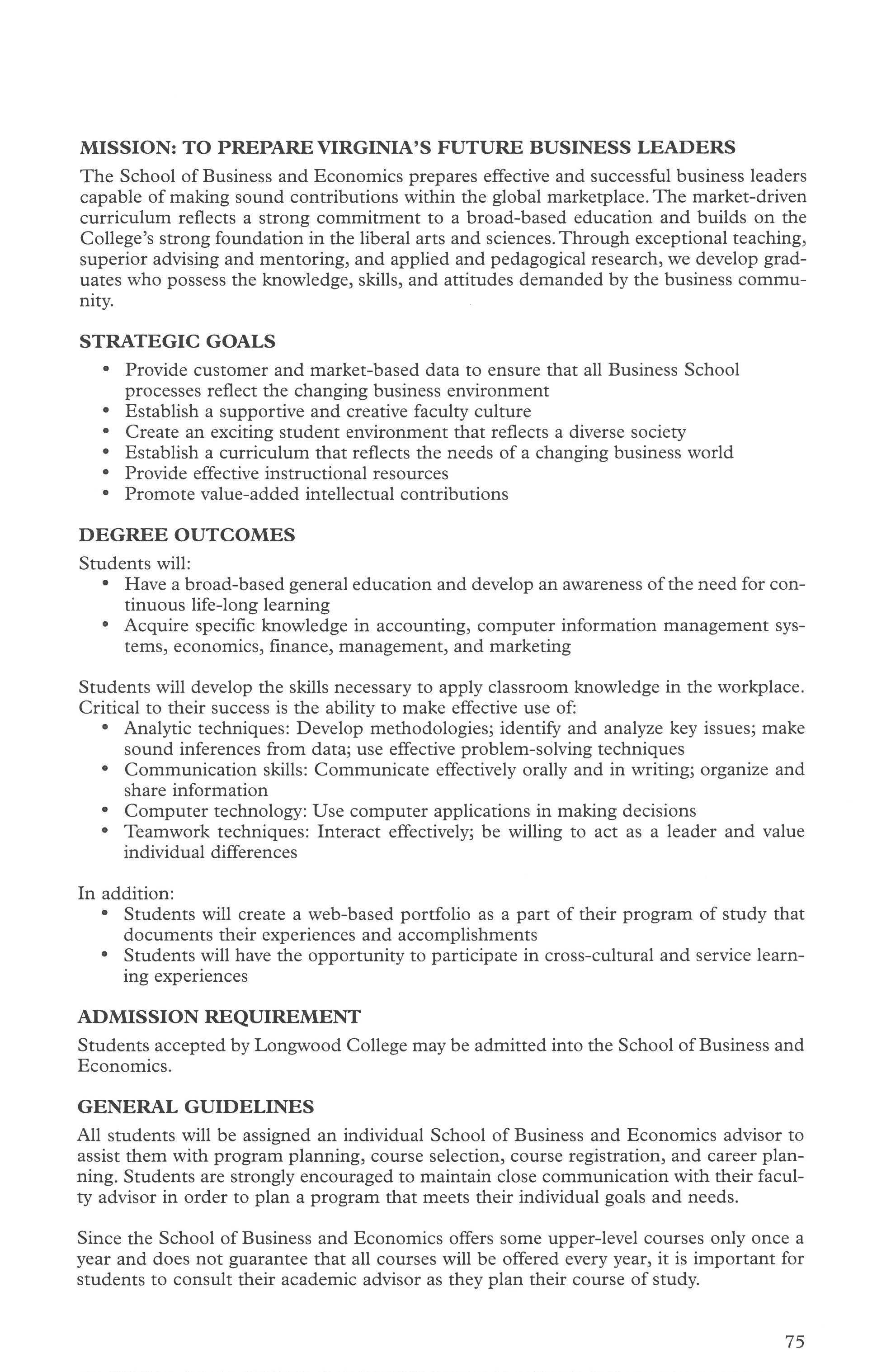 On January 30, 1999, the Longwood College Board ofVisitors approved a document entitled The Mission, Vision and Five- ¼ar Strategic Plan of Longwood College. The result of three years planning by the entire College community, this is far more than just a piece of paper it is a living, breathing action plan designed to assure that Longwood College will meet the incredibly complex educational demands of the 21st Century. Based upon concepts of quality, technological innovation, application of knowledge and accountability, Longwood College is proud to offer you nothing less than The New Collegiate Experience.