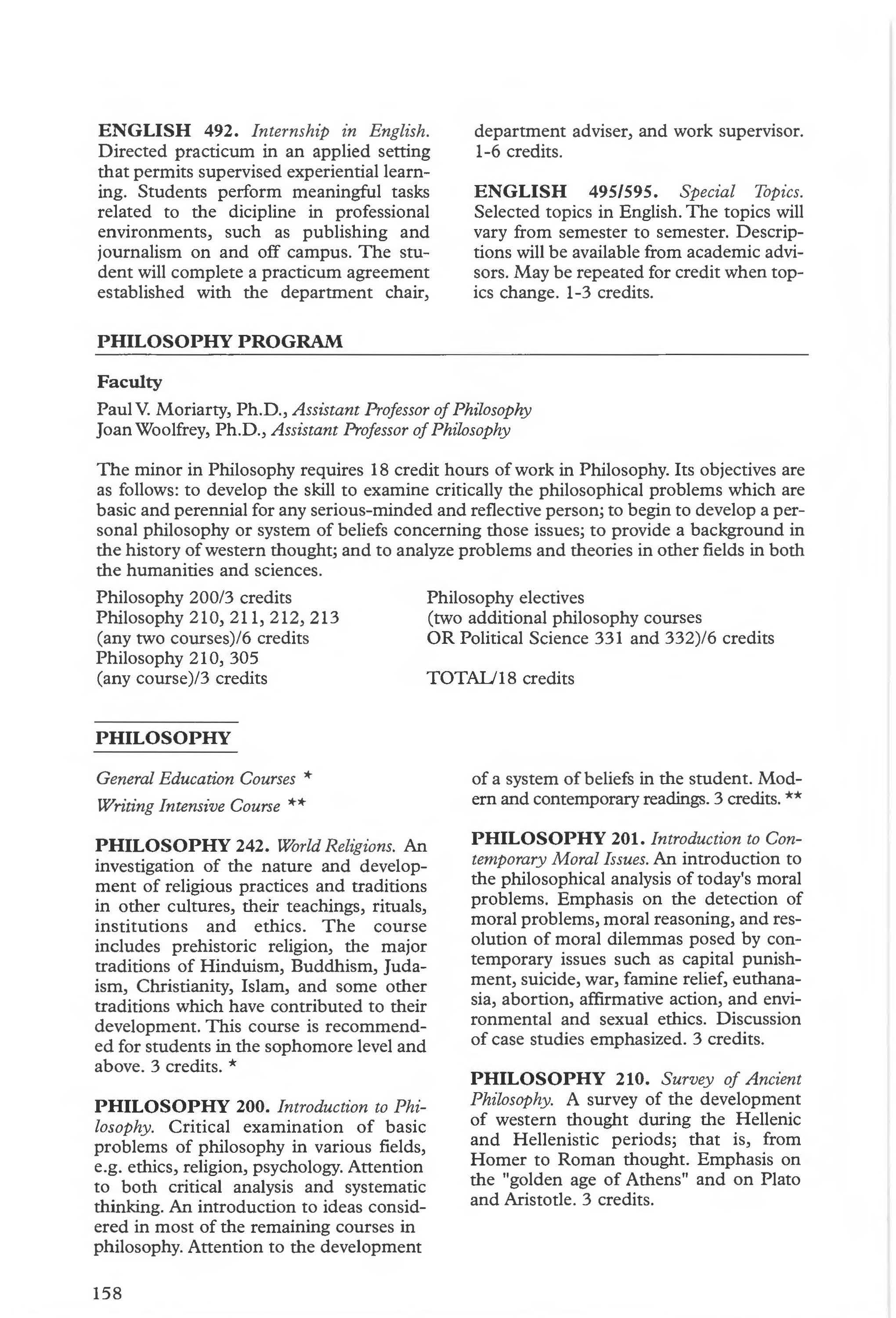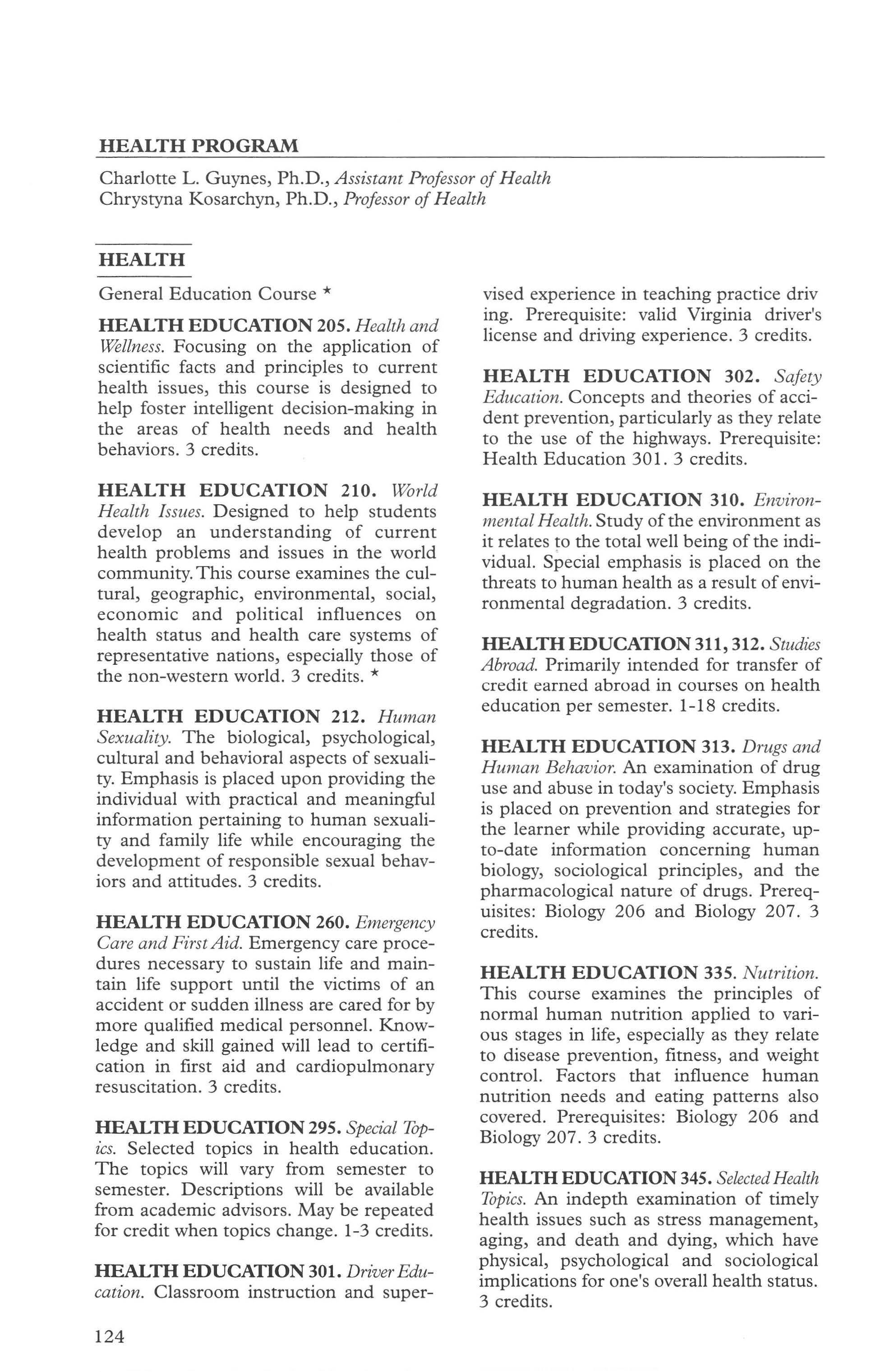 Emeriti Faculty ................ 268 Health Courses ............ 124-125 English Courses 154-158 Health, Physical Education, English Major, B.A. Degree 153 Recreation and Dance, Dept. of 115 English, Minors ............... 154