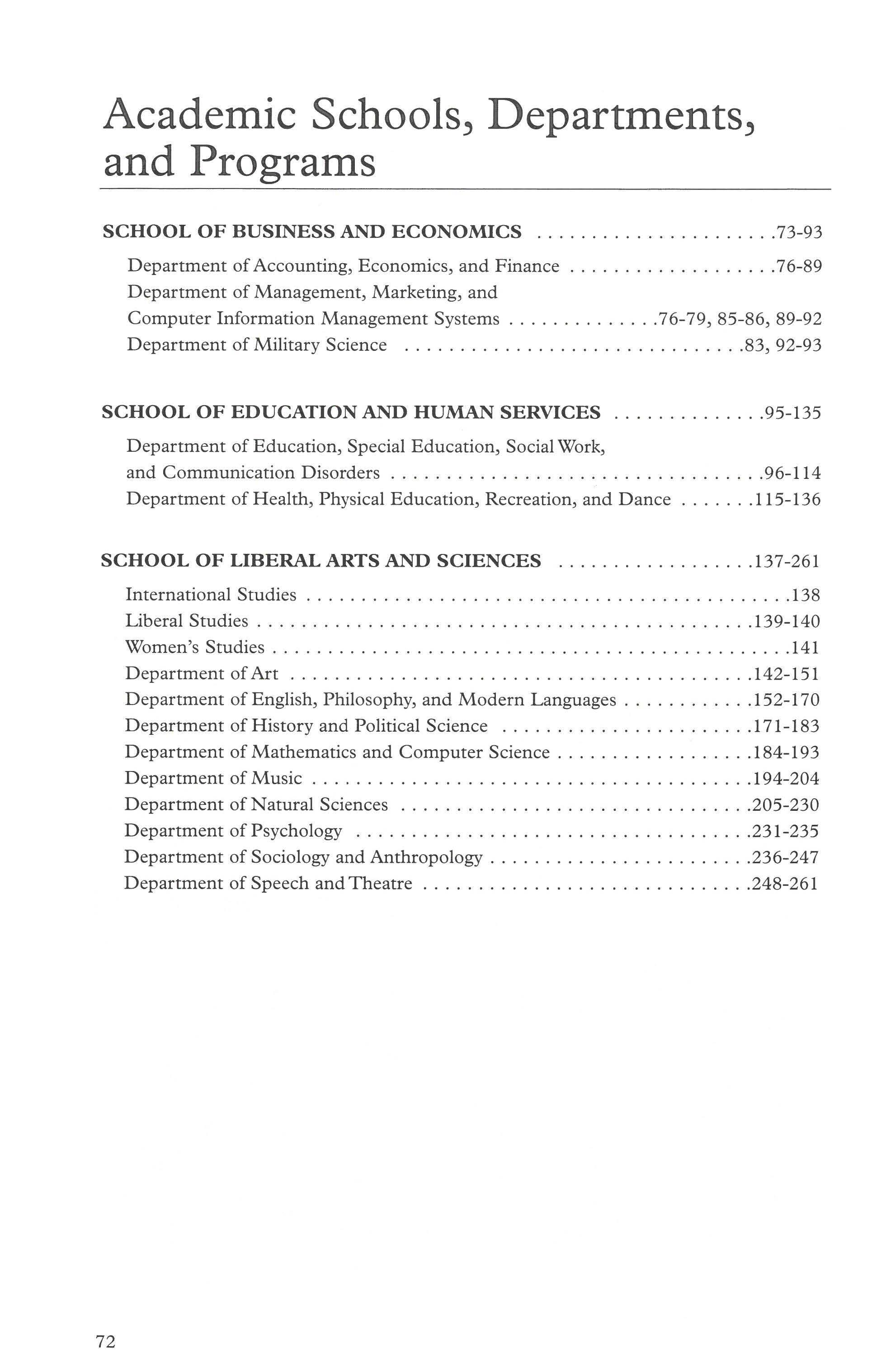 Academic Schools, Department & Programs 72 Accounting Courses 83-85 Accounting Program .......... 76, 78 Accreditation ................... 1 Activities, Student 35 Add Period 45 Administration .................. 6
