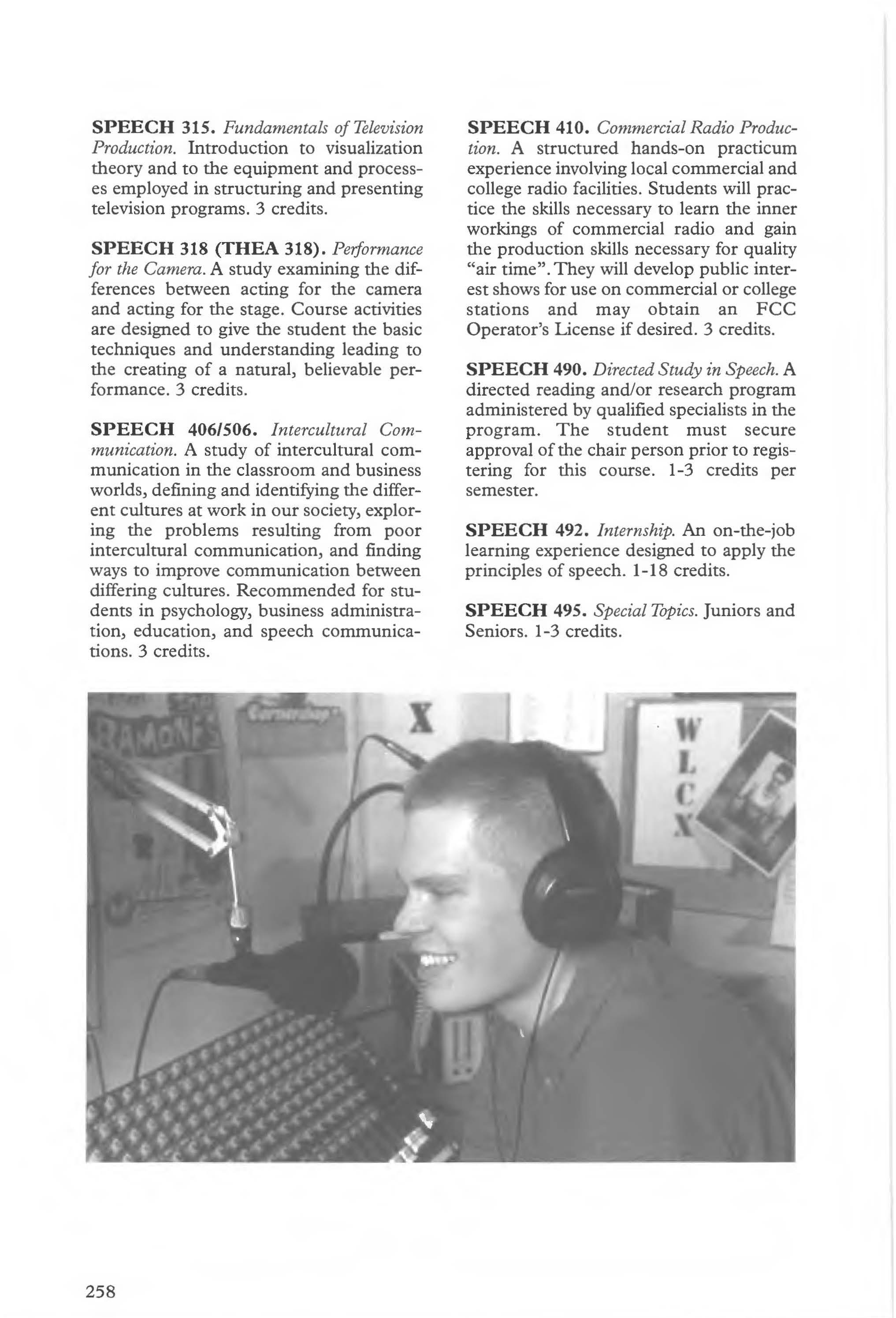 Pre-Pharmacy ................. 228 Speech Program ............ 256-257 Pre-Physical Therapy ..... .. ..... 228 Speech Minor ................. 257