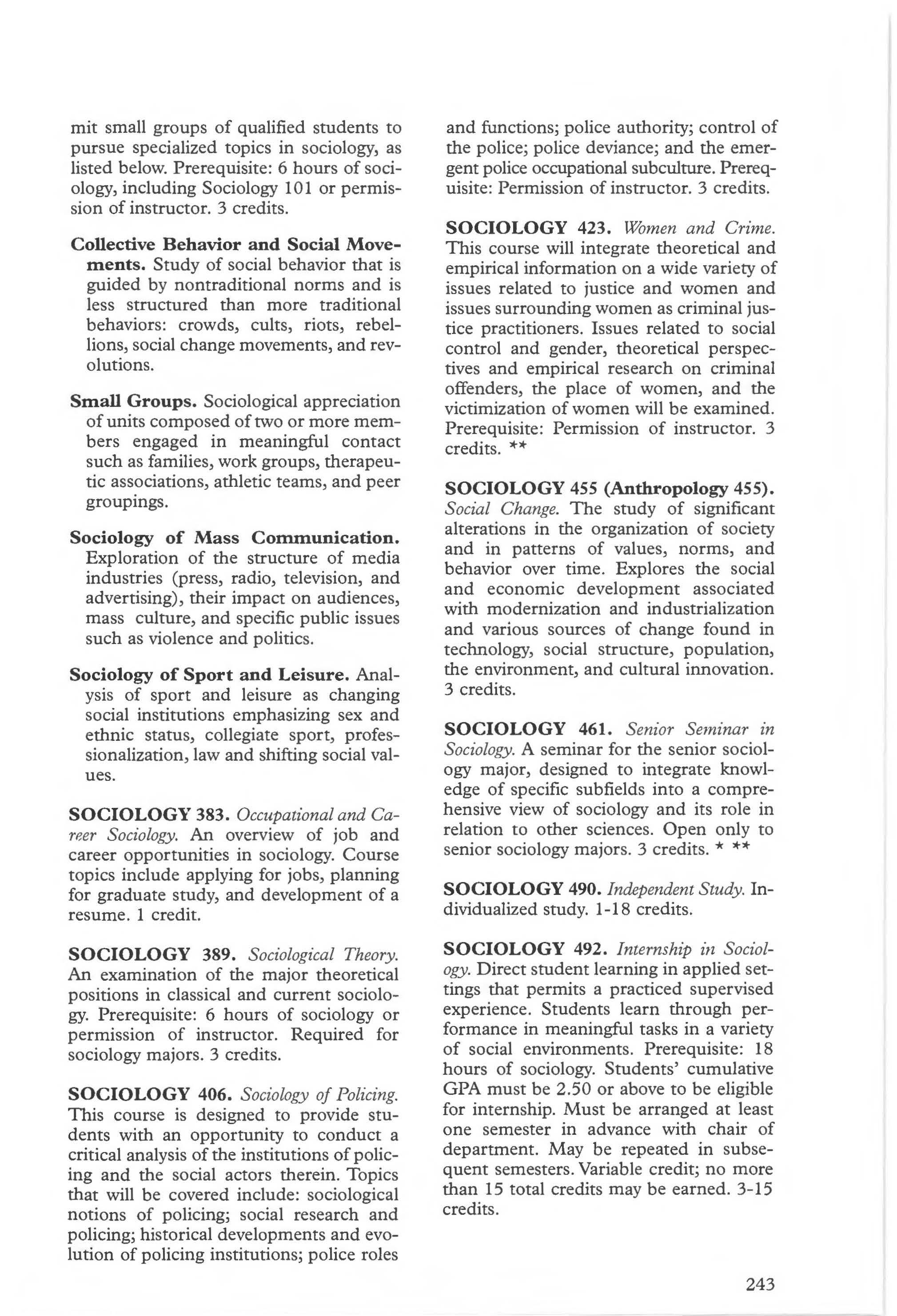 Sociology & Anthropology, Dept. of 236 Withdrawal Policy .19, 21-23, 46-47, 68 Sociology Courses ....... . .. 240-244 Women's Studies Program ........ 141 Sociology Minor ............... 239