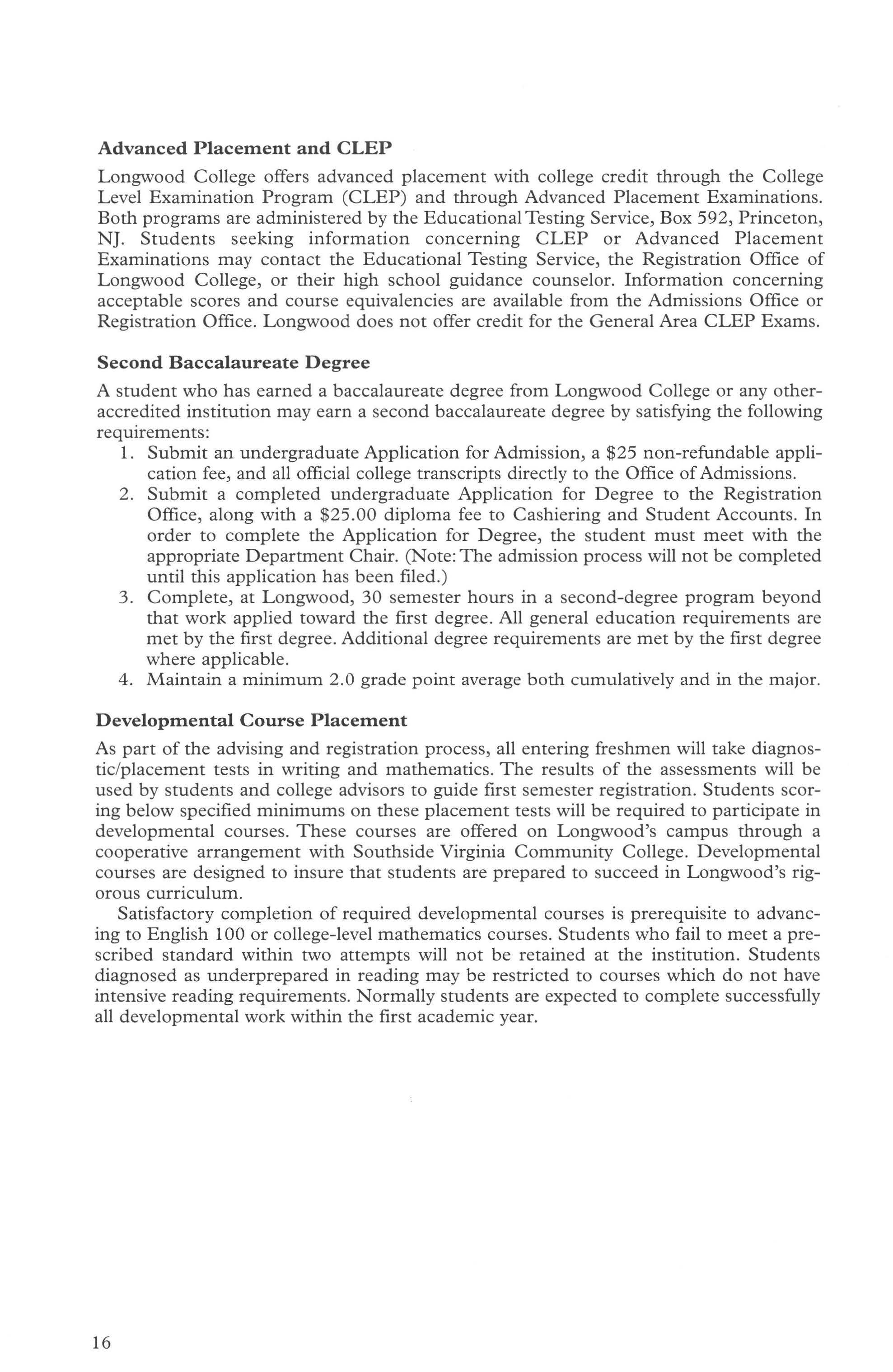 Longwood College reserves the right to require a series of student proficiency assessment tests prior to graduation The purpose of these assessment tests is to help individual students develop to their fullest potential and to improve the educational programs of the College. Students are required to participate; students who fail to participate may lose their priority ranking for registration and housing. The College may withhold transcripts for three months for graduating seniors who fail to participate.