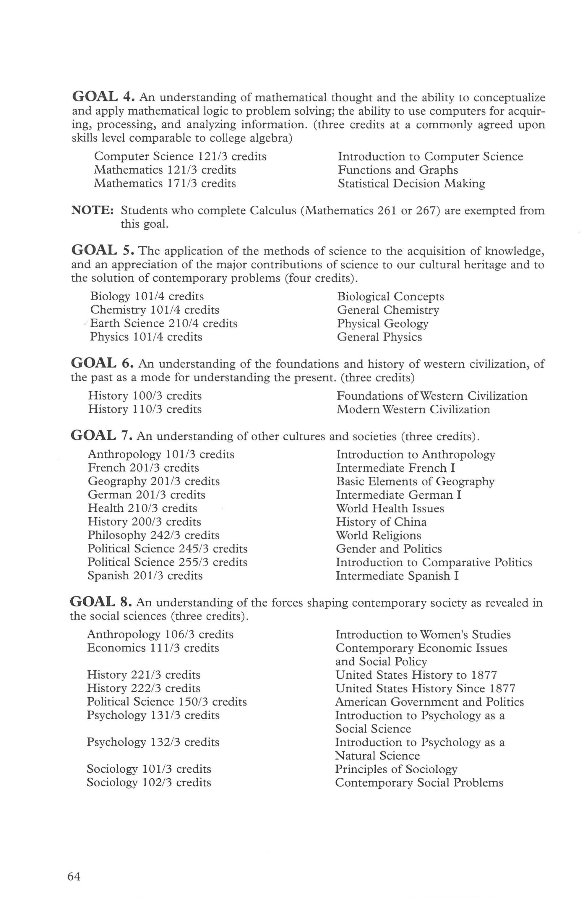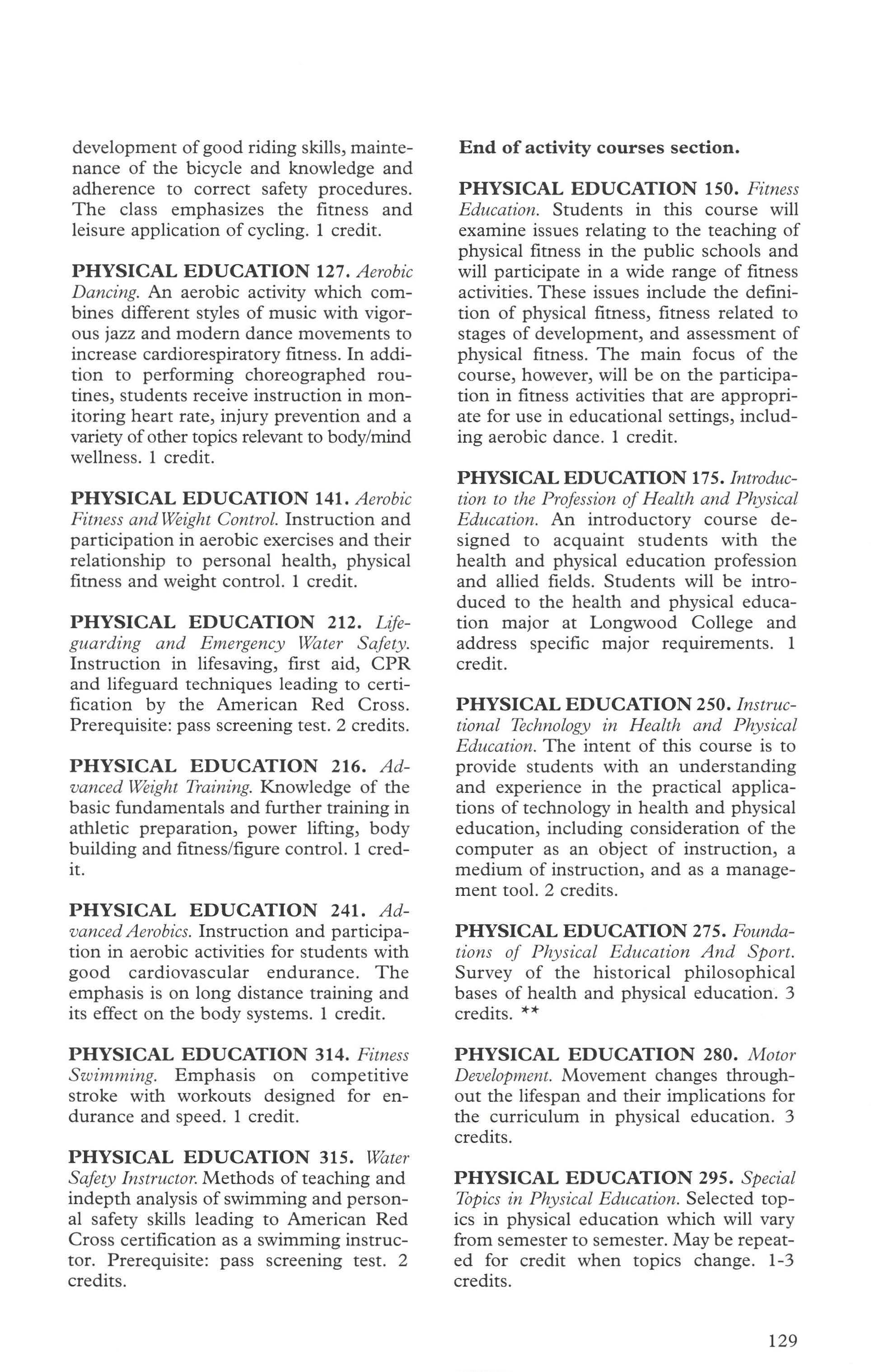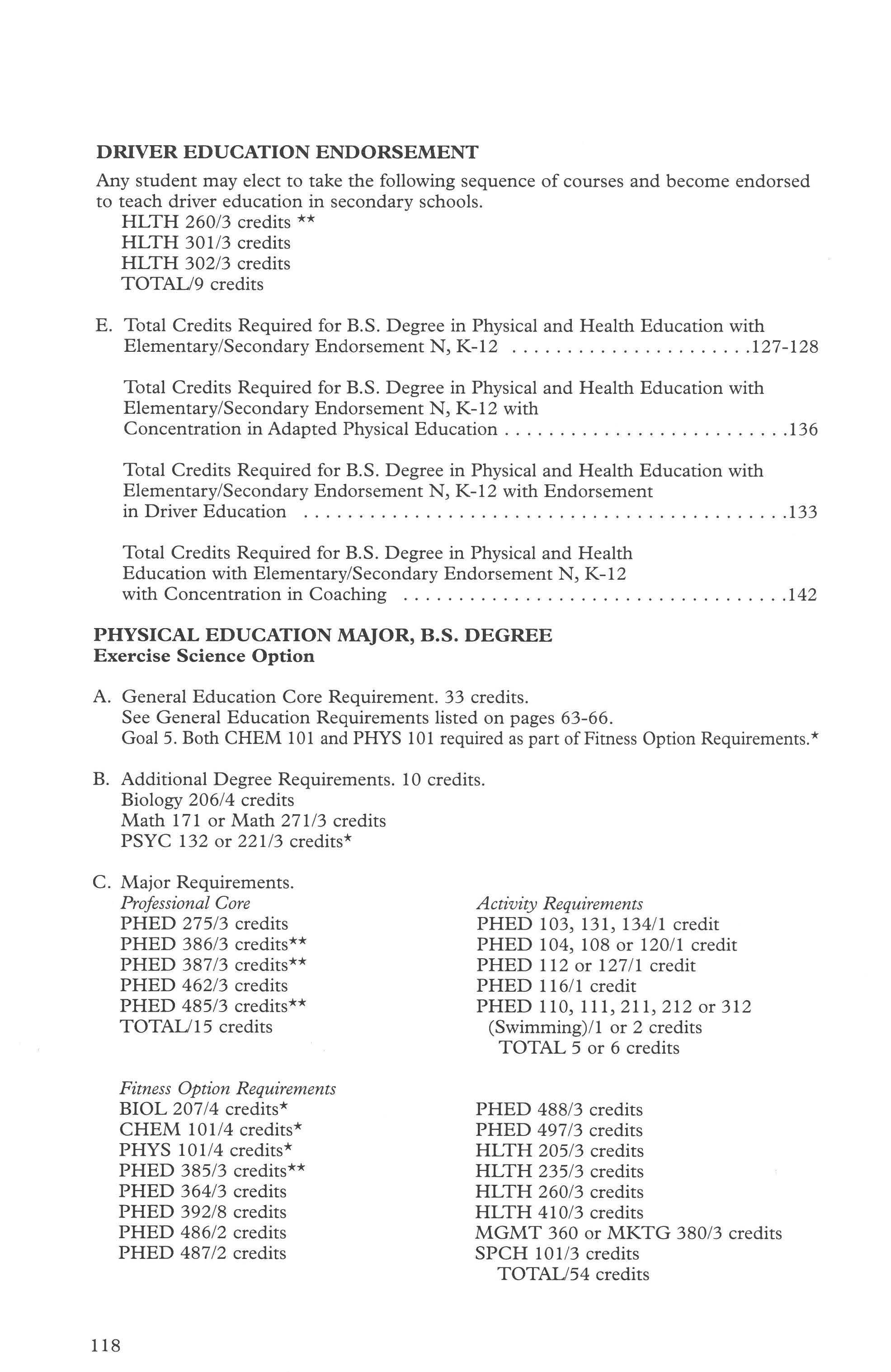Physical Education Activity Classes Meeting General Education Requirements .... . ..... . . 125-128