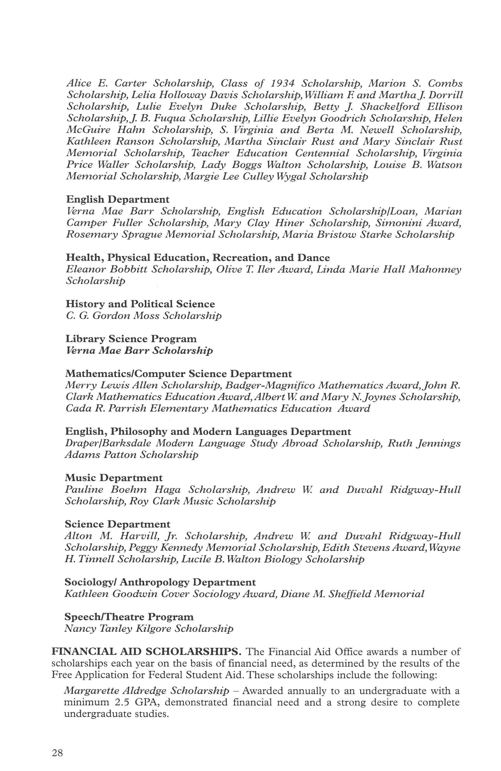 Dan Daniel Award for Scholarship Finance Courses ............. 88-89 & Citizenship 30 Financial Aid 23-30