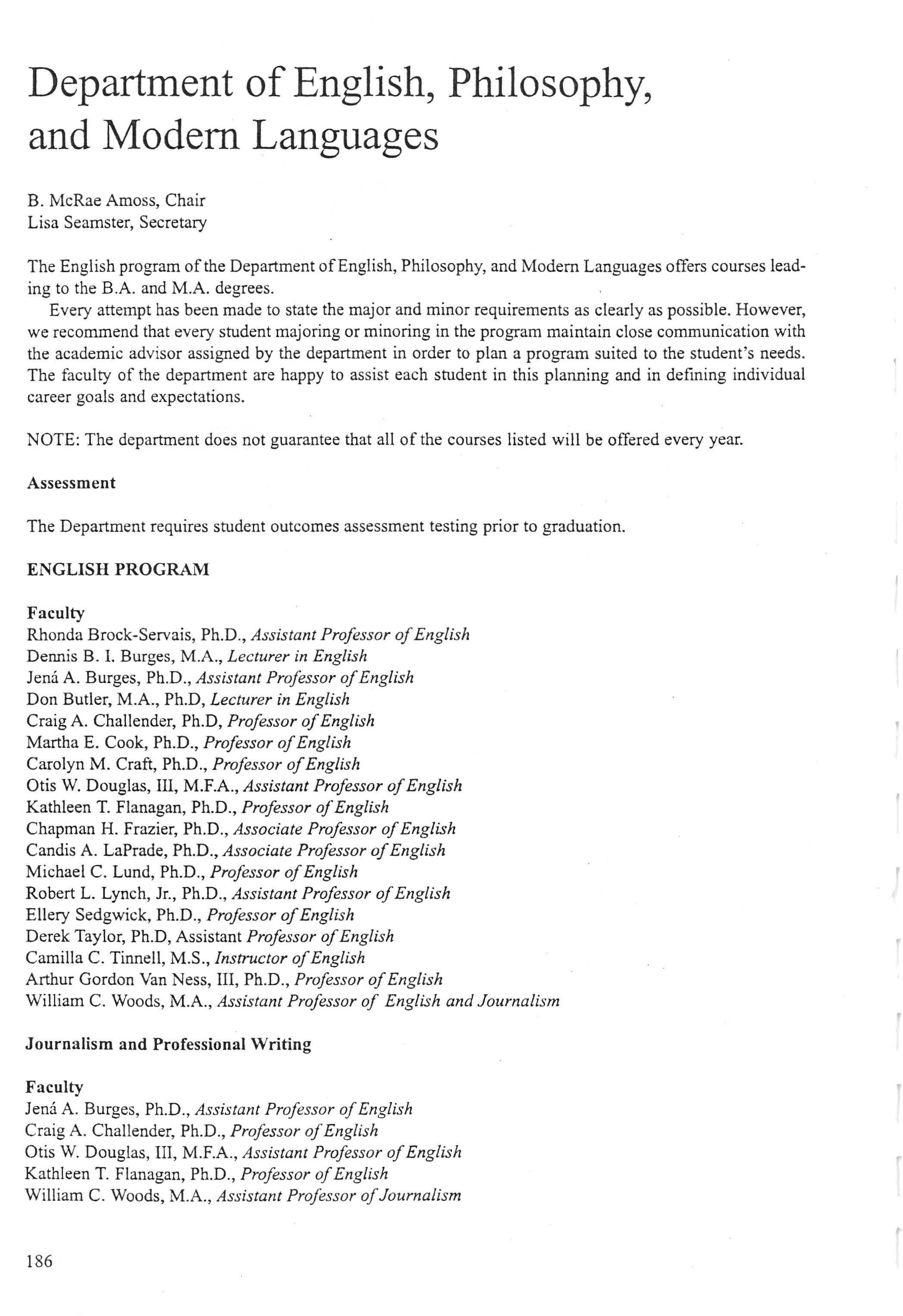 Department of English , Philosophy, and Modern Languages