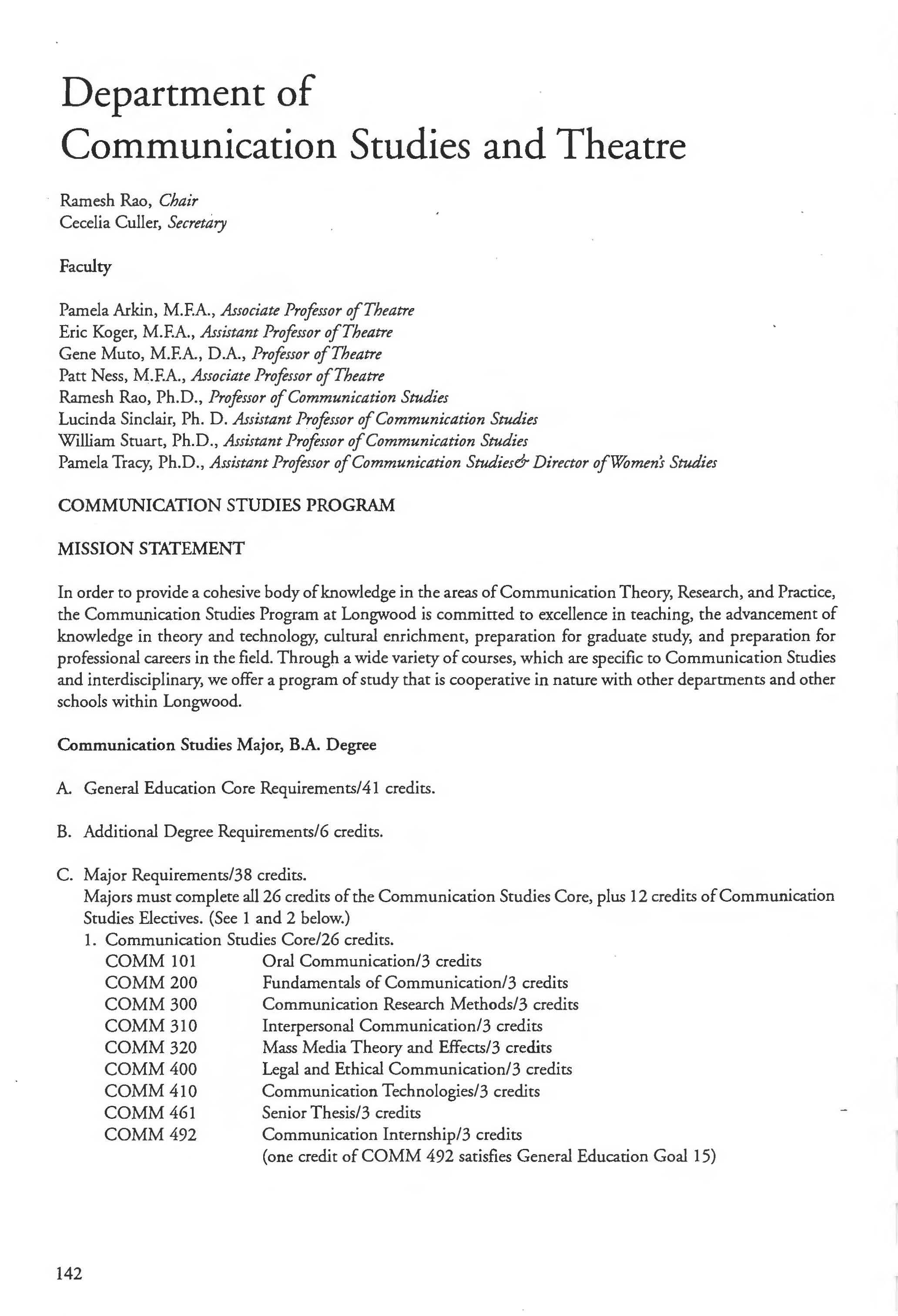 Communications Studies Major 142-143 Academic Requirements 19-22