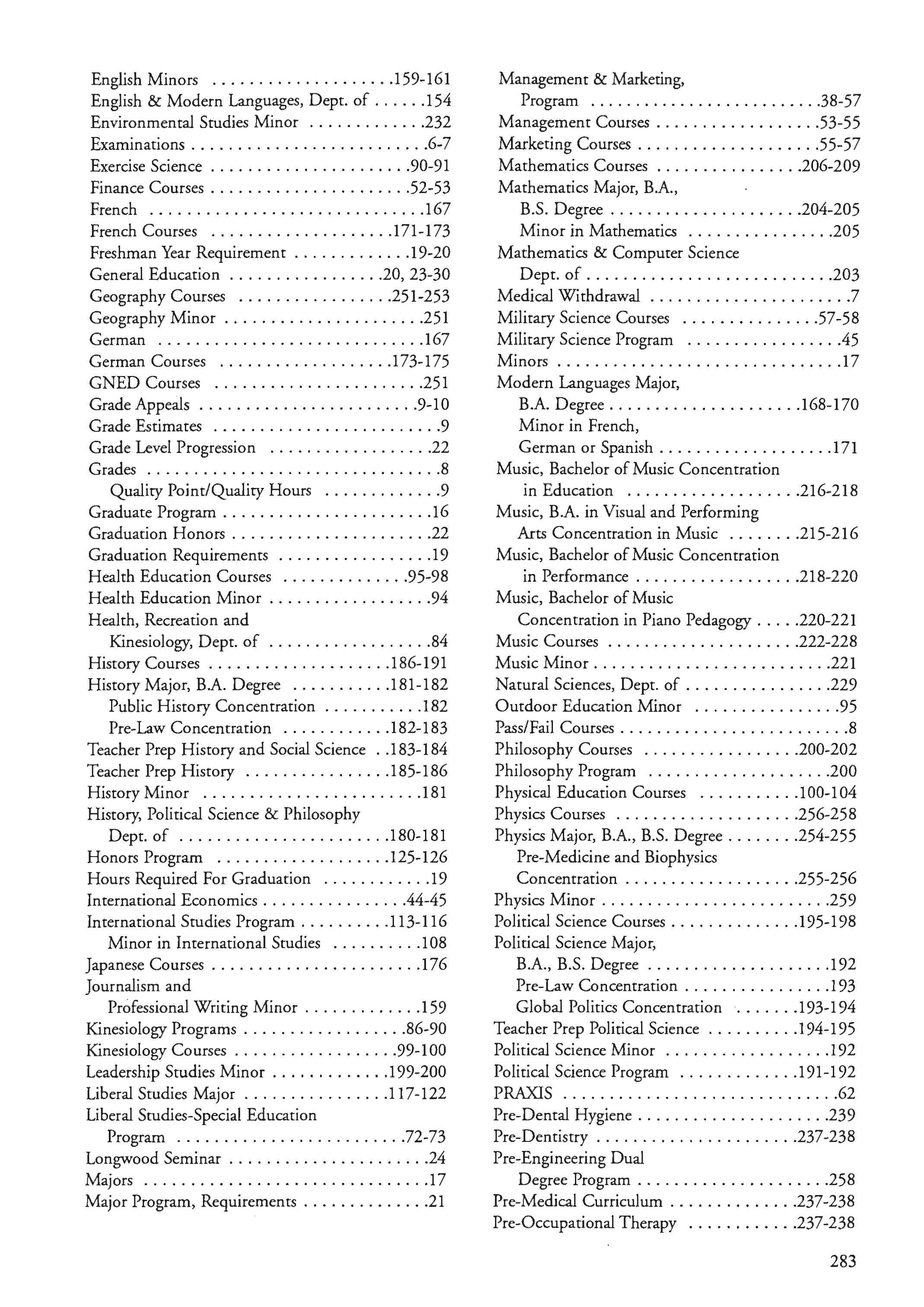 Women's Studies Program 123-124 Studies, Dept. of ...... ... . .. ...... . .... 266
