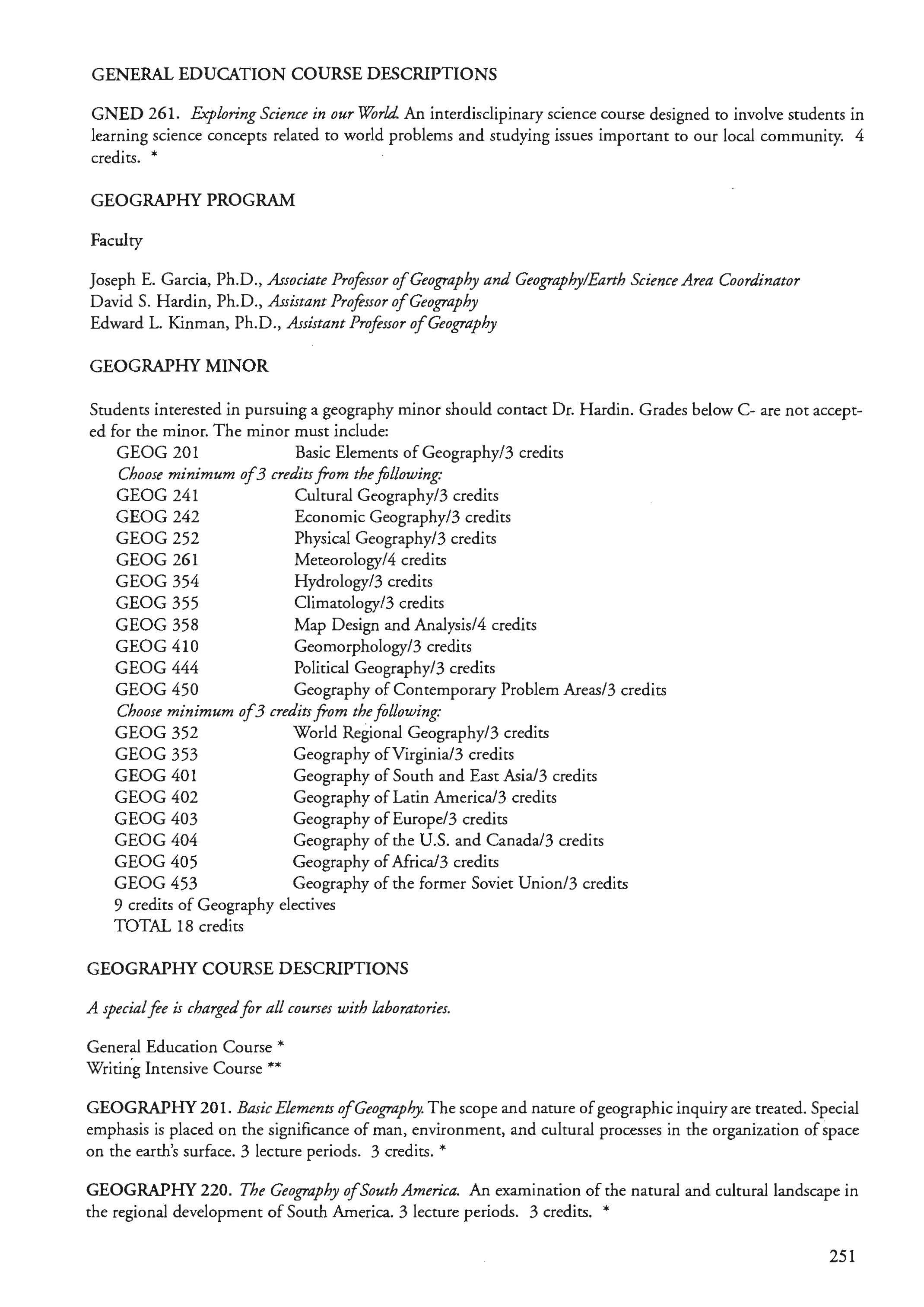 Freshman Year Requirement .. . .......... 19-20 Mathematics & Computer Science General Education 20, 23-30 Dept. of 203 Geography Courses 251-253 Medical Withdrawal 7 Geography Minor ...................... 251 Military Science Courses ............... 57-58 German 167 Military Science Program .45 German Courses ................... 173-175 Minors ............................... 17
