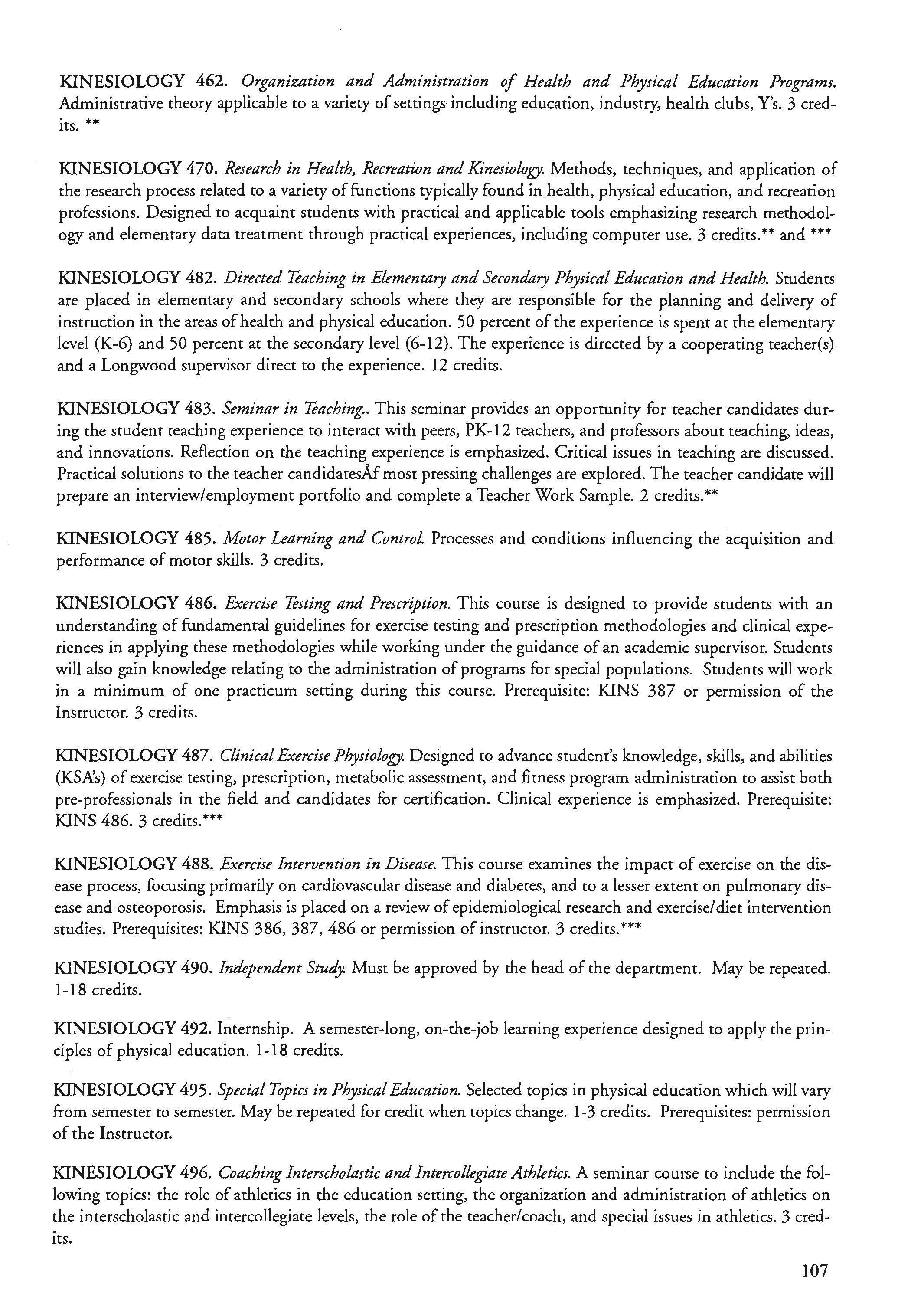 This document is provided as a convenience to faculty and staff and should not be considered the official copy of the catalog. This document may contain errors. The official copy of the catalog resides on the Longwood website.