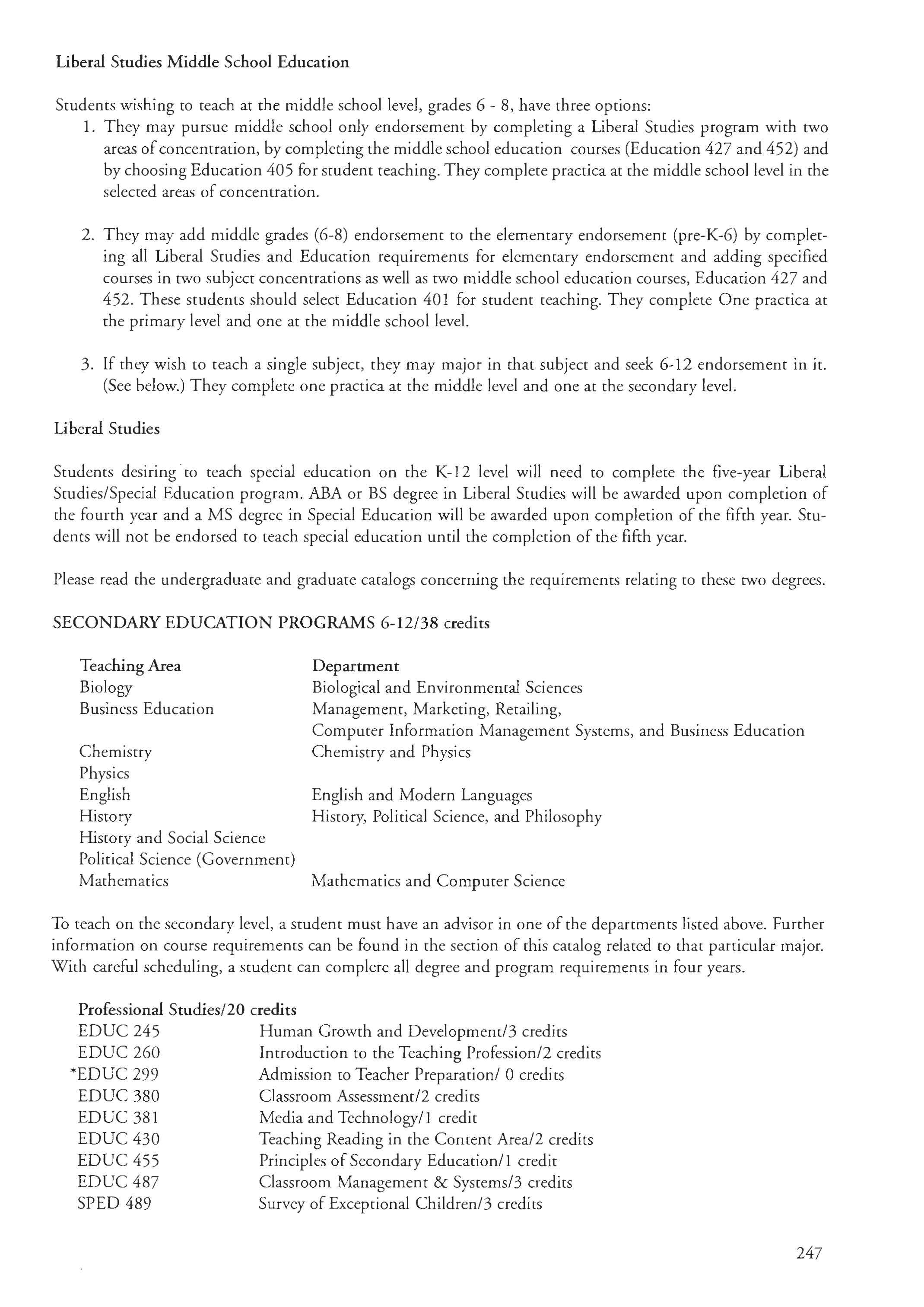 Liberal Studies Major ...... . .. .. ....... 36-4 I PRAXIS .. .. .......... . . ... . . . ... .... 245