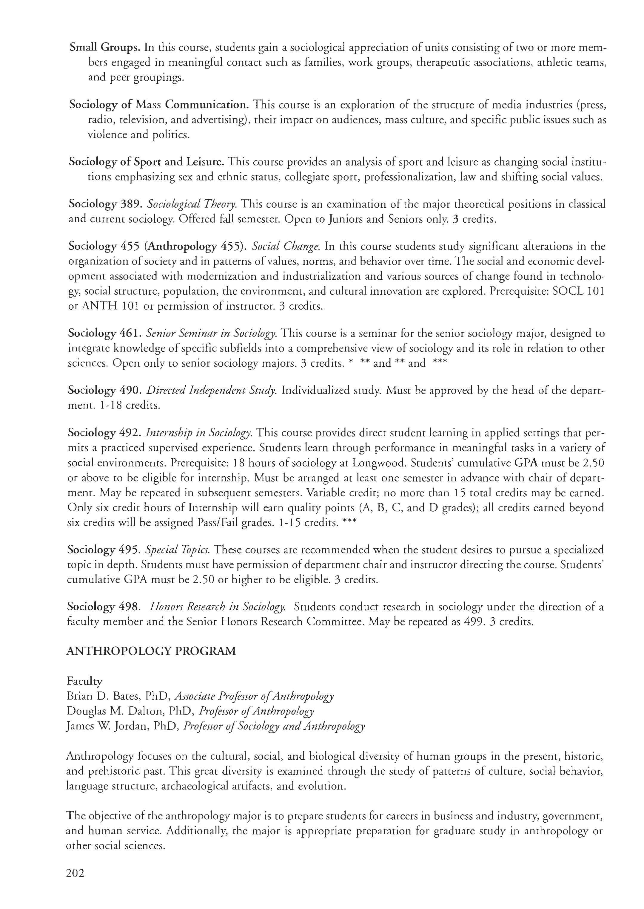 This document is provided as a conuenience to faculty and staff and should not be considered the official copy of the catalog. This document may contain e17ors. The official copy of the catalog resides on the Longwood website.