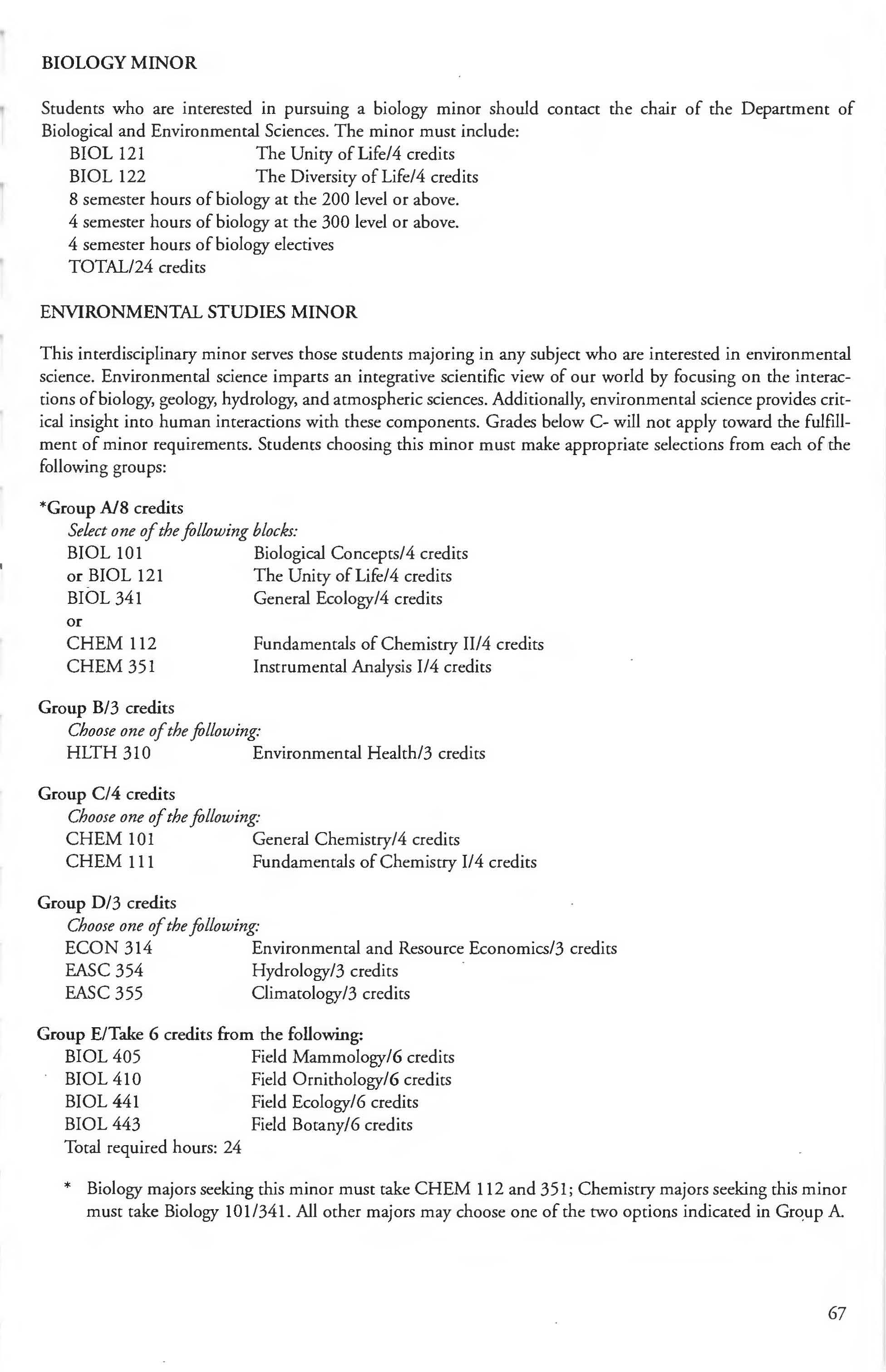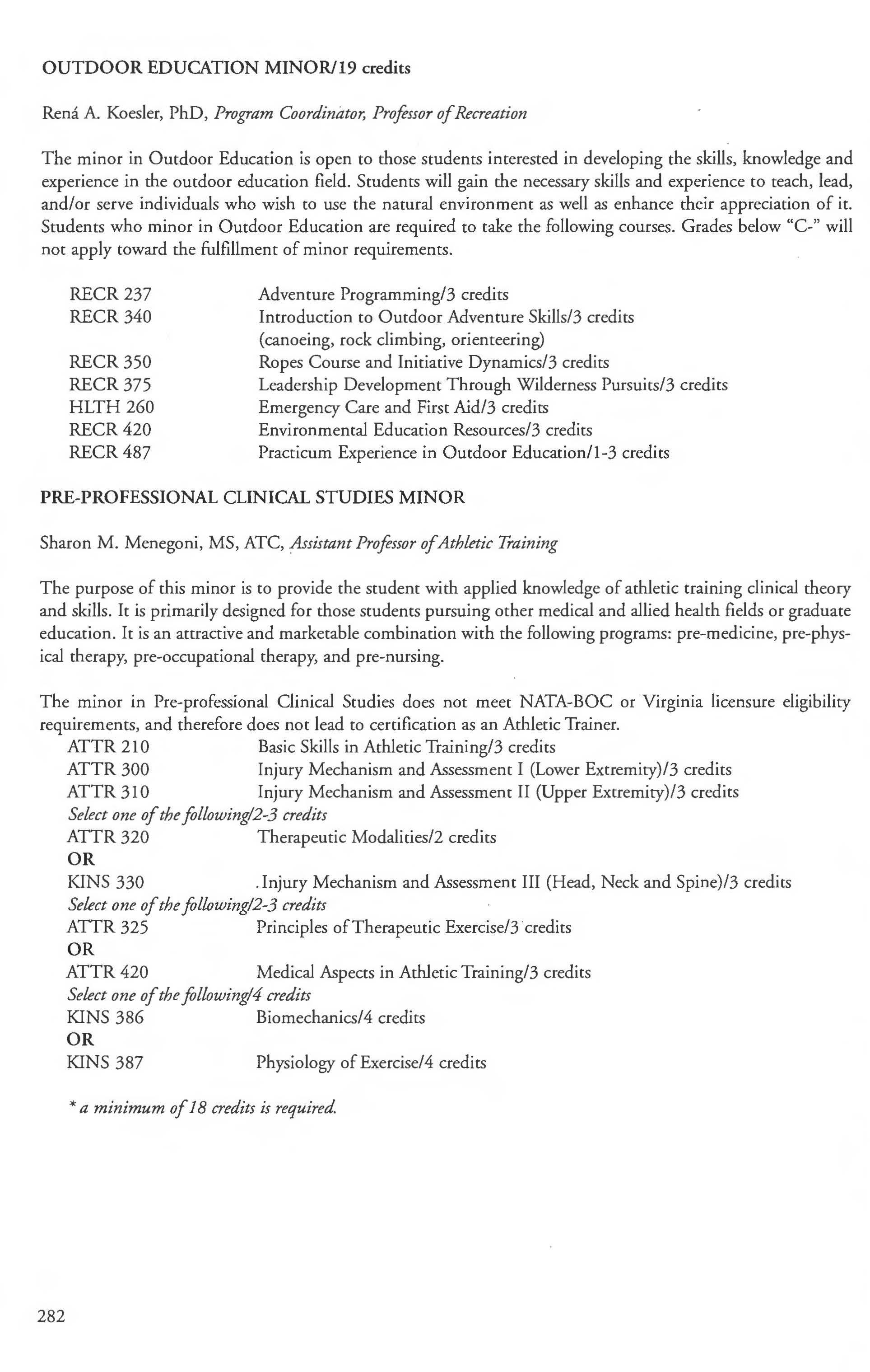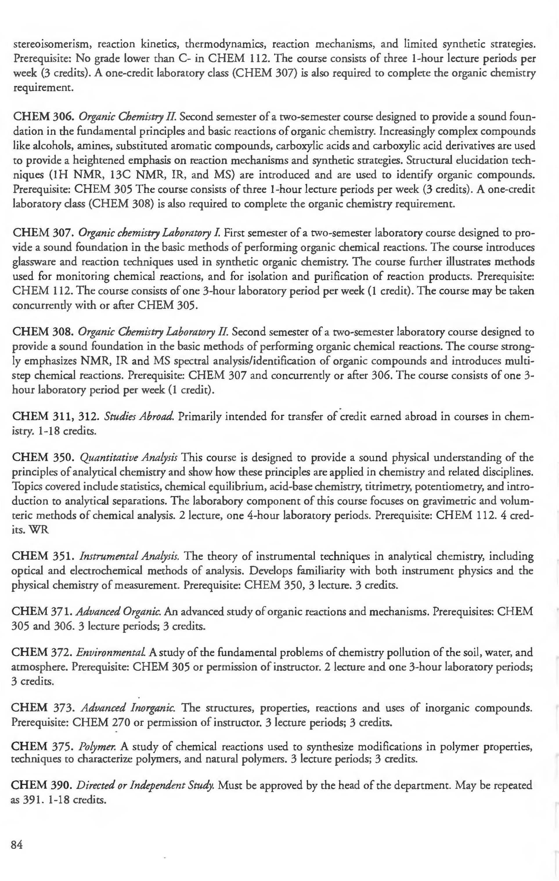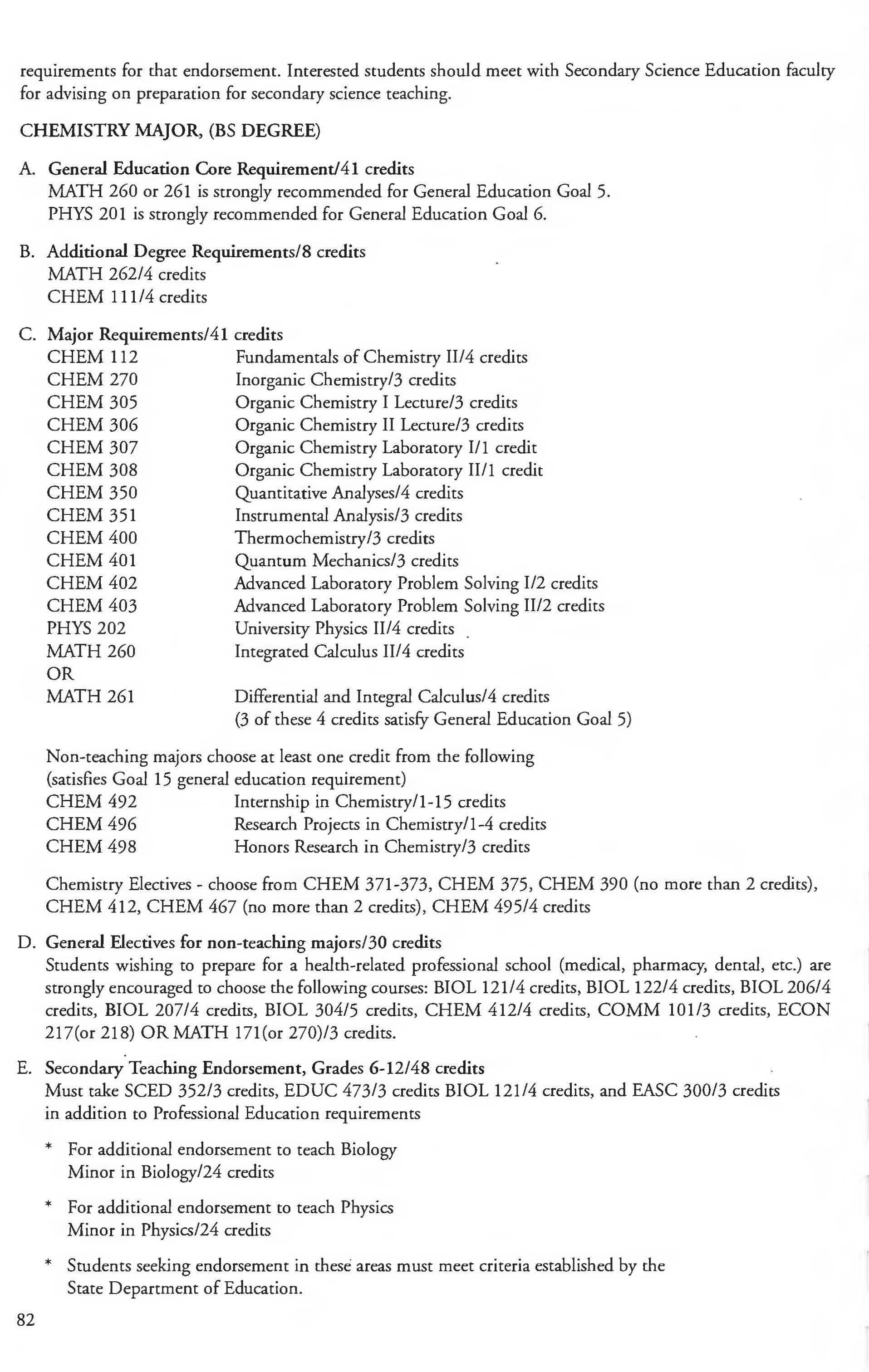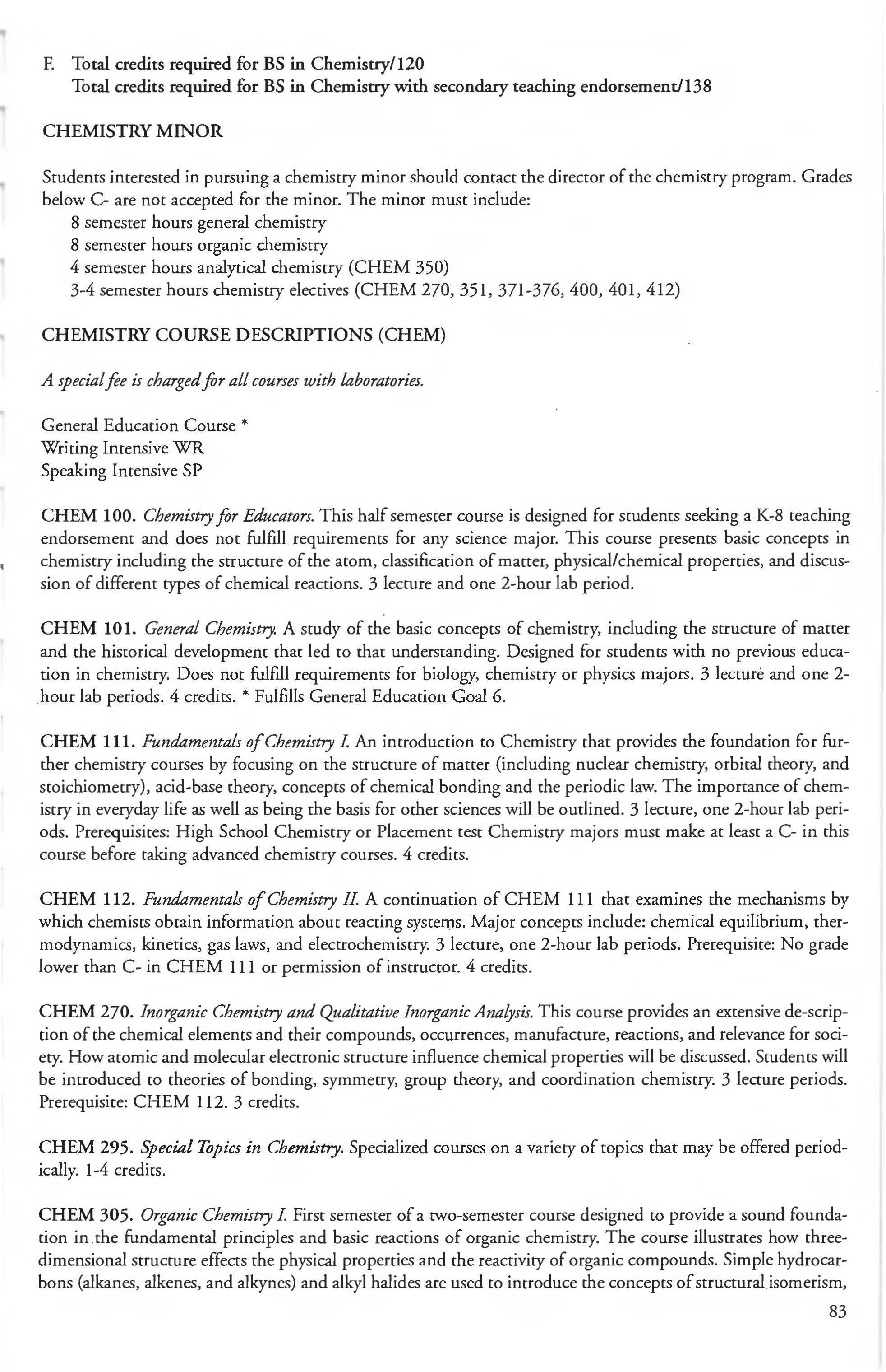Chemistry Minor 83 English Courses 120-126 Class Attendance ................ . . . . . . . .6- 7