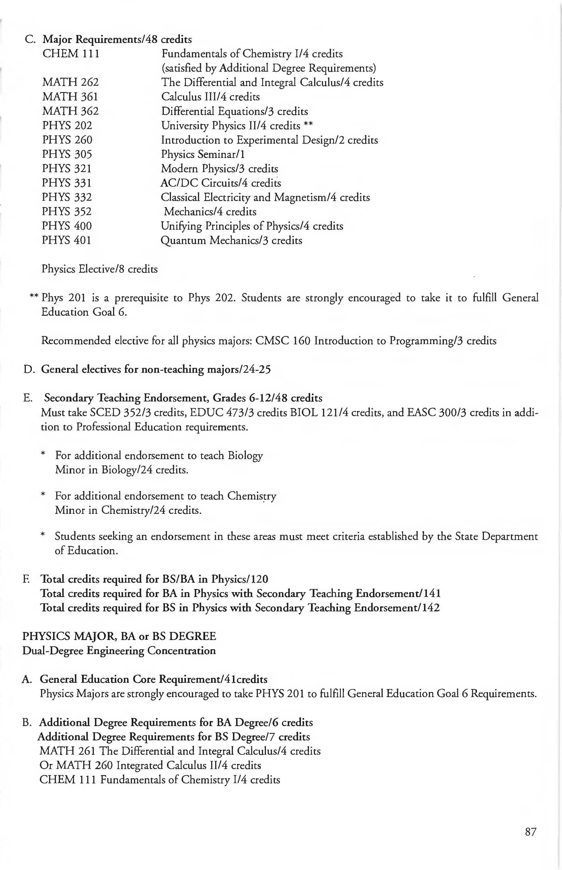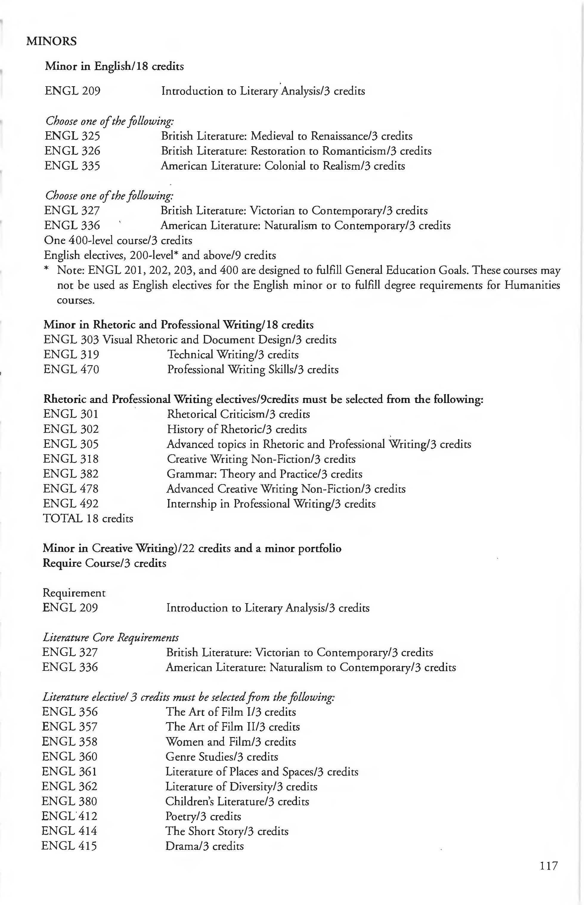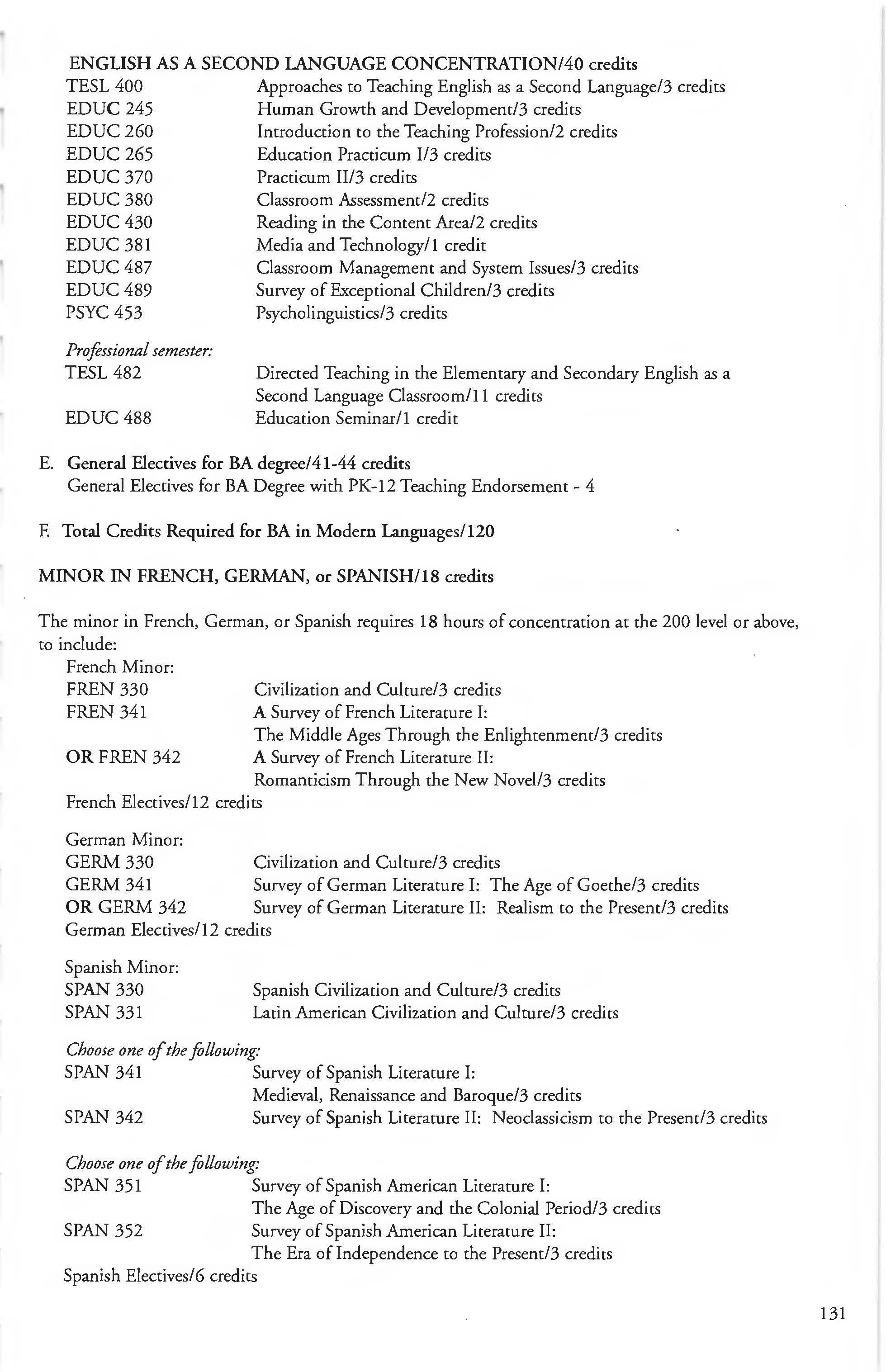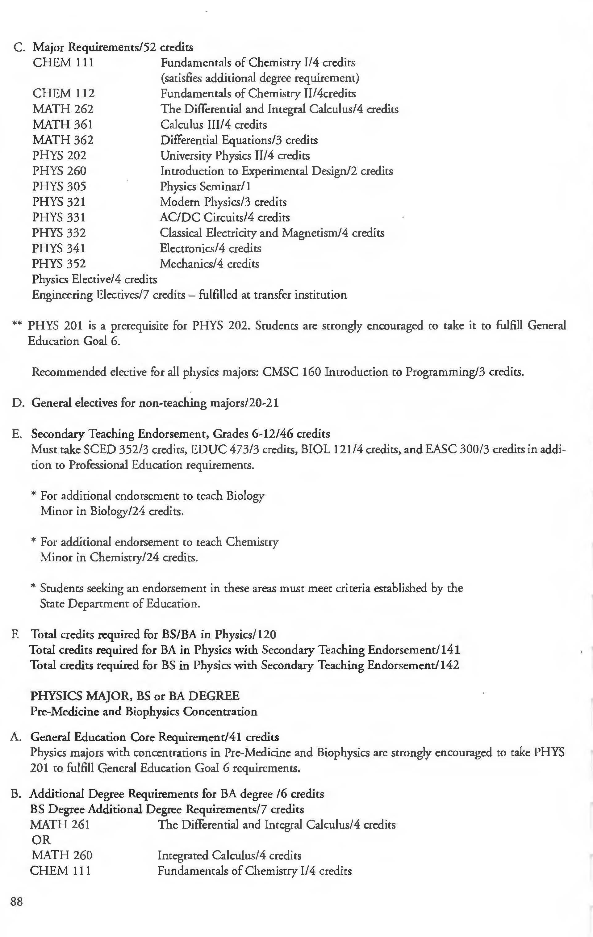 Chemistry Minor 83 English Courses 120-126 Class Attendance ................ . . . . . . . .6- 7
