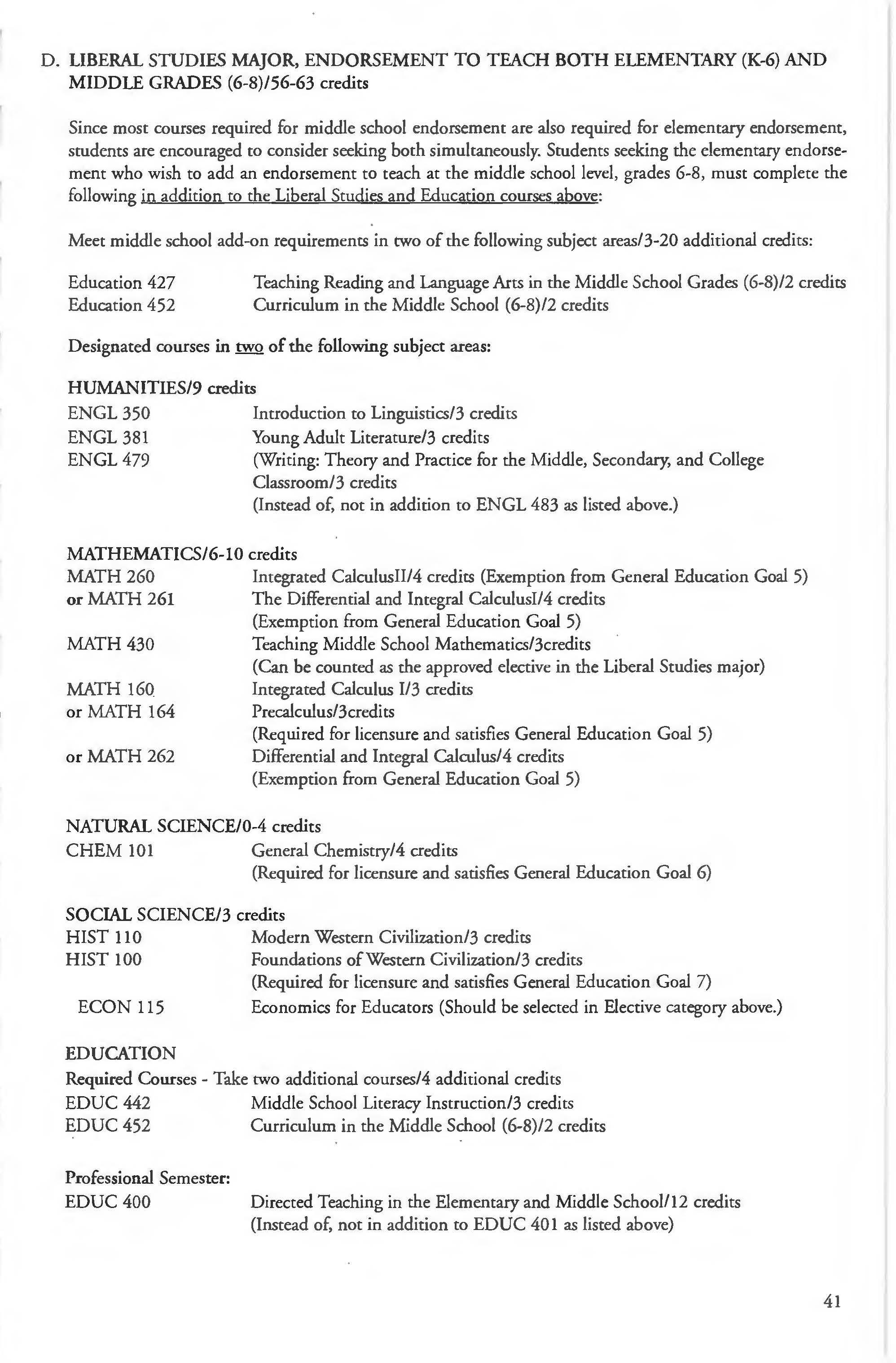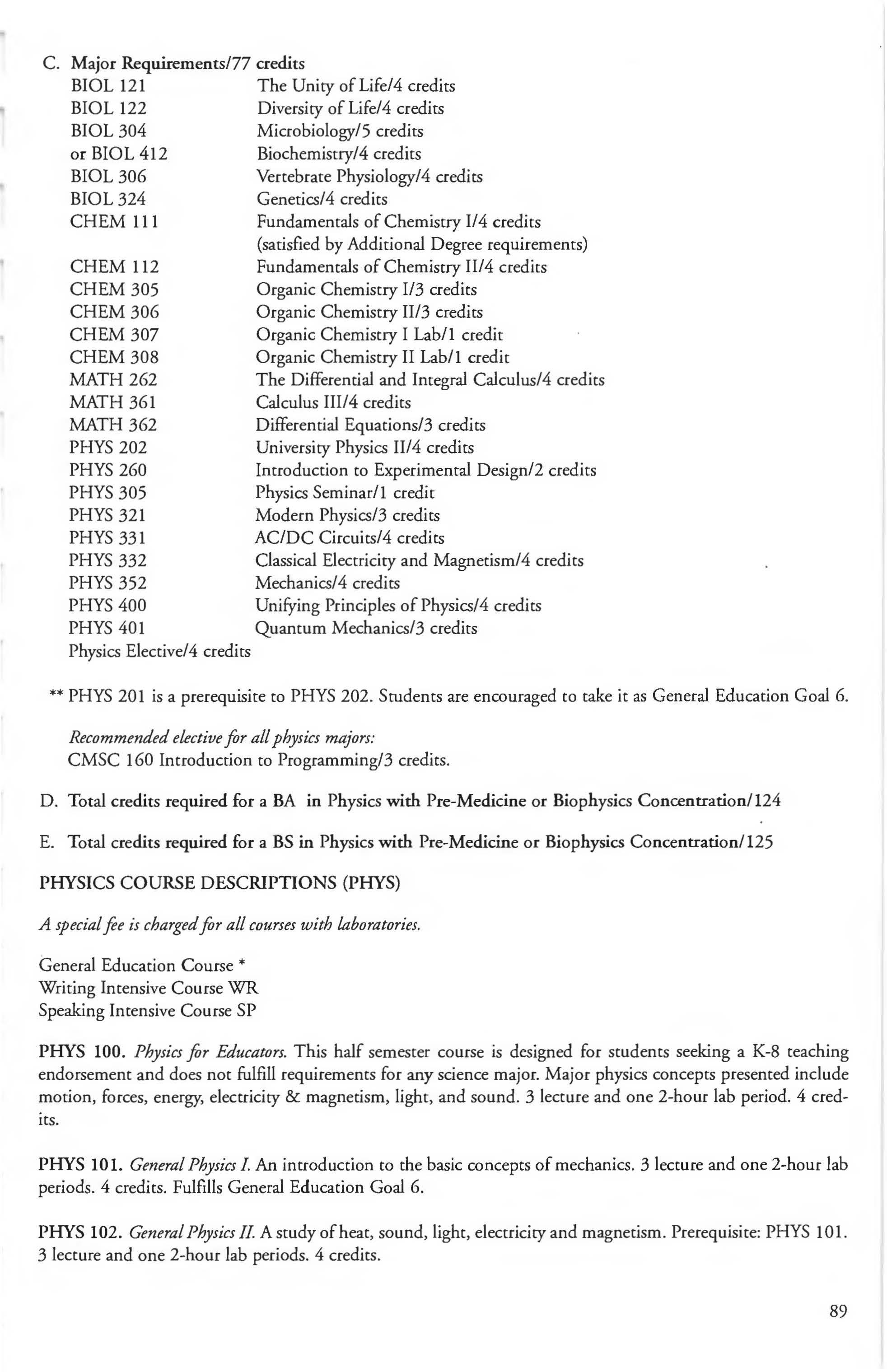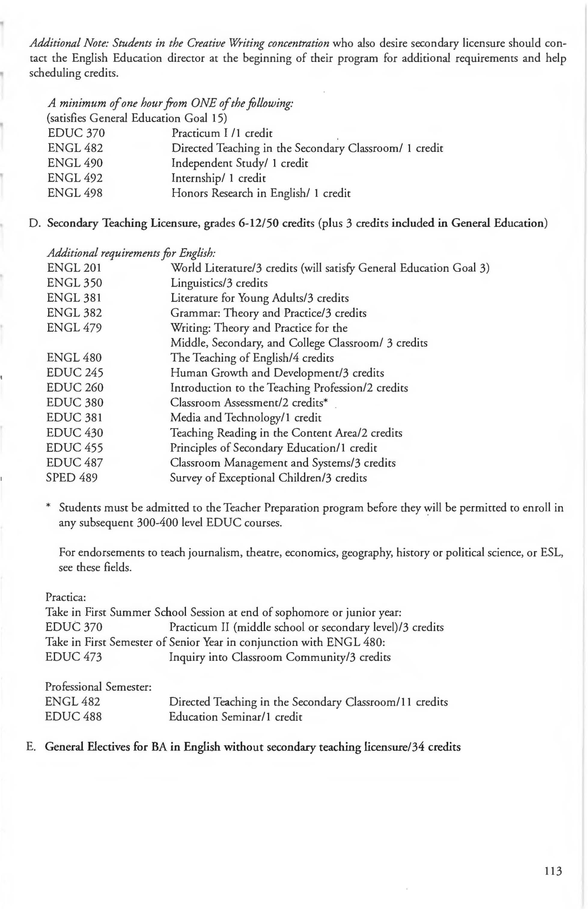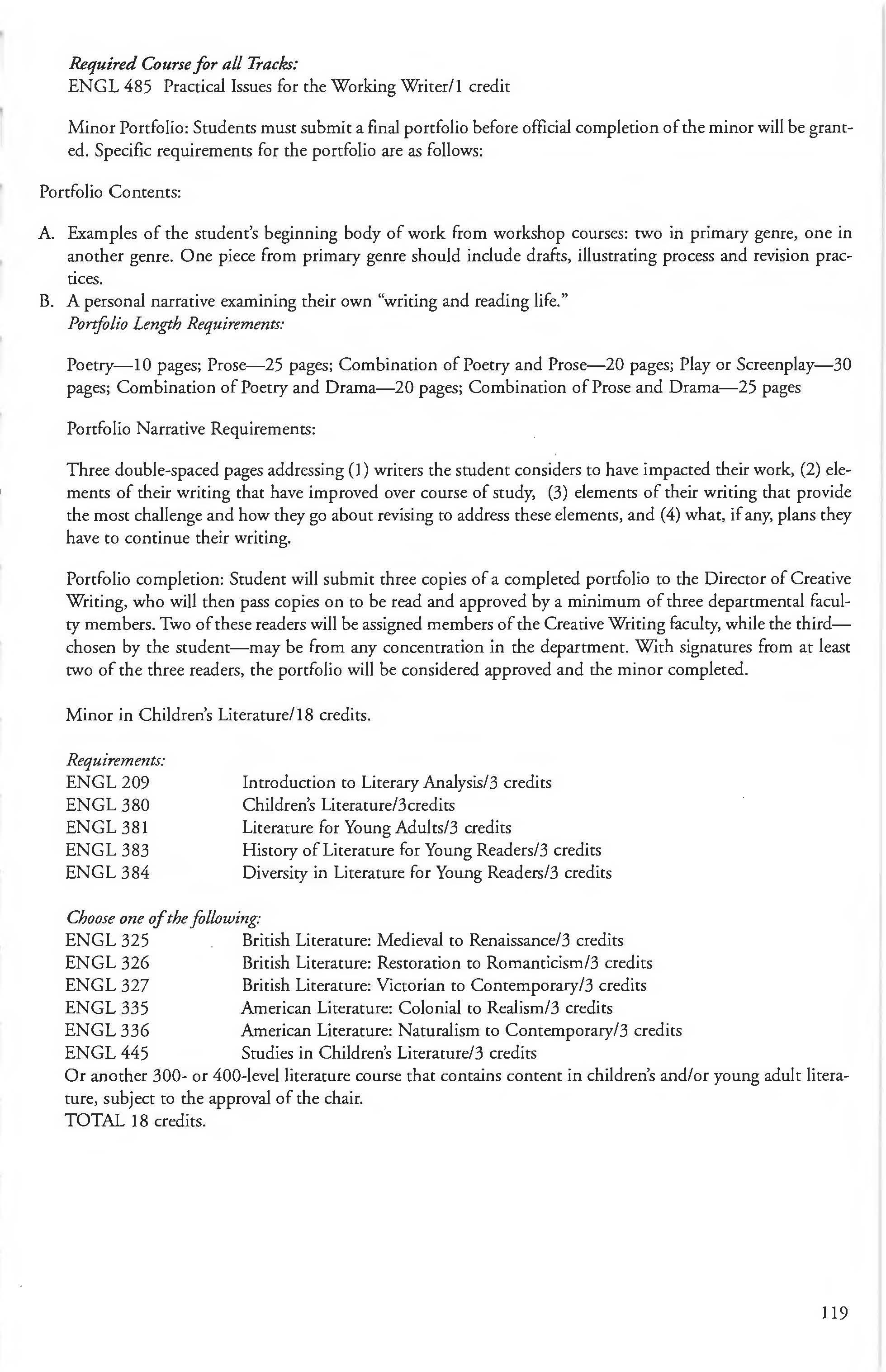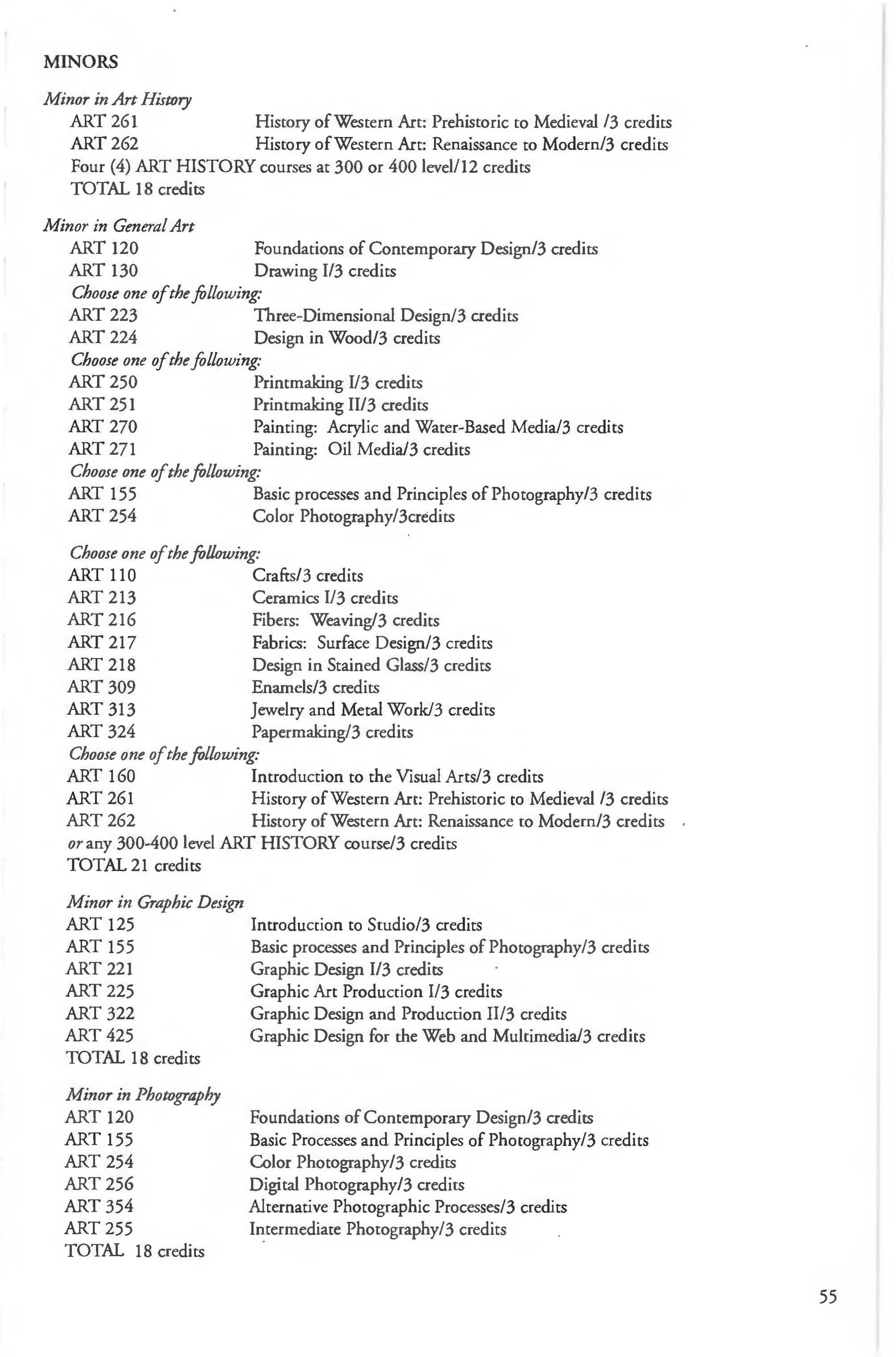 Chemistry Minor 83 English Courses 120-126 Class Attendance ................ . . . . . . . .6- 7