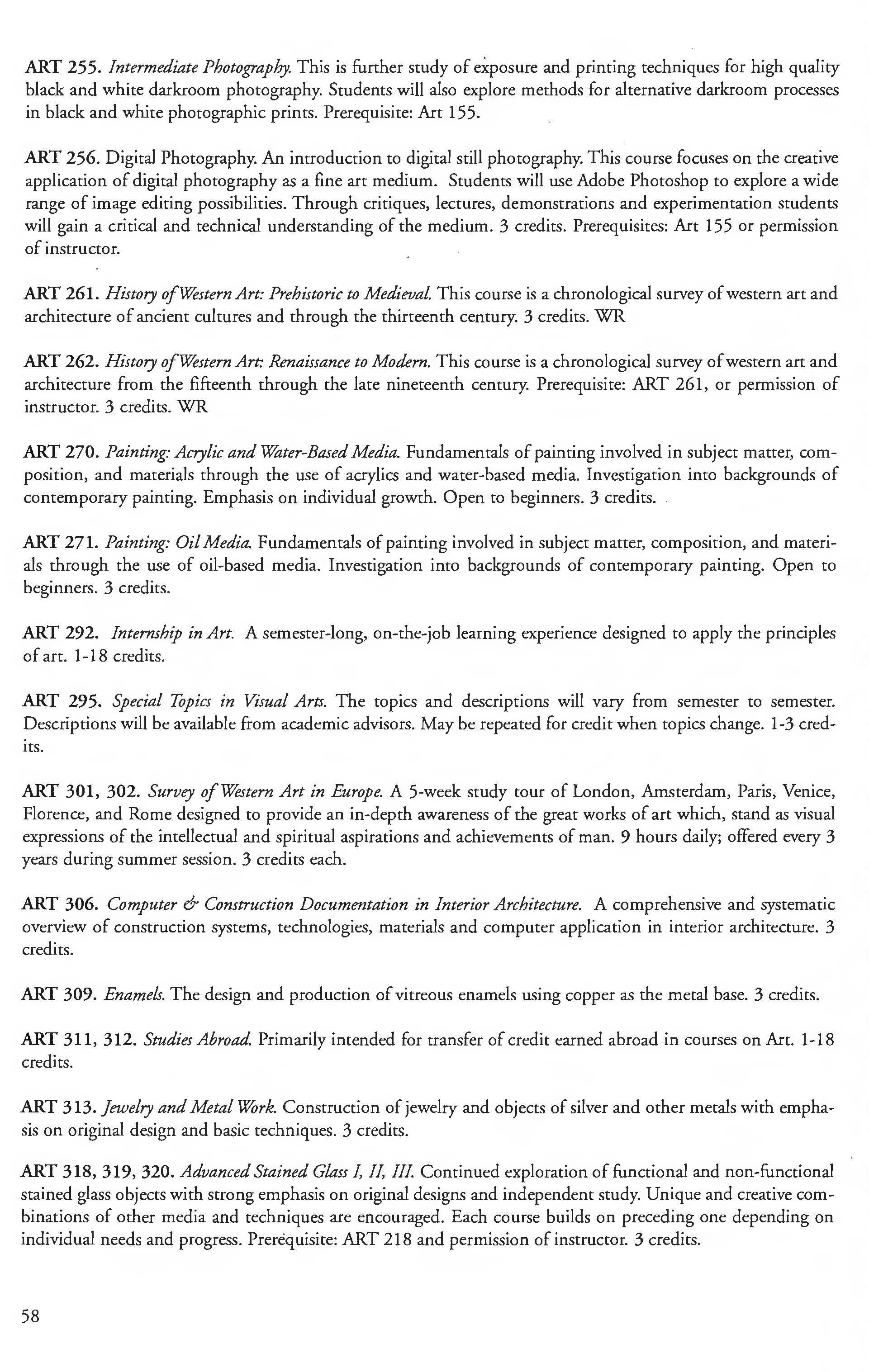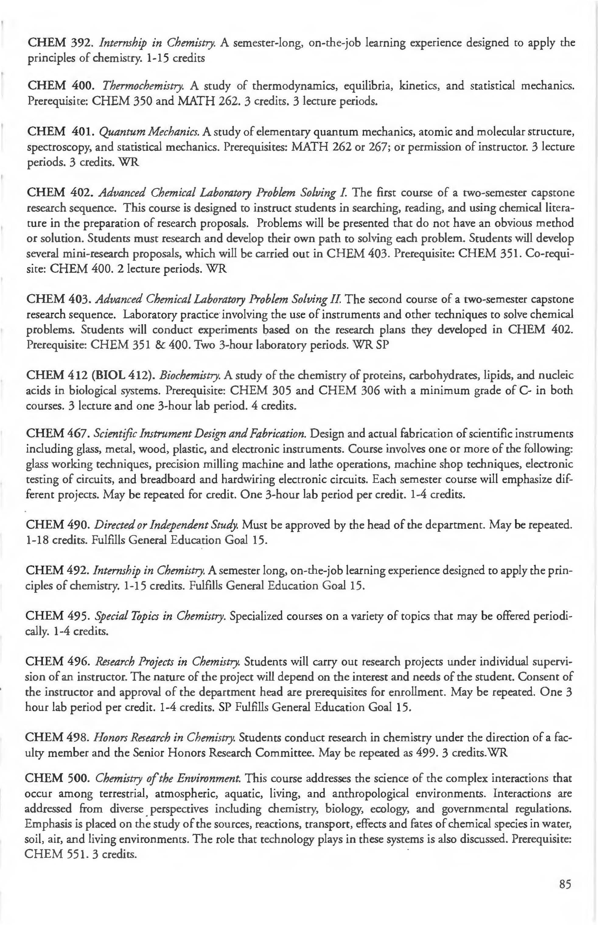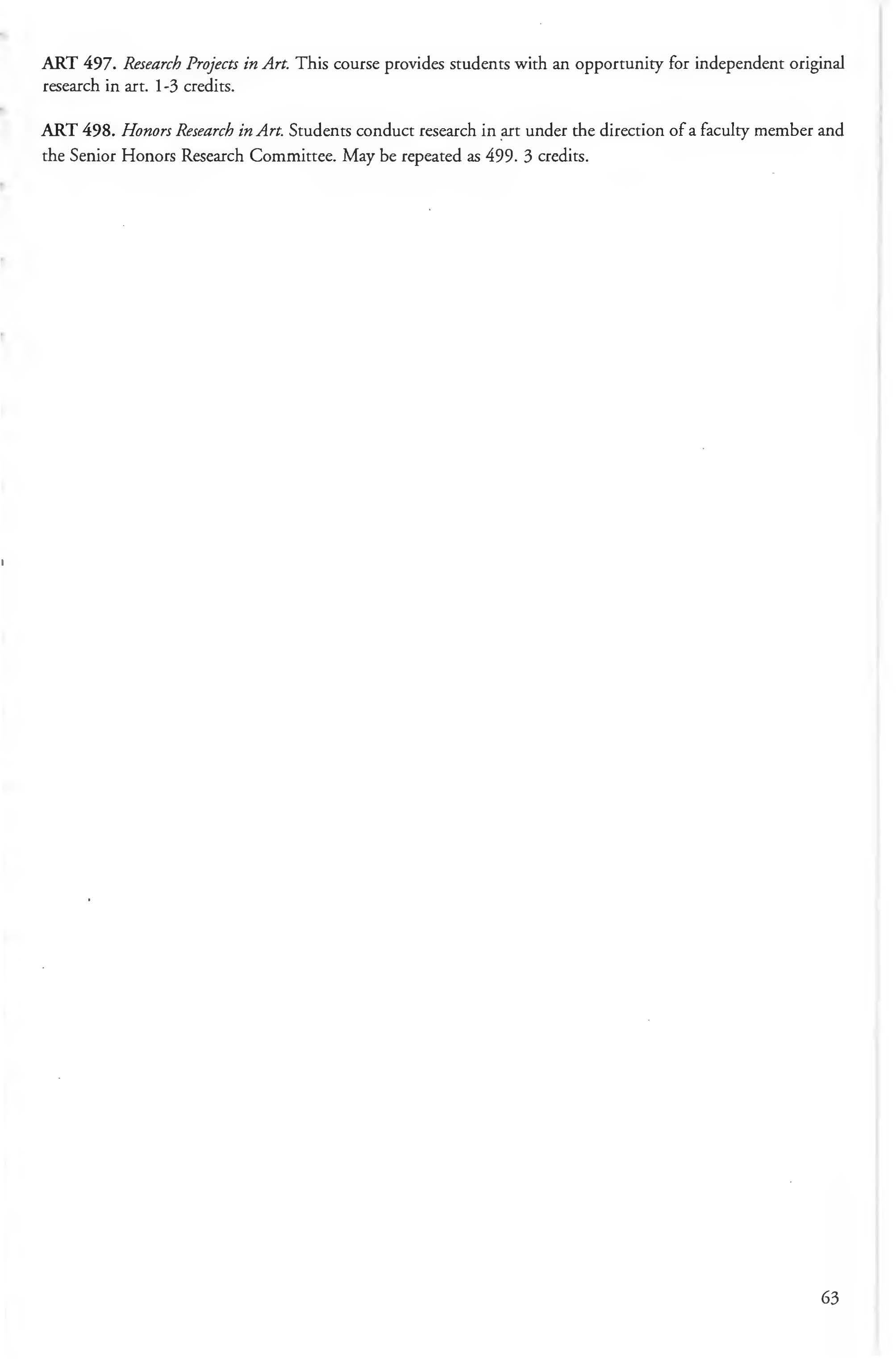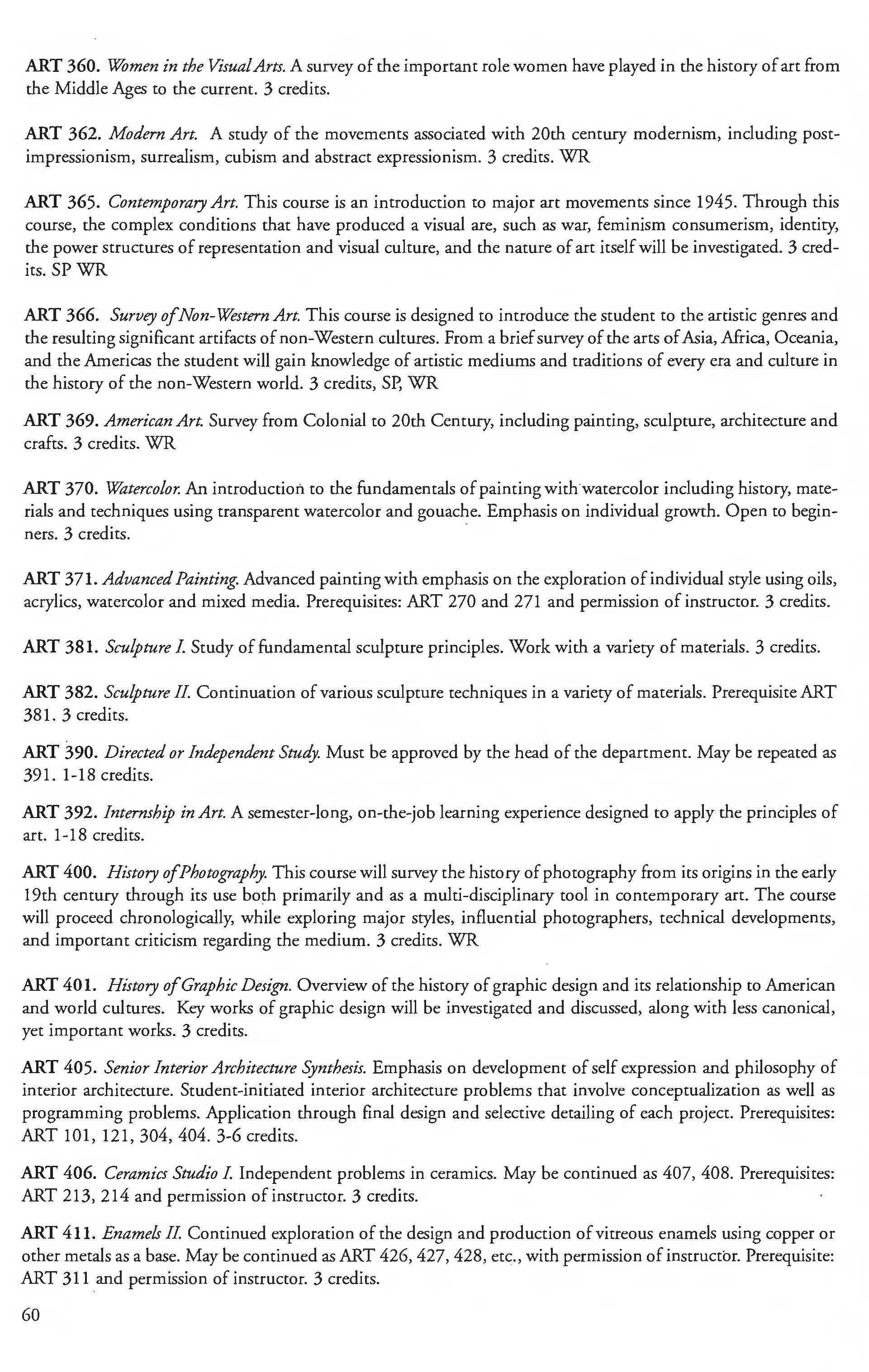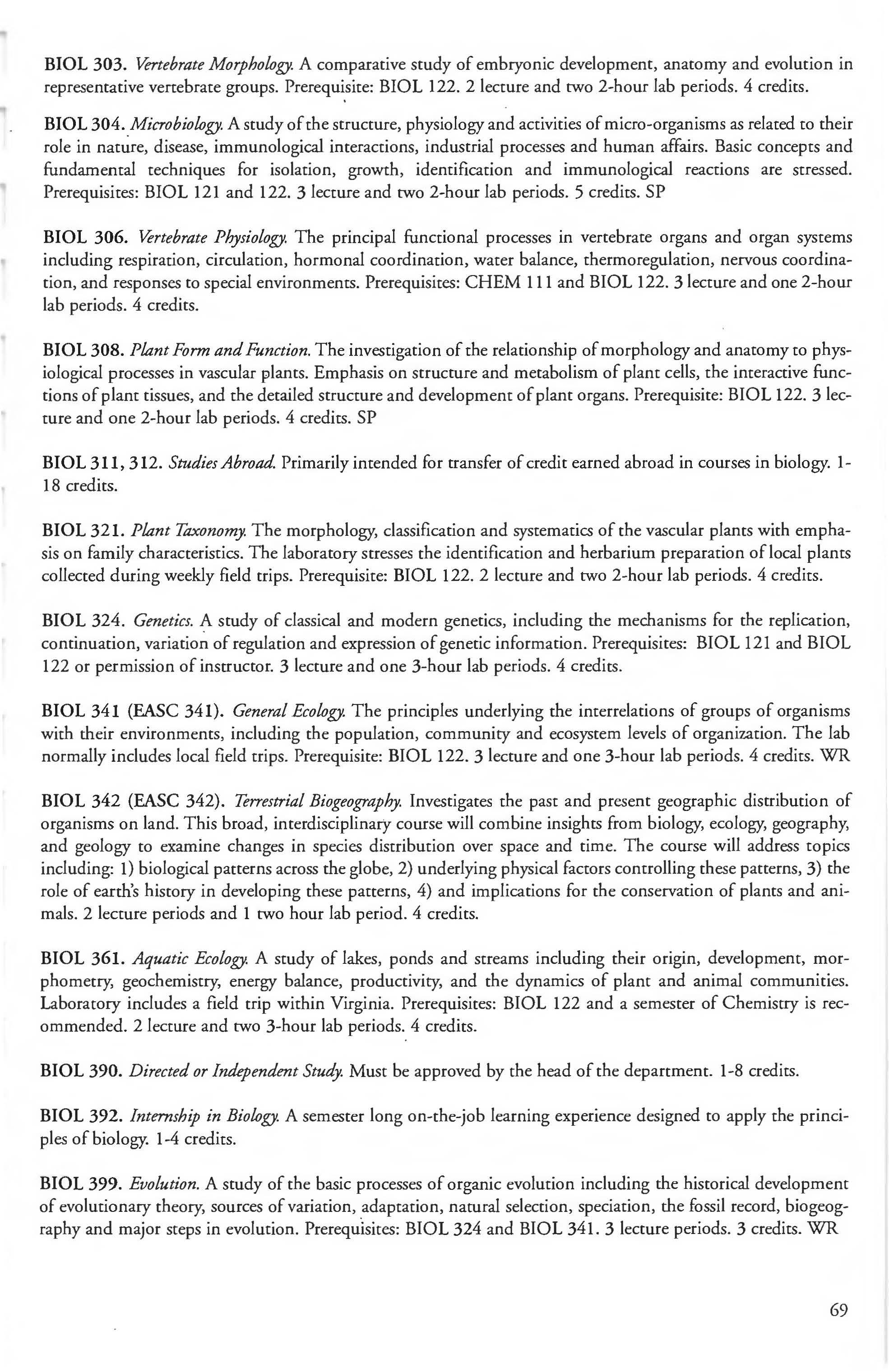 Other courses offered: Internships (1-18 credits) 292, 392, 492; Directed or Independent Study (1-18 credits) 390, 391, 490; Seminar 461; Honors Research- 498, 499; Special Topics (1-6 credits) 295, 495, 595; Study Abroad (1-18) 311, 312.