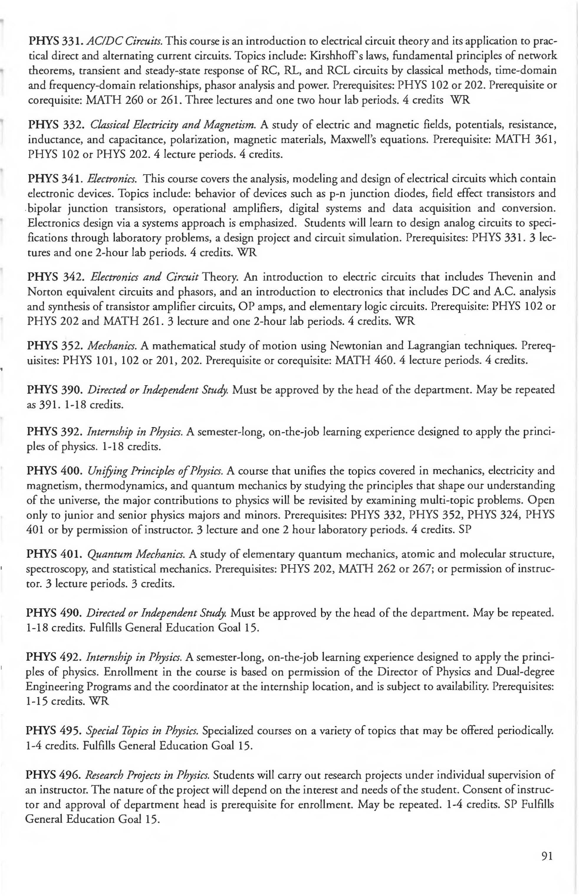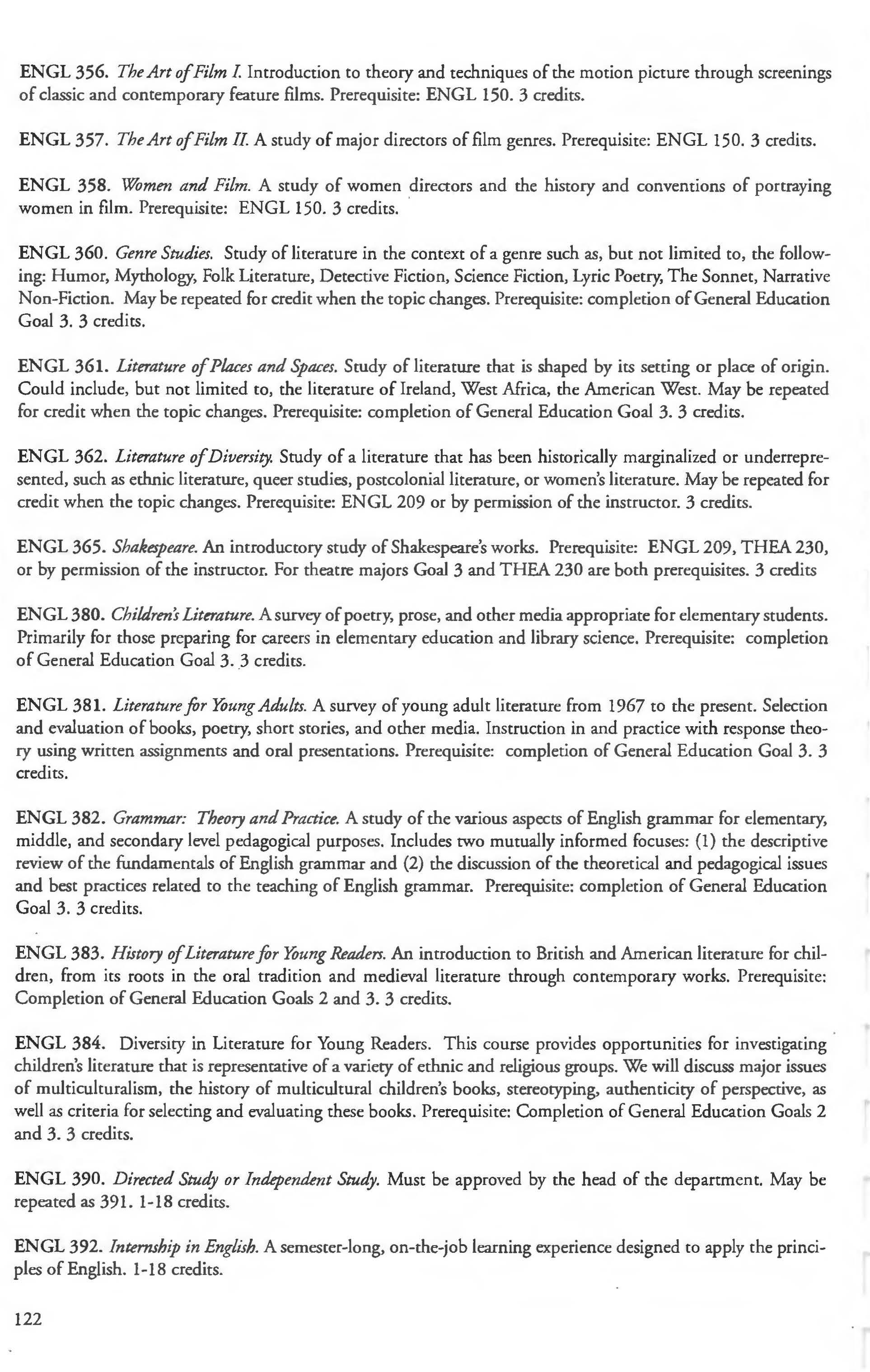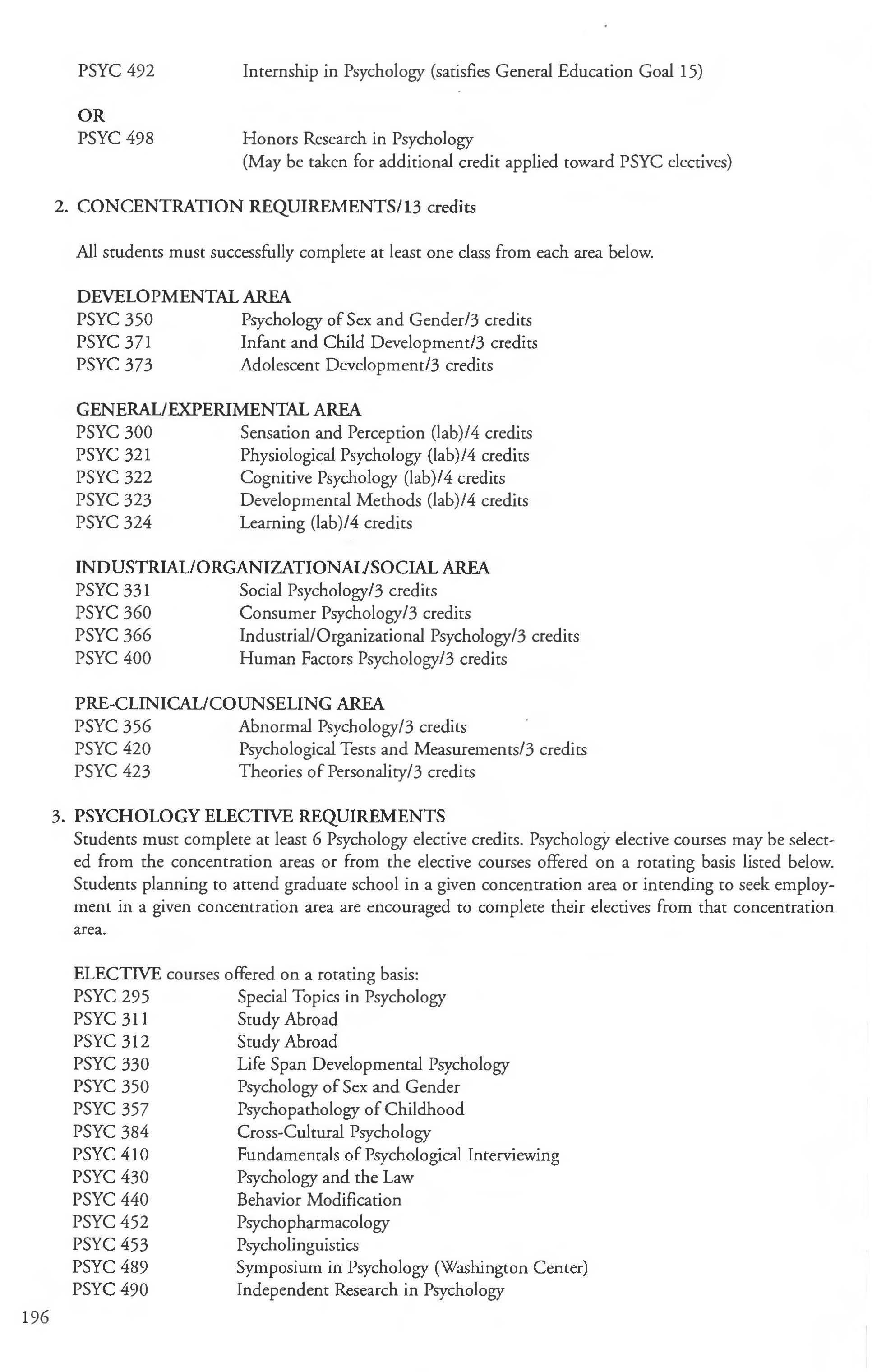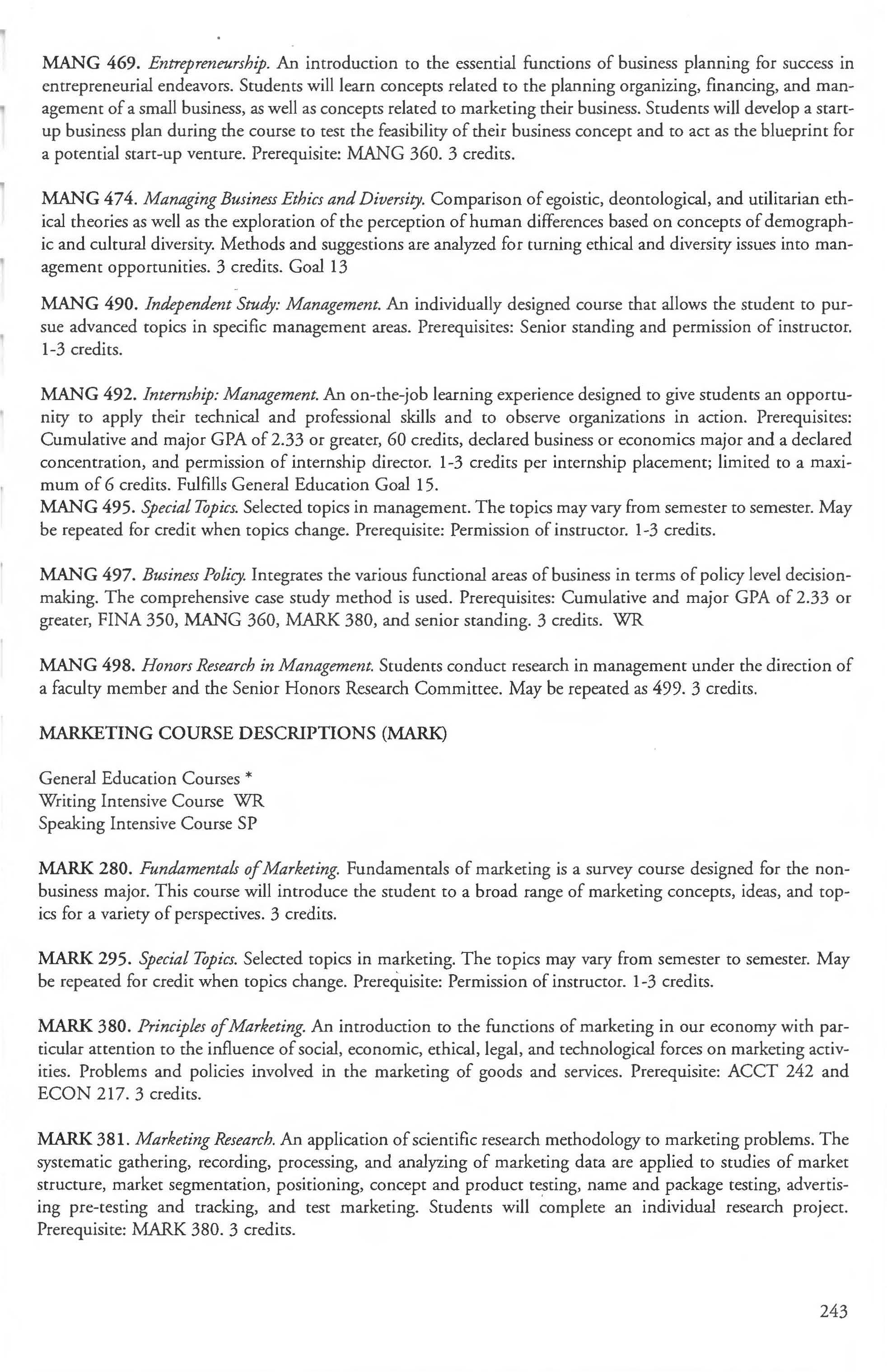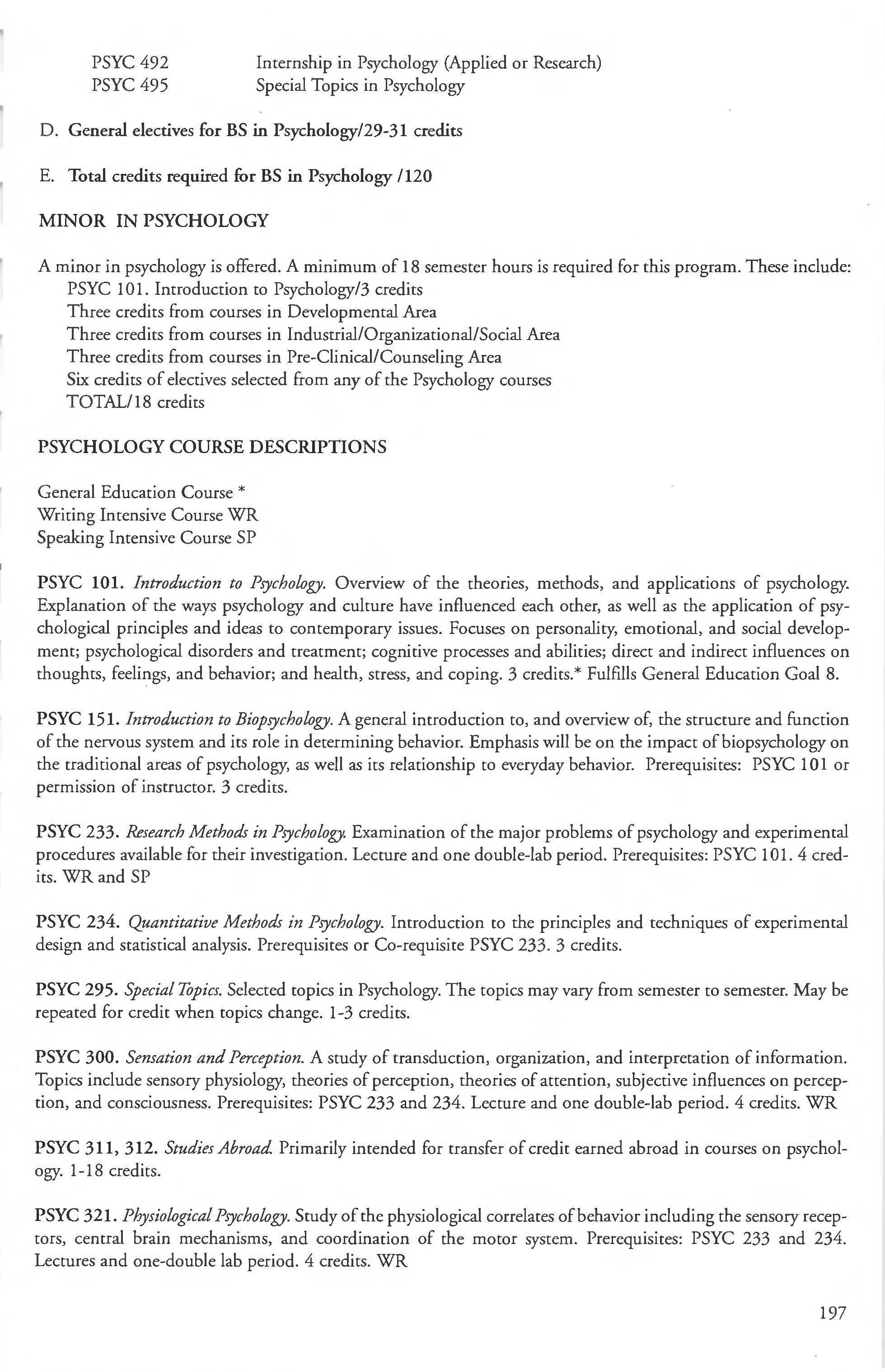 Other courses offered: Internships (1-18 credits) 292, 392, 492; Directed or Independent Study (1-18 credits) 390, 391, 490; Seminar 461; Honors Research- 498, 499; Special Topics (1-6 credits) 295, 495, 595; Study Abroad (1-18) 311, 312.