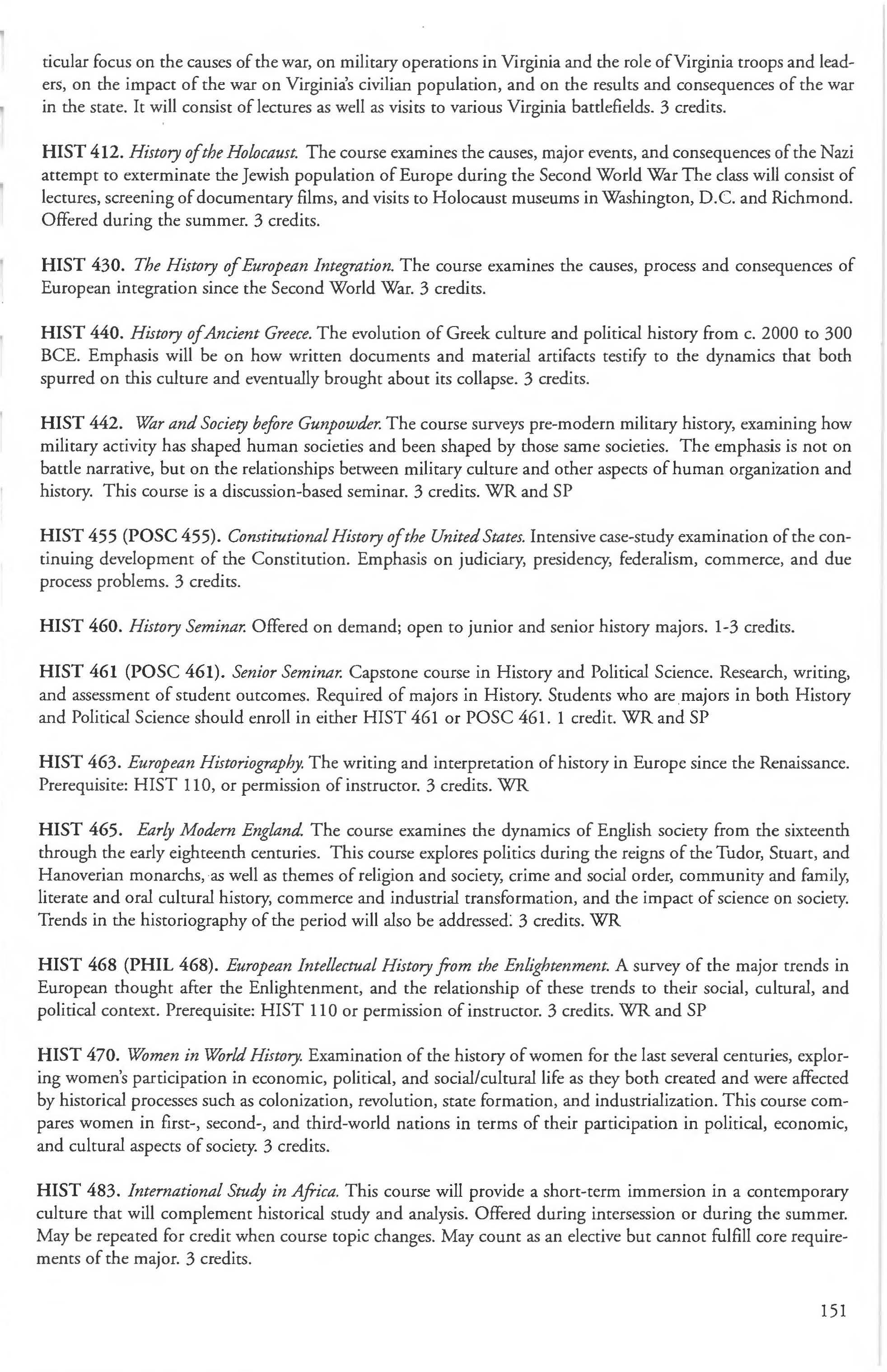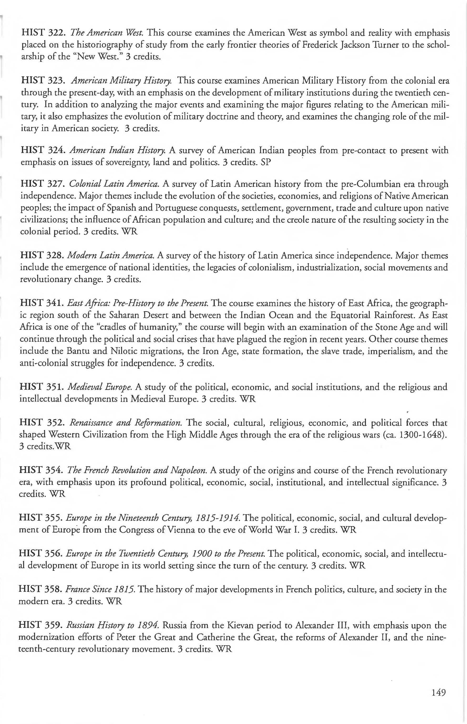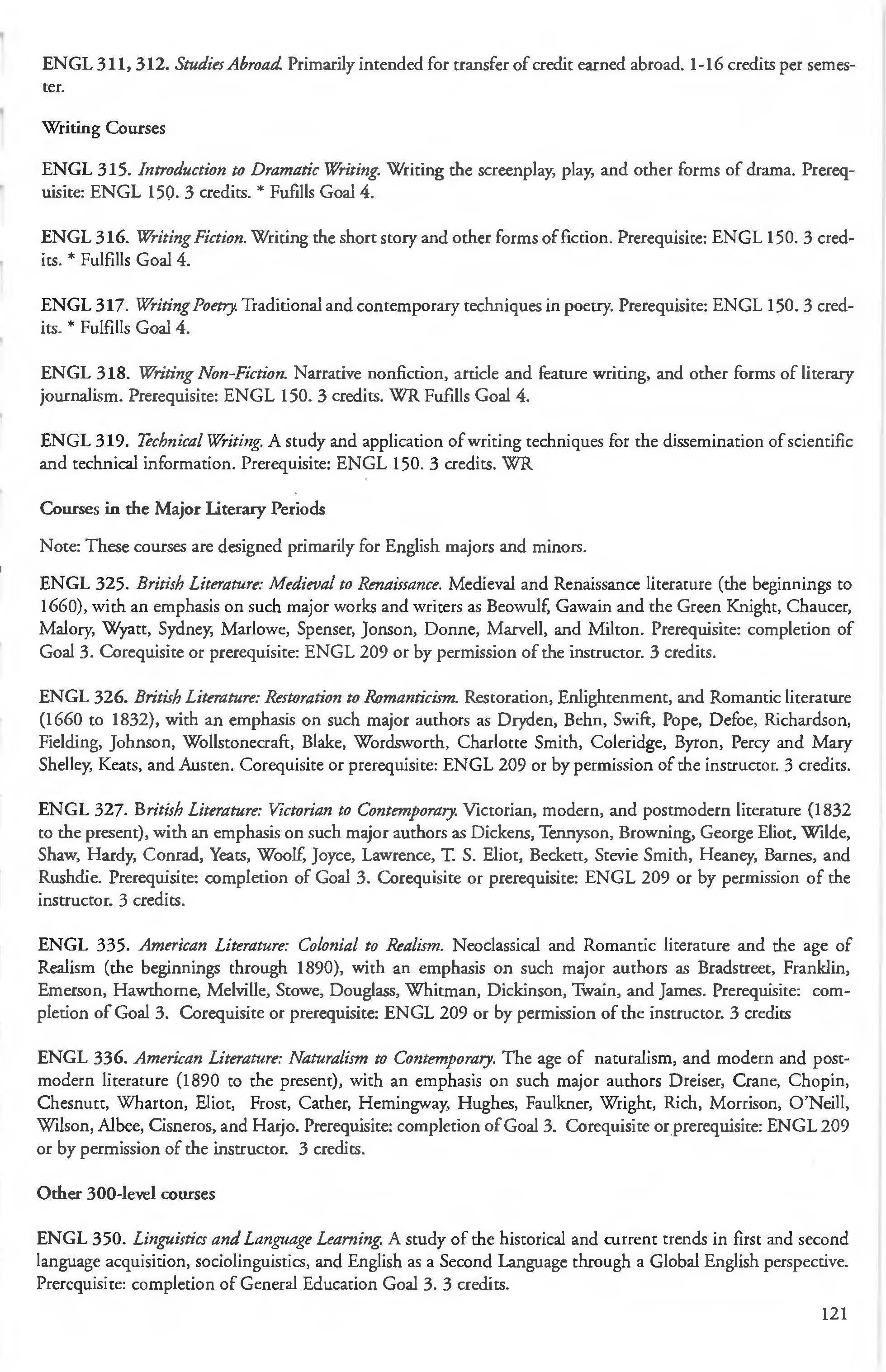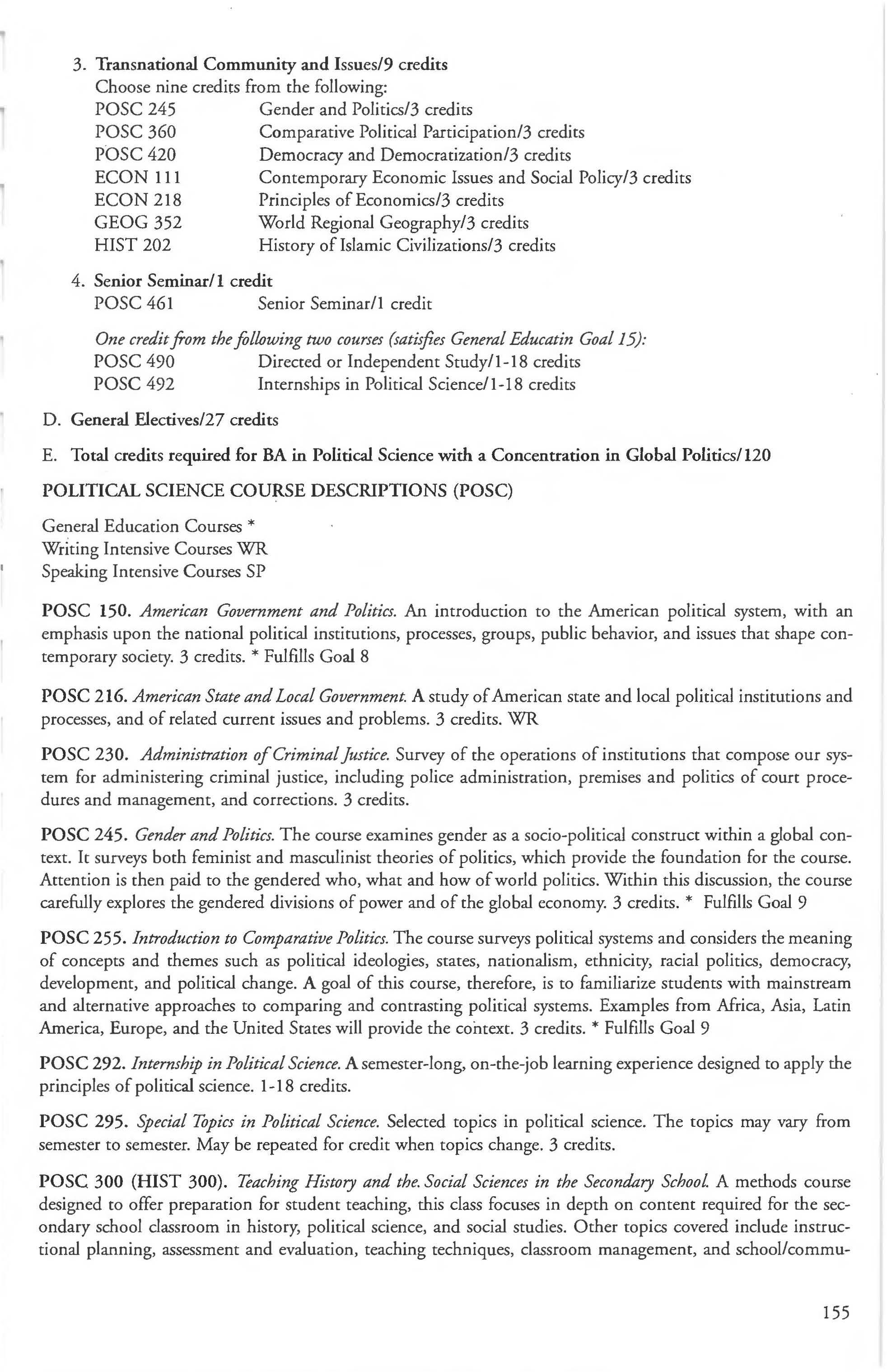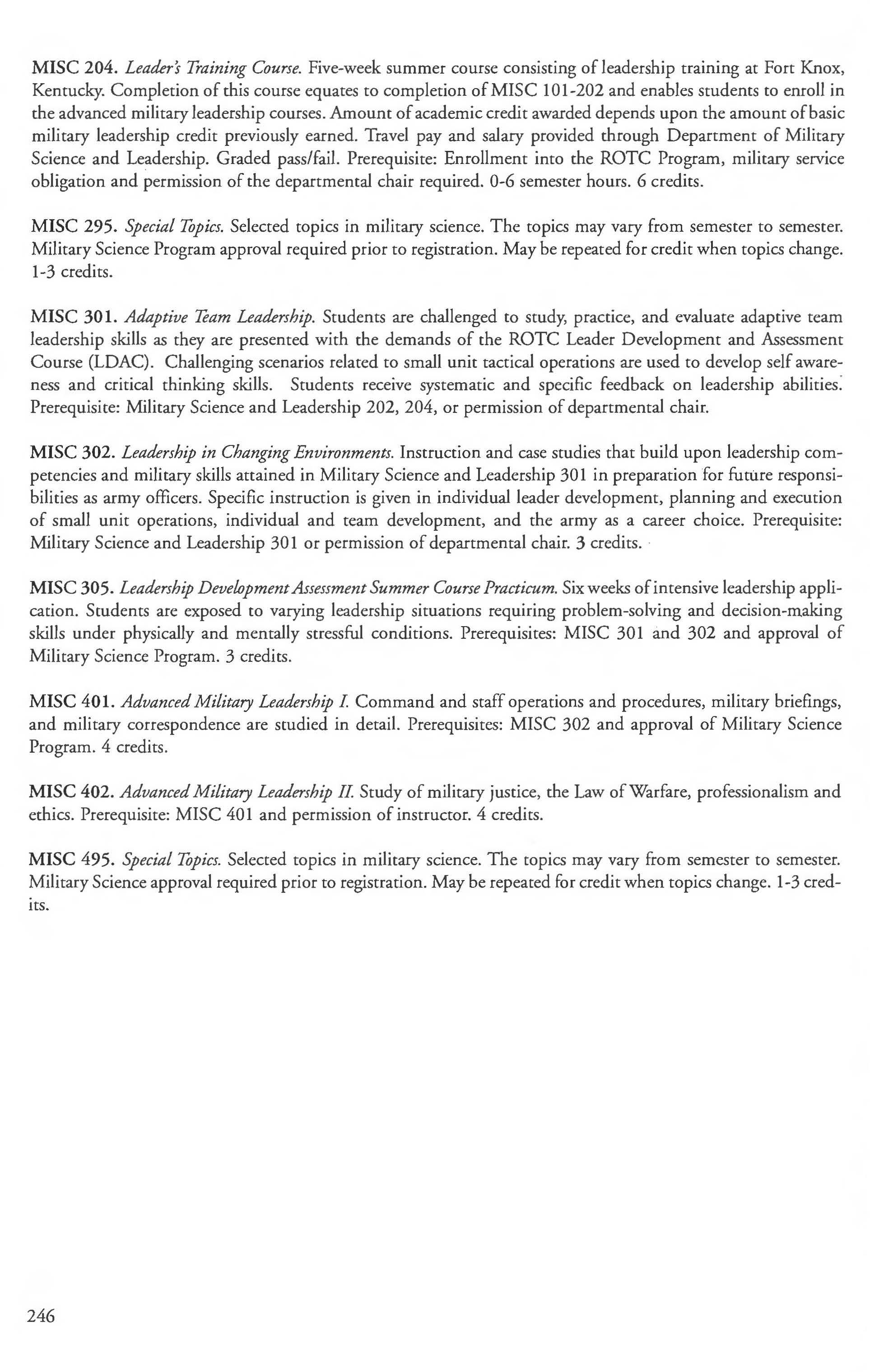 Other courses offered: Internships (1-18 credits) 292, 392, 492; Directed or Independent Study (1-18 credits) 390, 391, 490; Seminar 461; Honors Research- 498, 499; Special Topics (1-6 credits) 295, 495, 595; Study Abroad (1-18) 311, 312.