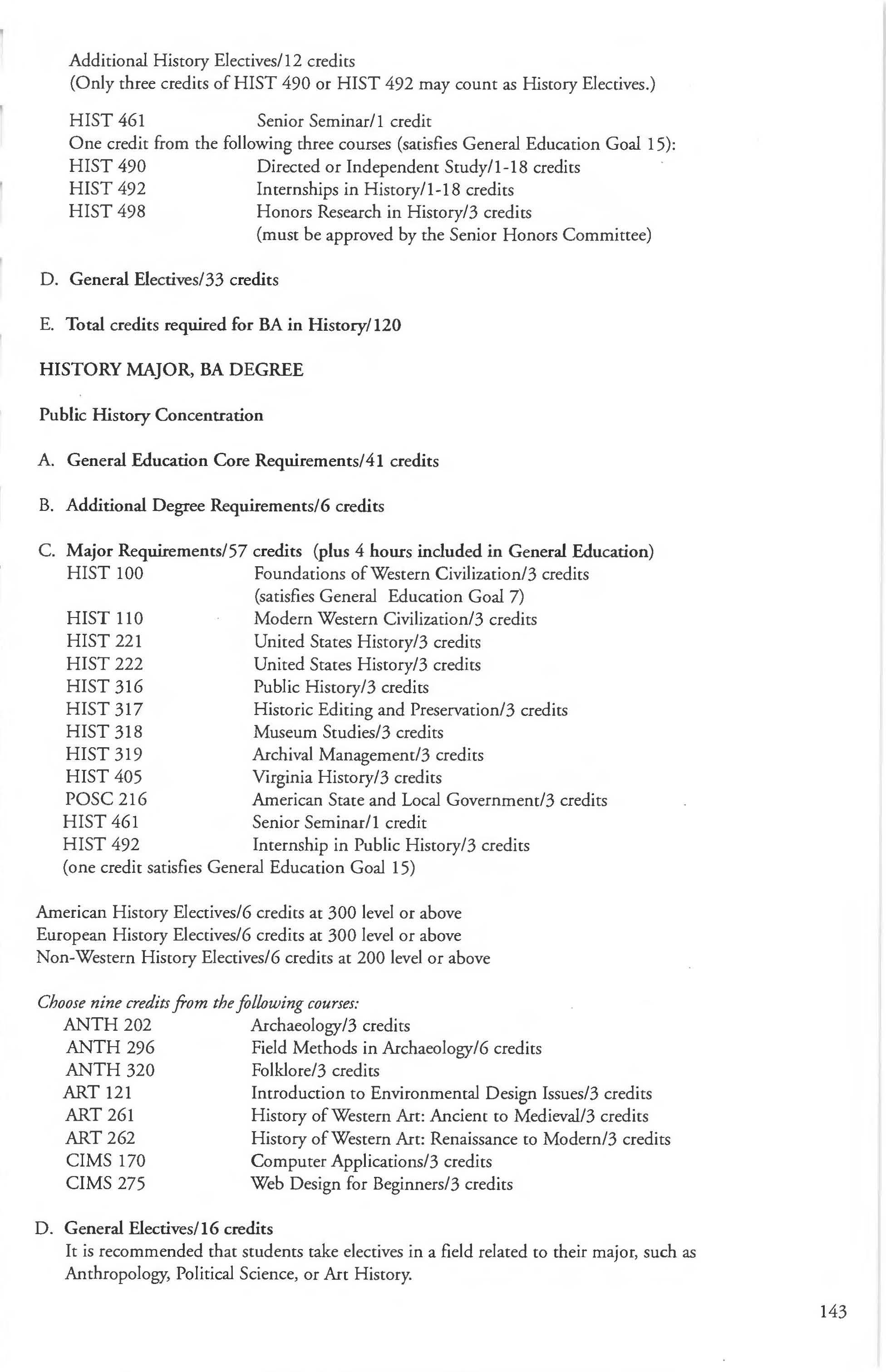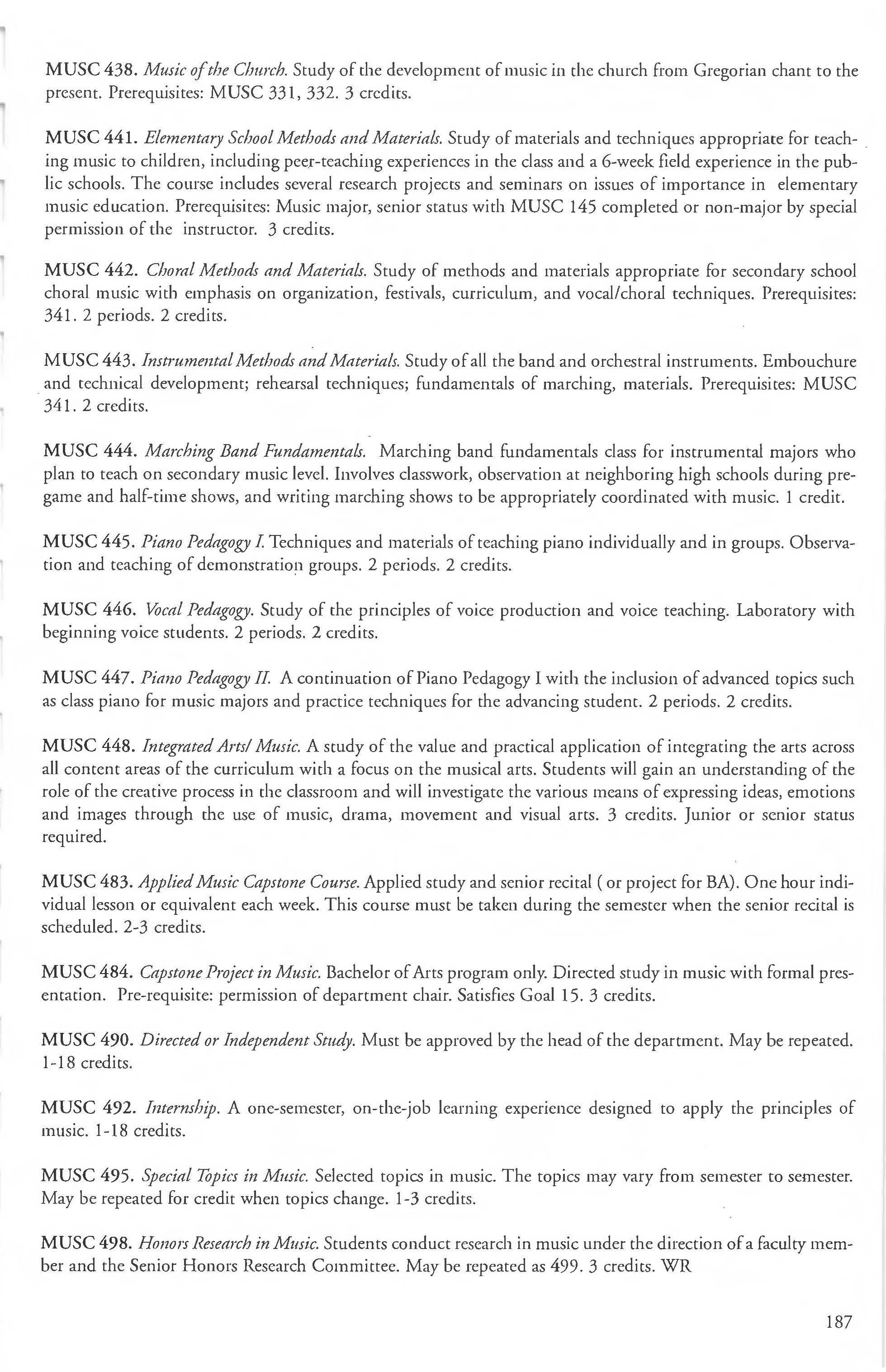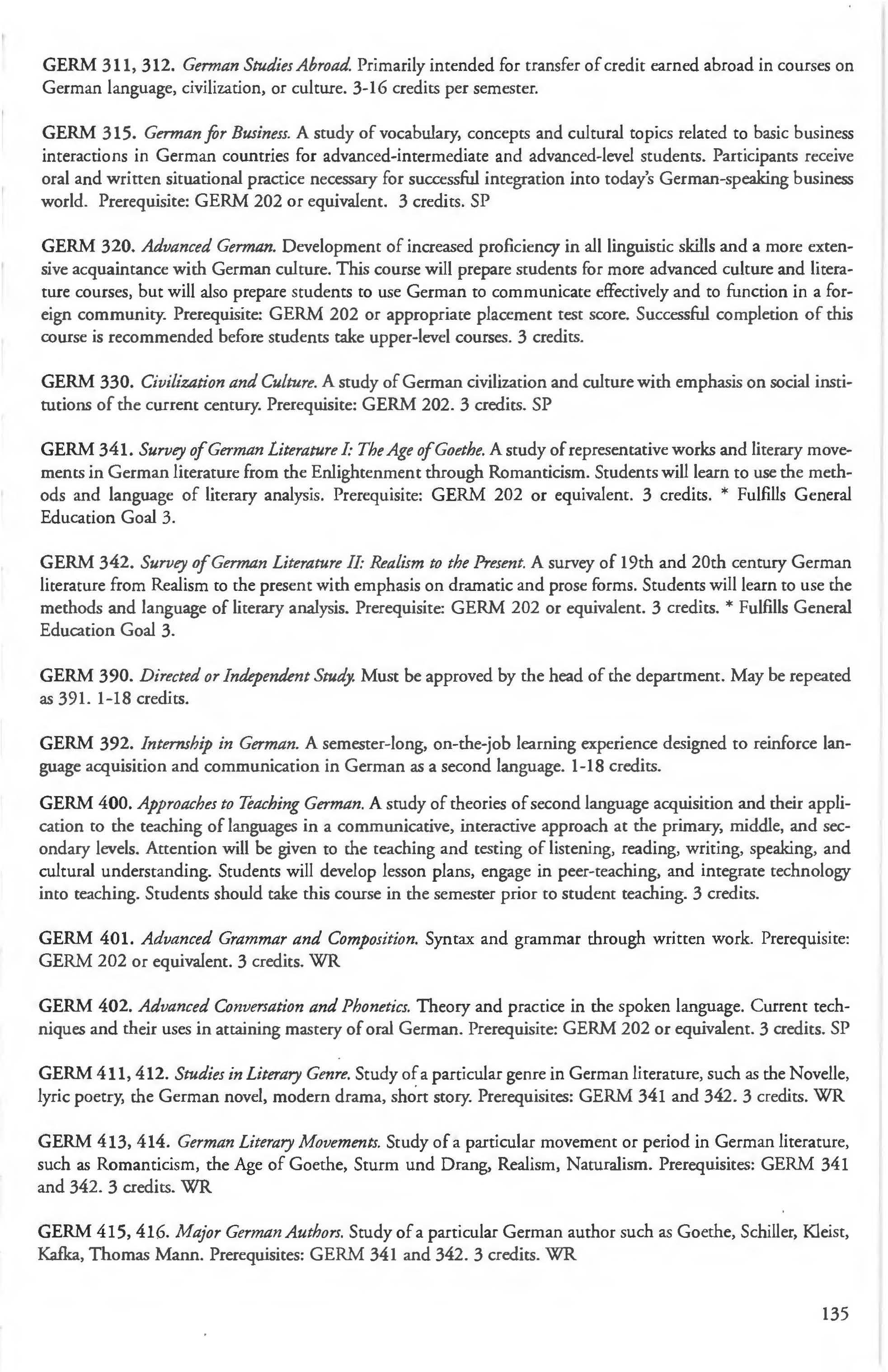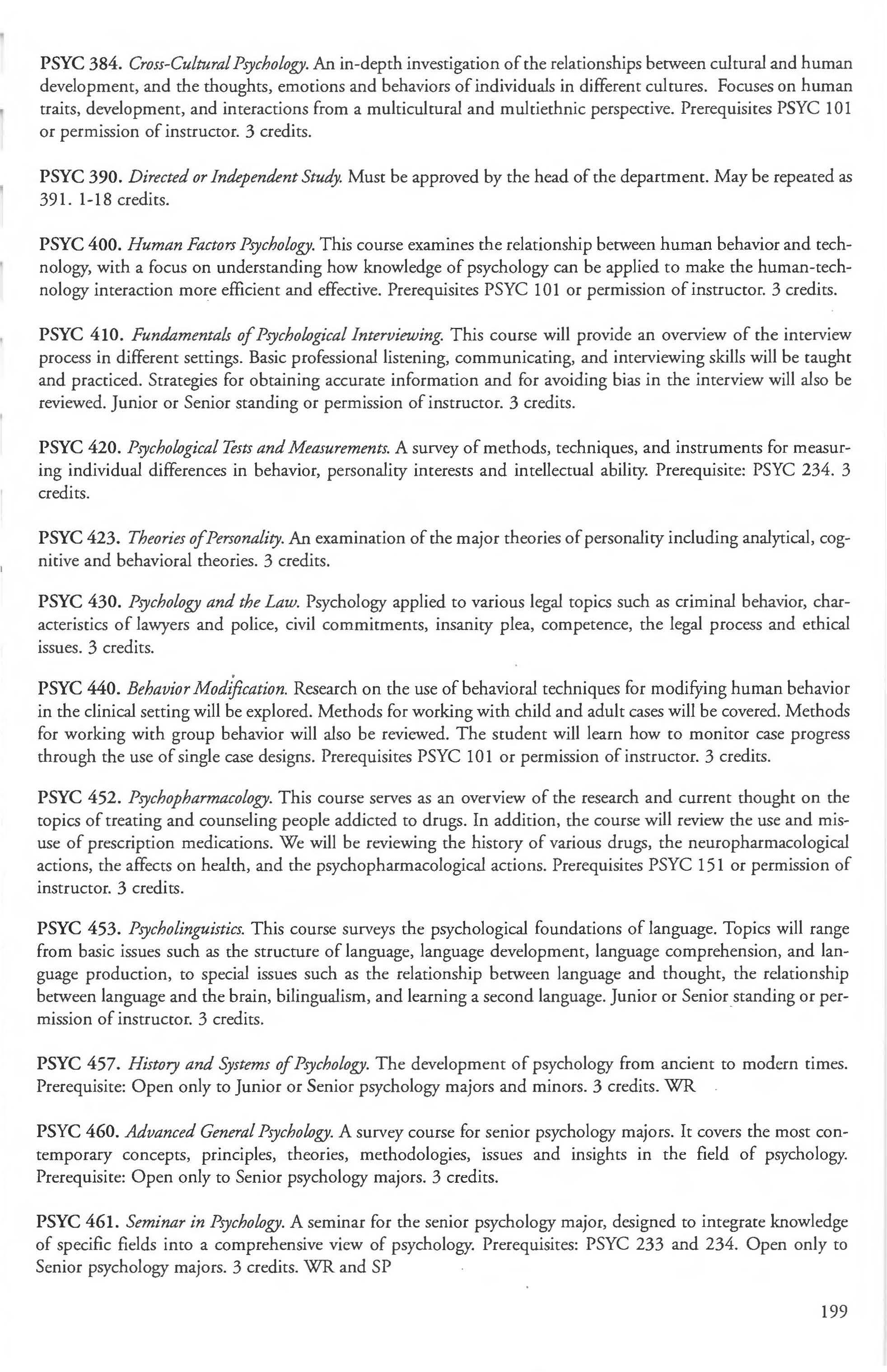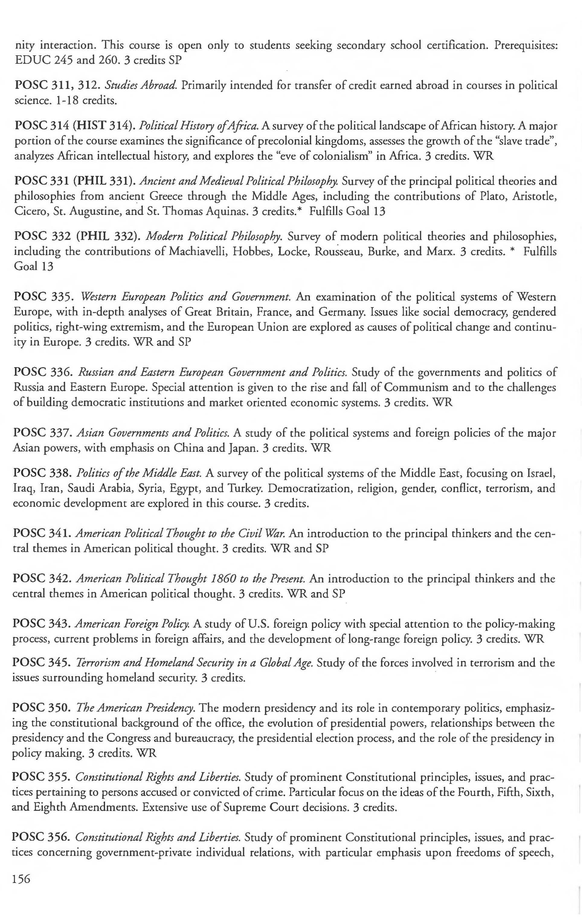Other courses offered: Internships (1-18 credits) 292, 392, 492; Directed or Independent Study (1-18 credits) 390, 391, 490; Seminar 461; Honors Research- 498, 499; Special Topics (1-6 credits) 295, 495, 595; Study Abroad (1-18) 311, 312.