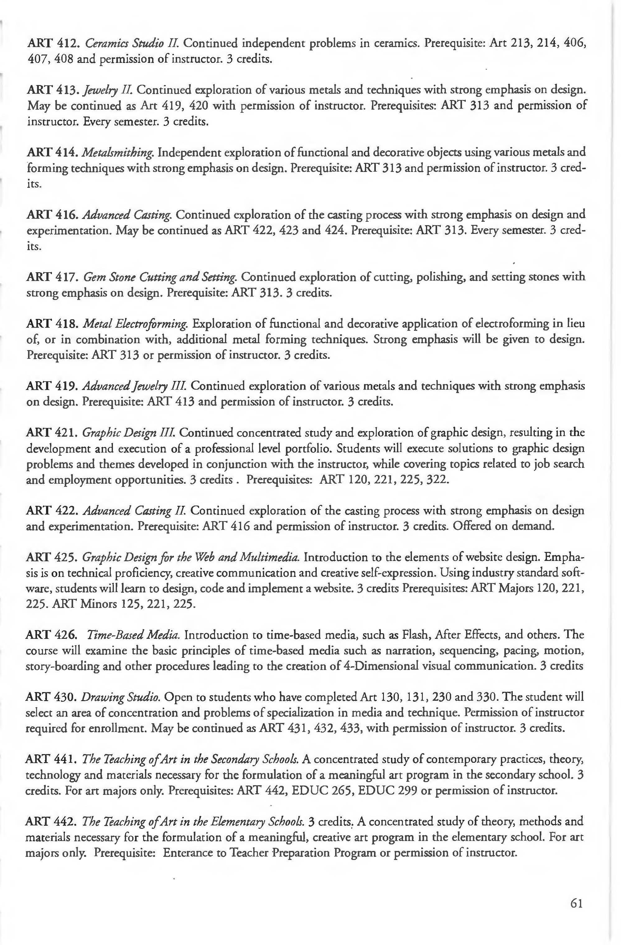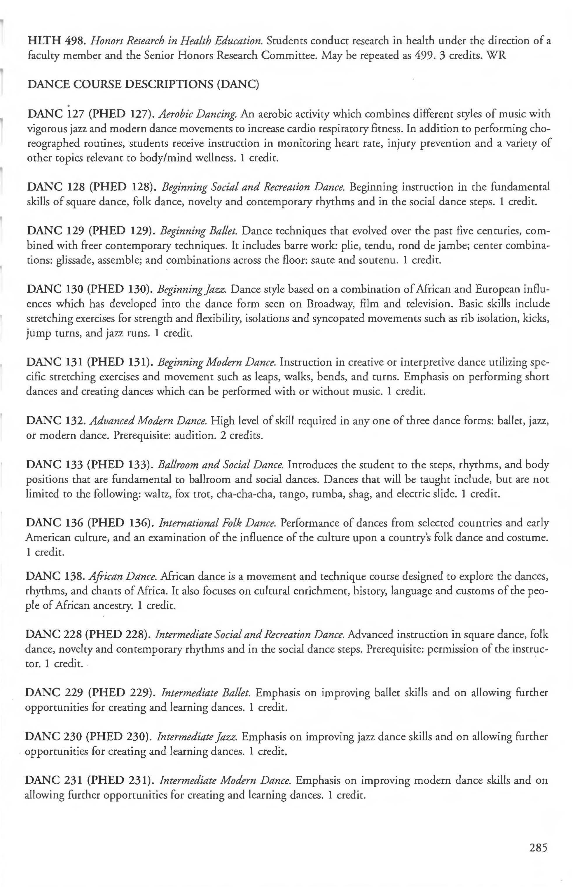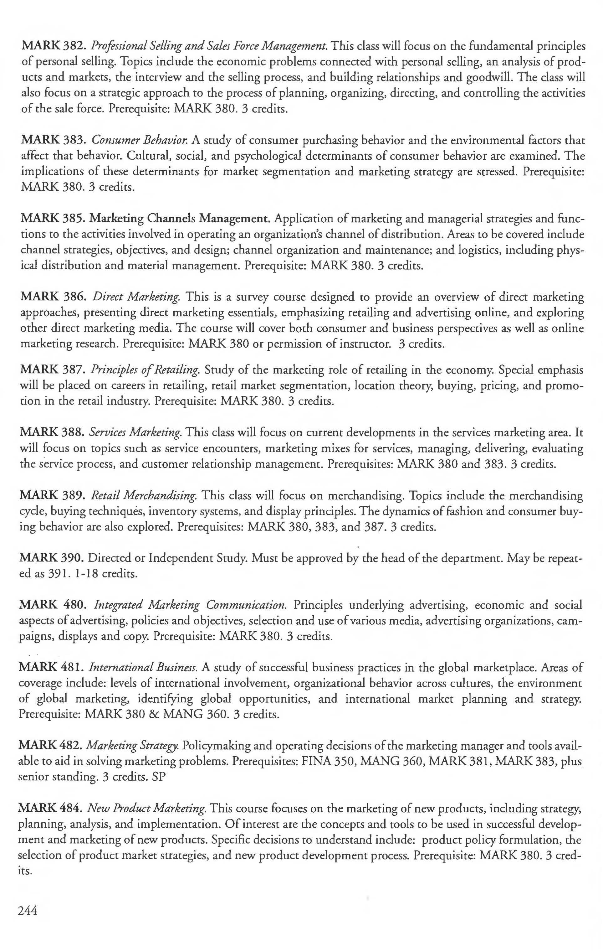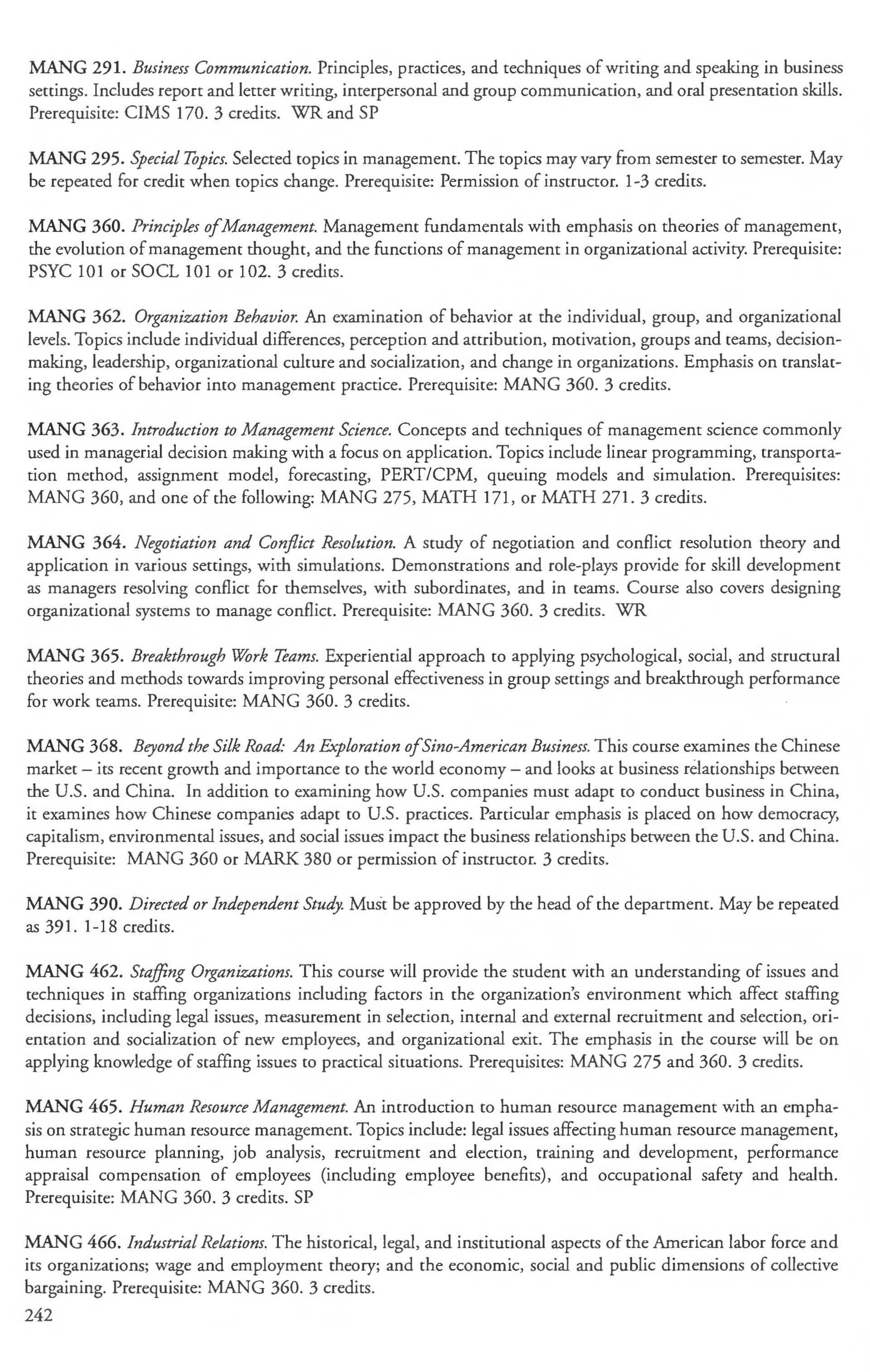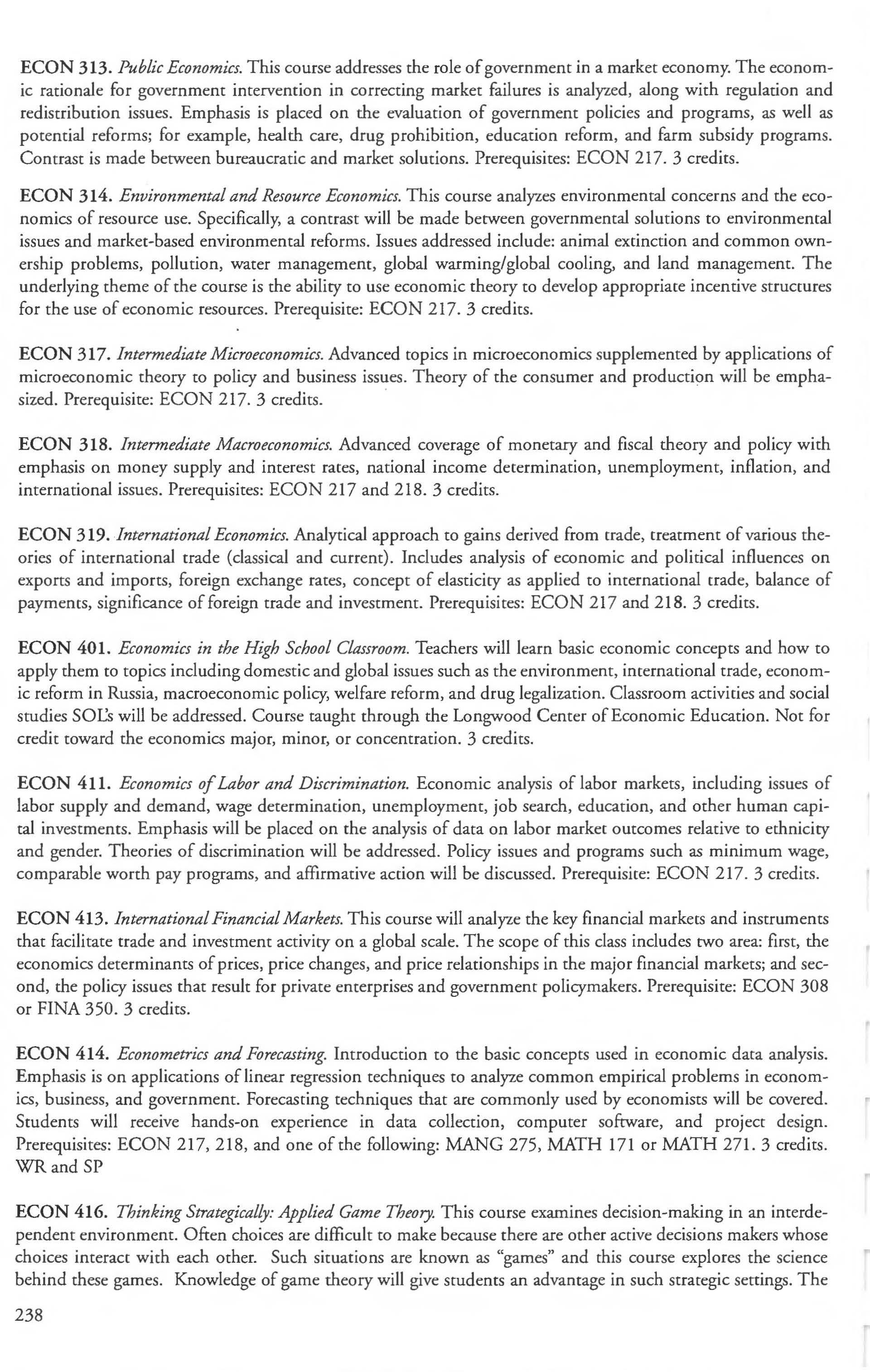 Other courses offered: Internships (1-18 credits) 292, 392, 492; Directed or Independent Study (1-18 credits) 390, 391, 490; Seminar 461; Honors Research- 498, 499; Special Topics (1-6 credits) 295, 495, 595; Study Abroad (1-18) 311, 312.