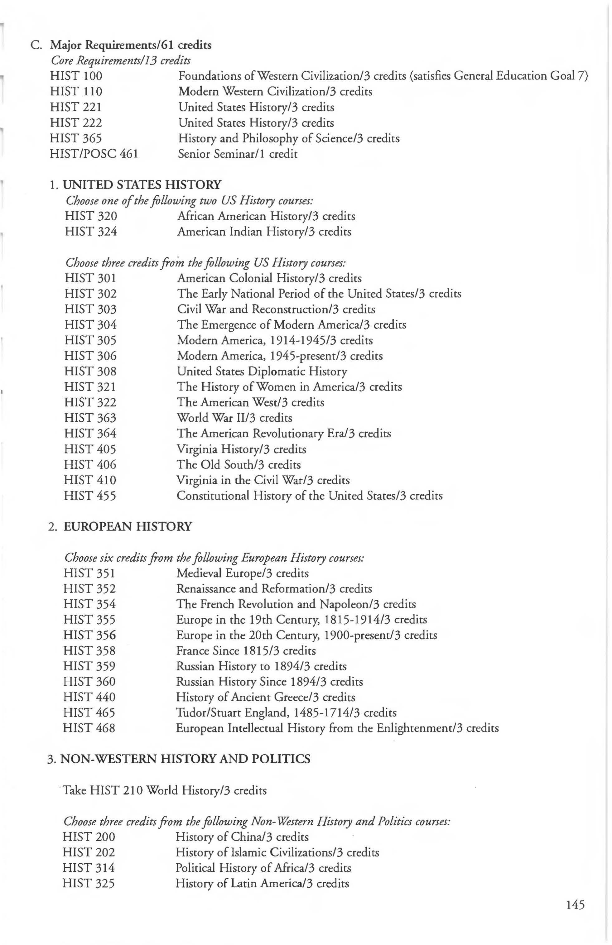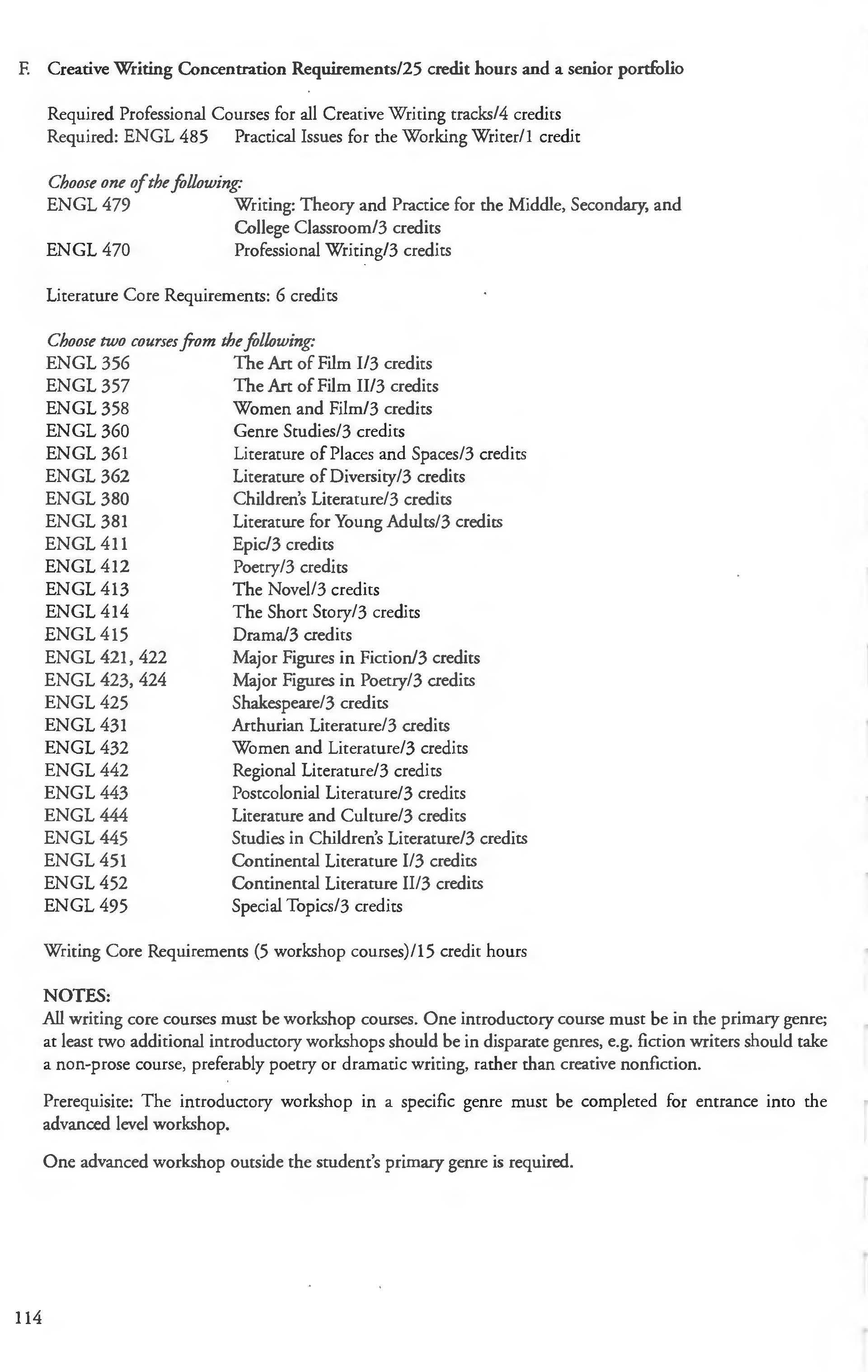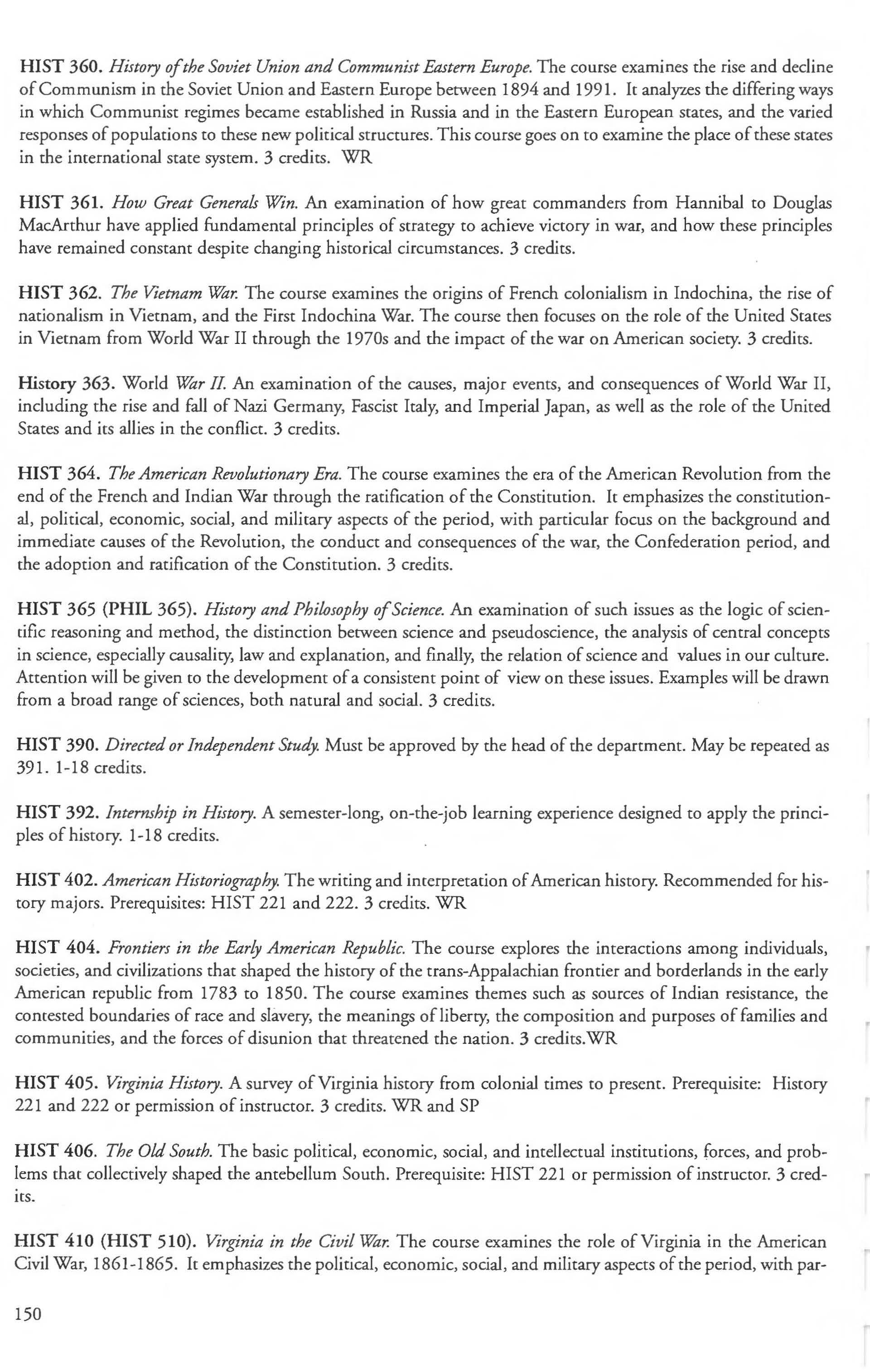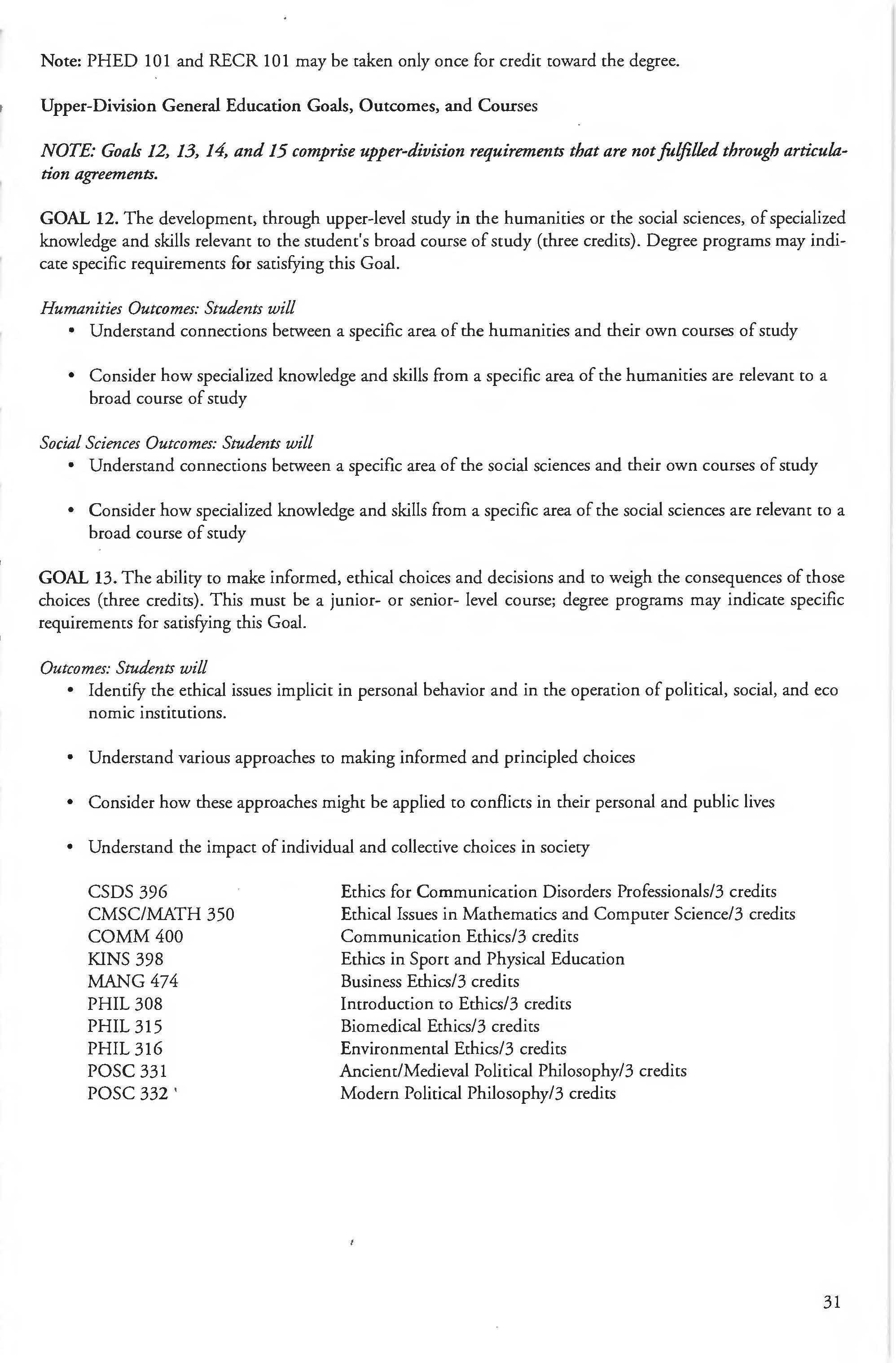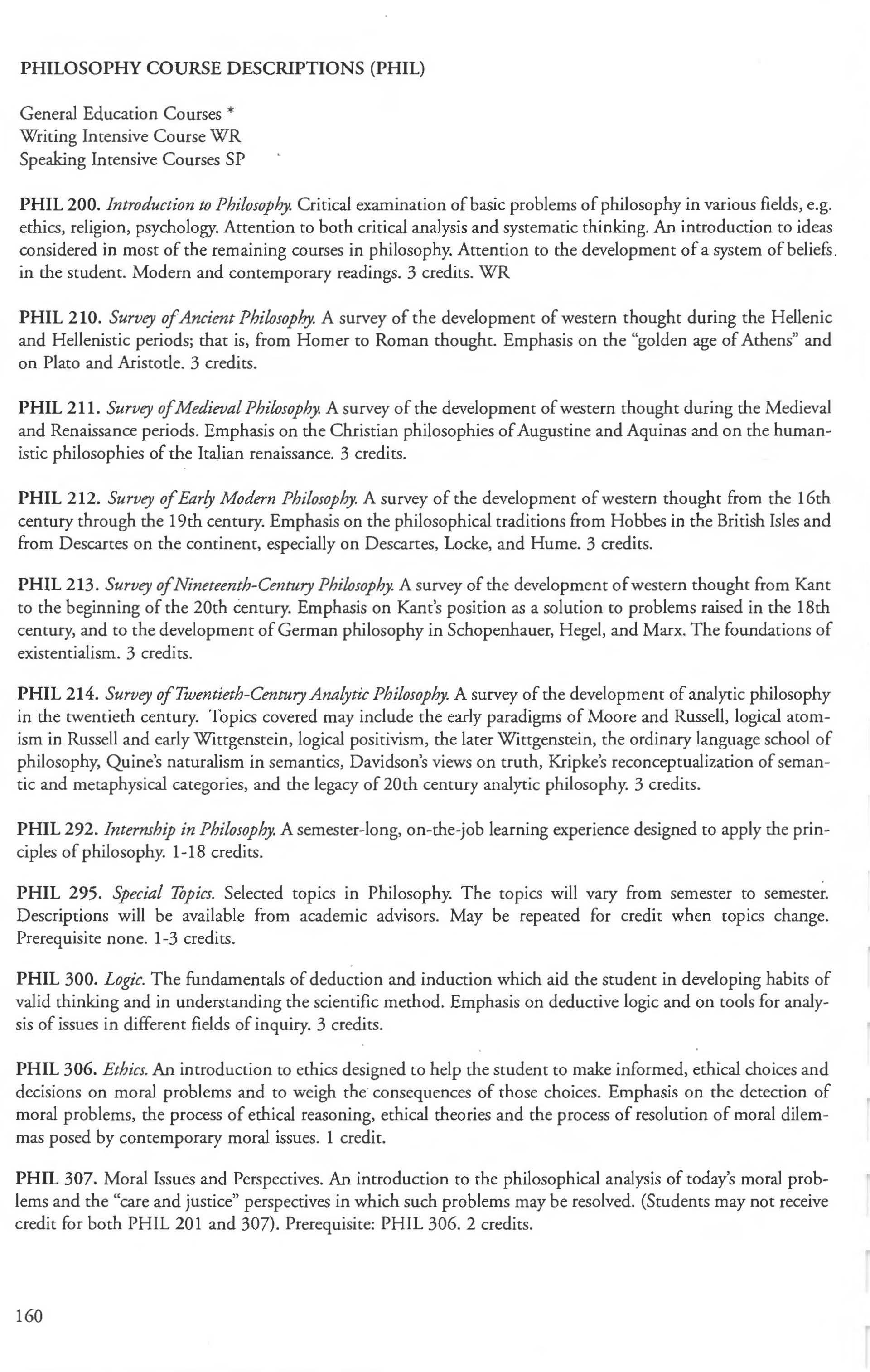 Other courses offered: Internships (1-18 credits) 292, 392, 492; Directed or Independent Study (1-18 credits) 390, 391, 490; Seminar 461; Honors Research- 498, 499; Special Topics (1-6 credits) 295, 495, 595; Study Abroad (1-18) 311, 312.