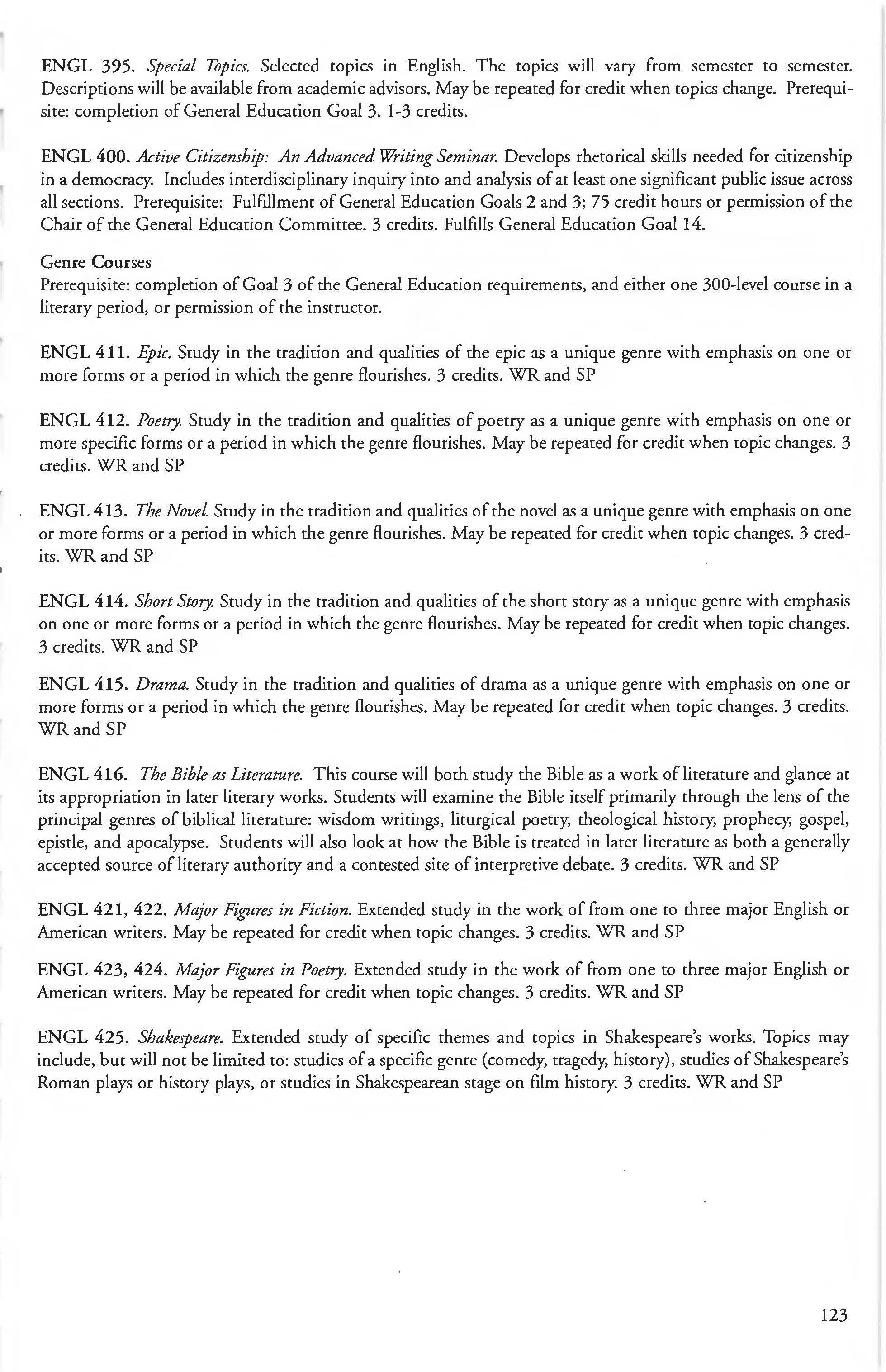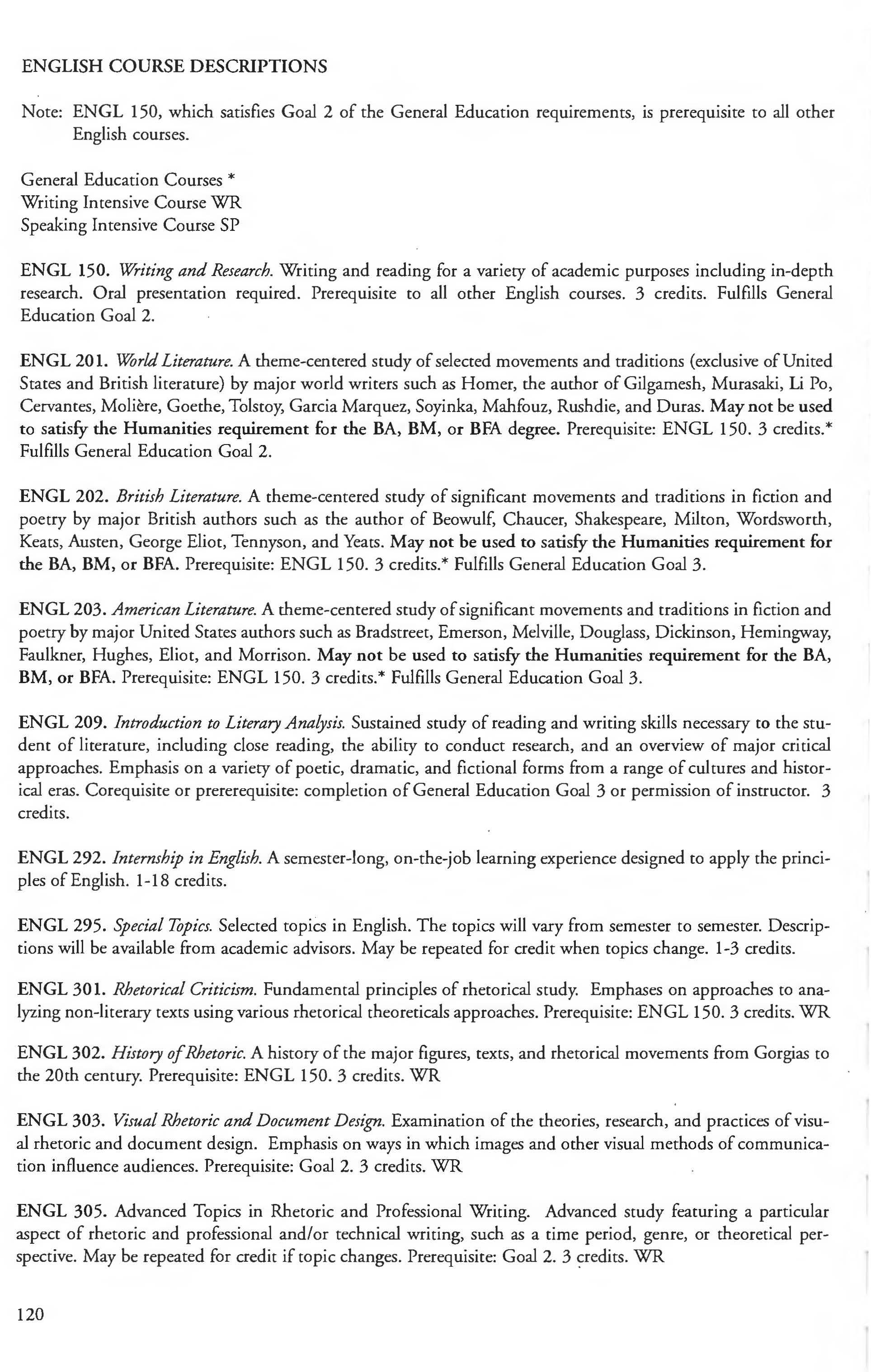 Writing Intensive Courses WR Speaking Intensive Courses SP