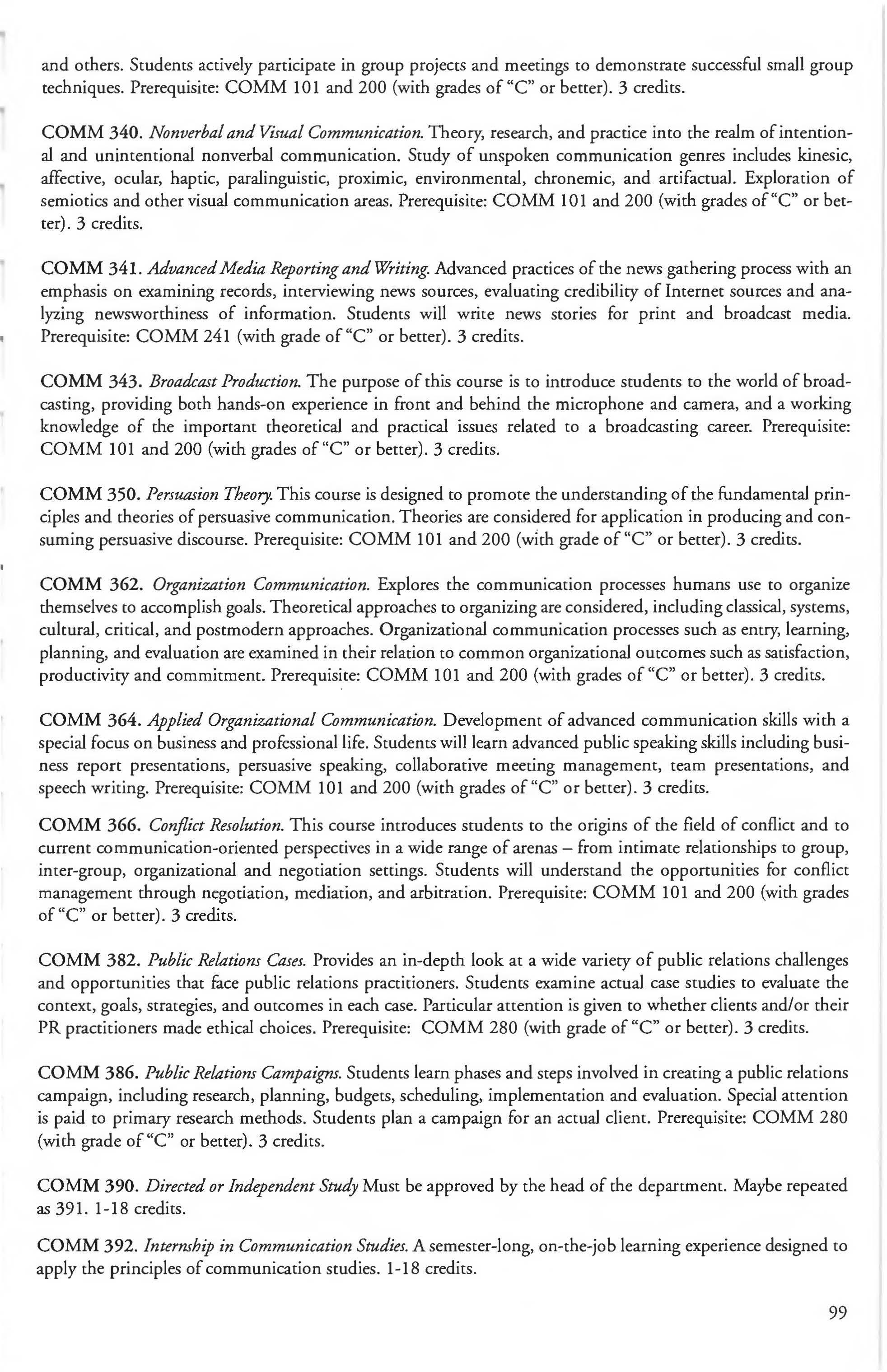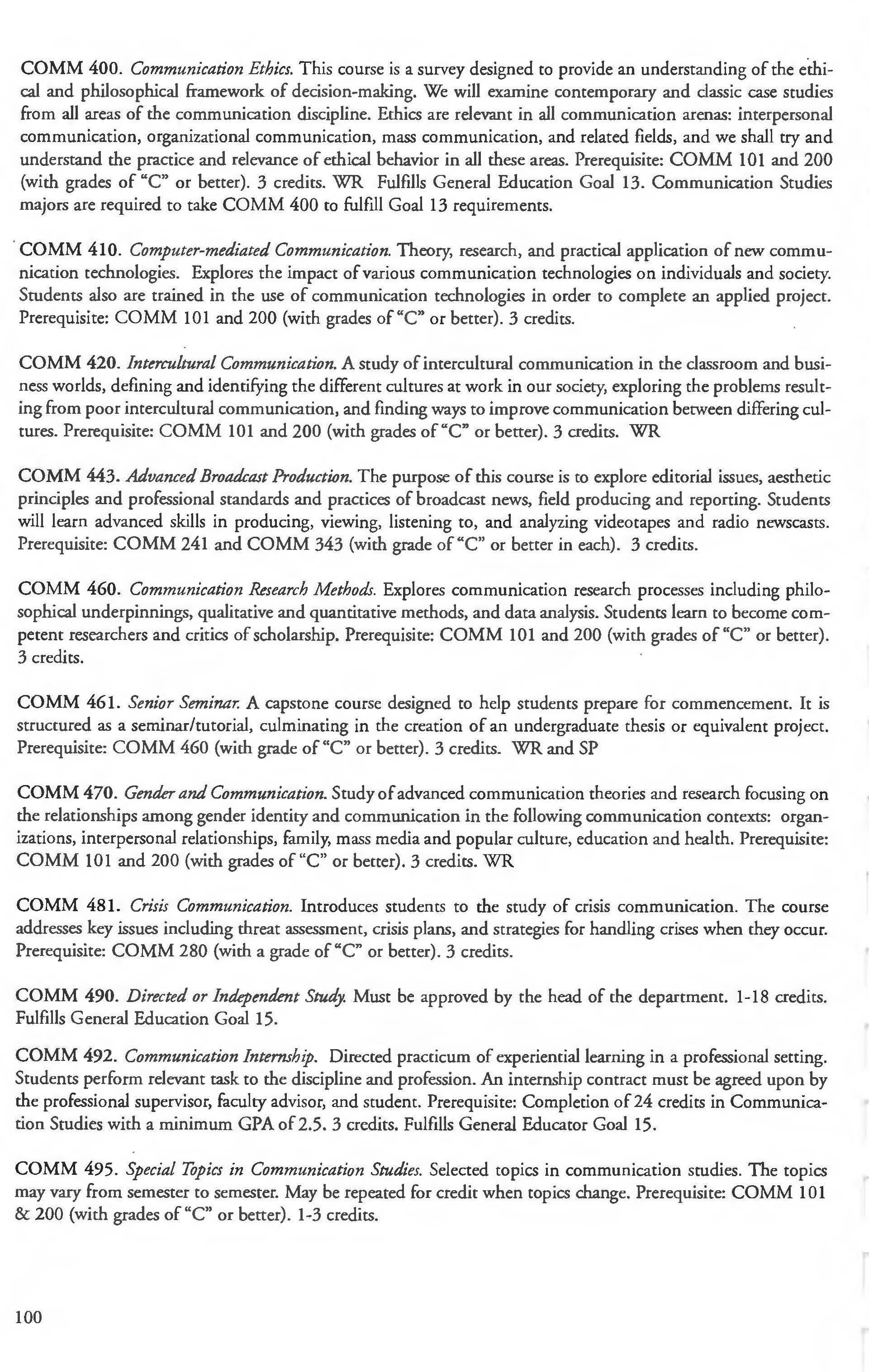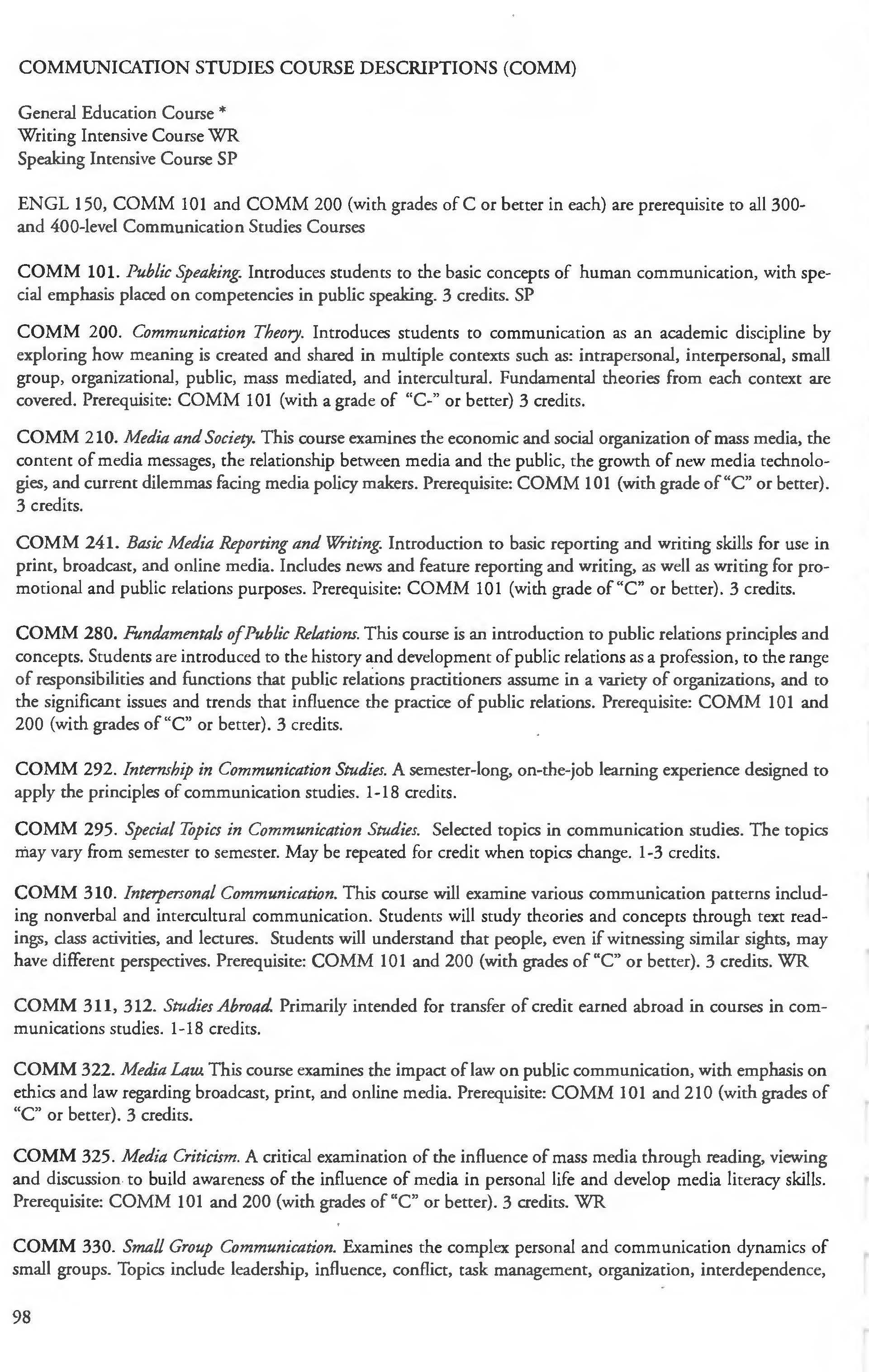 Communication Studies Courses 98-101