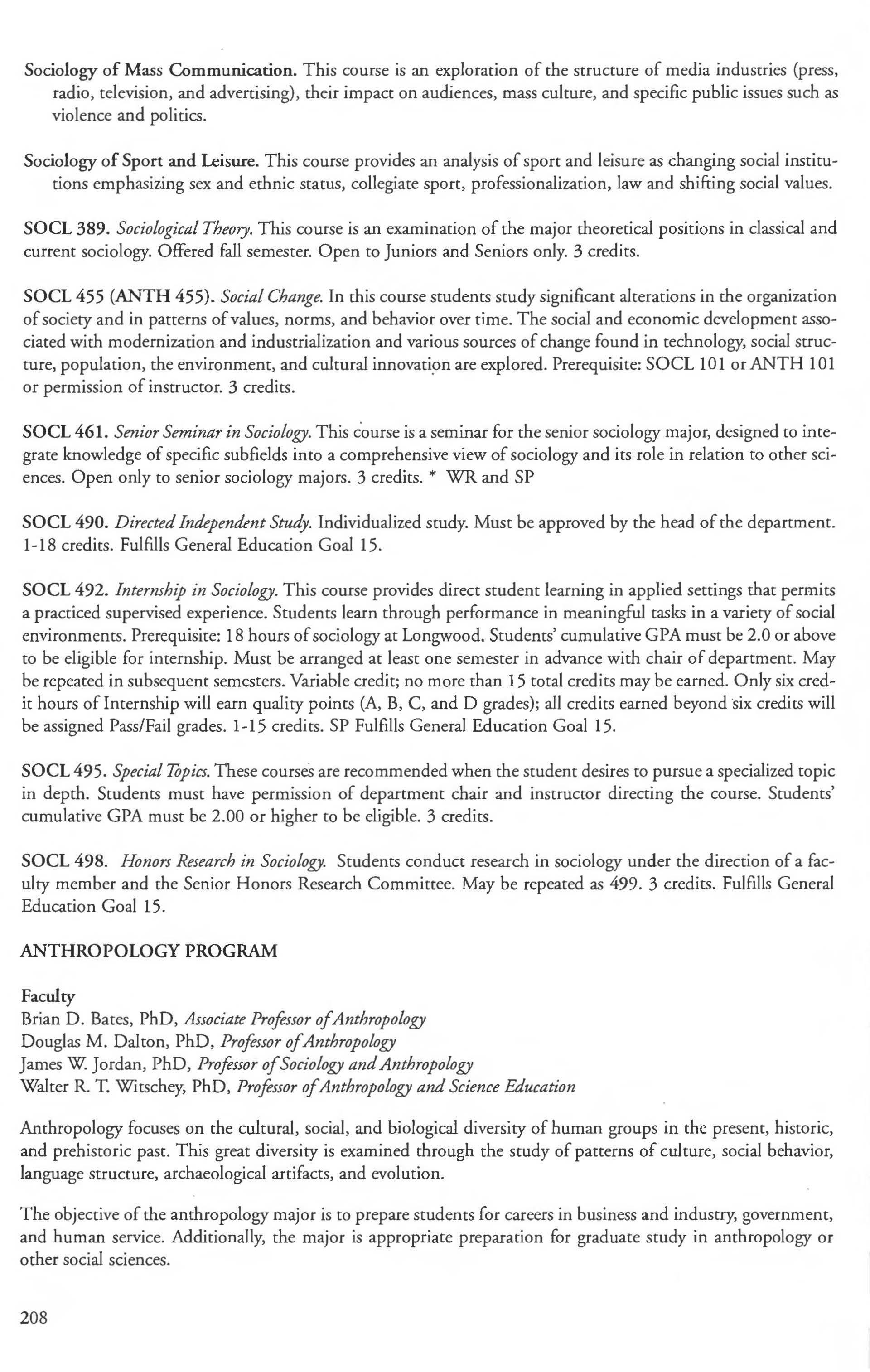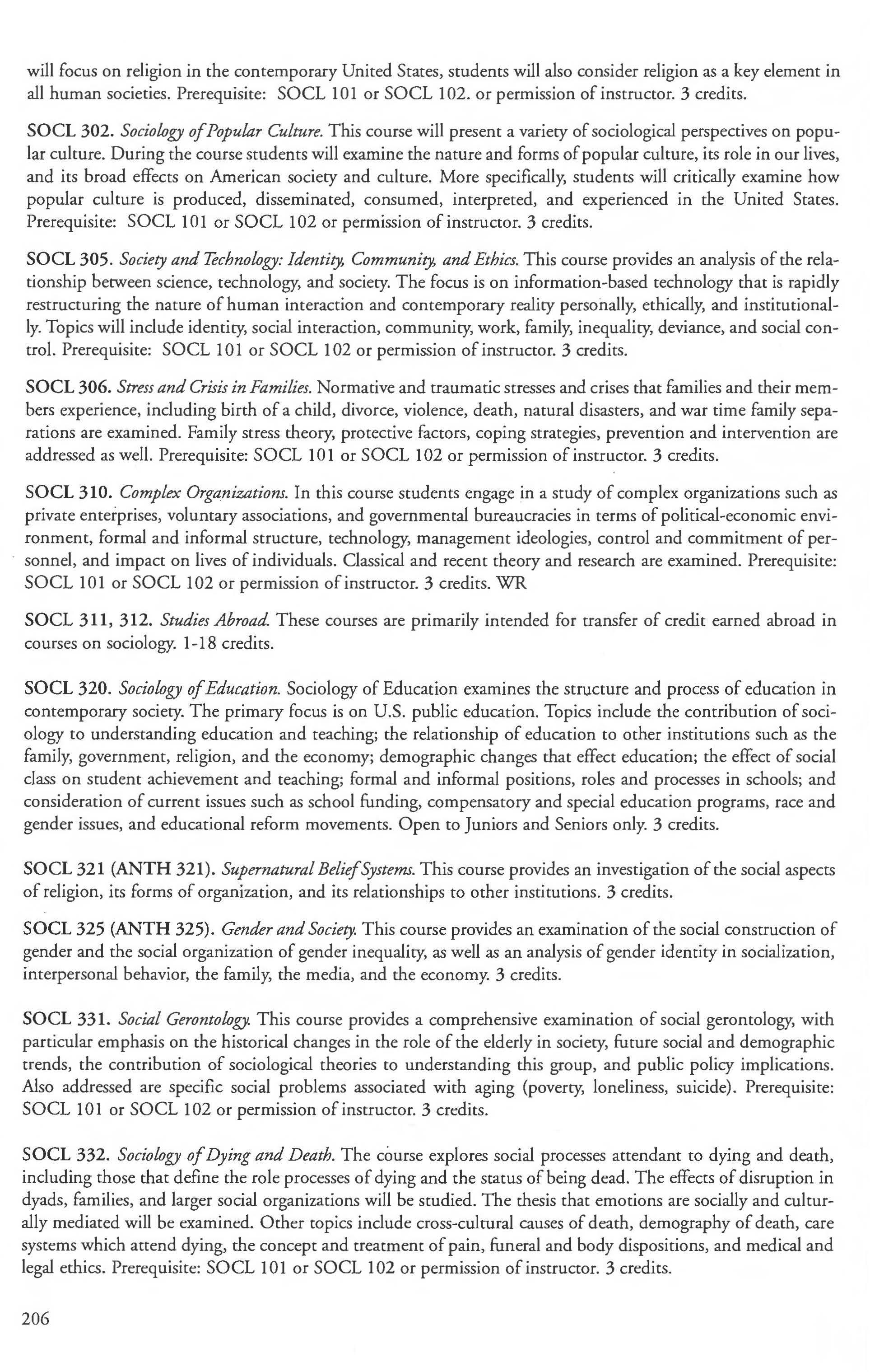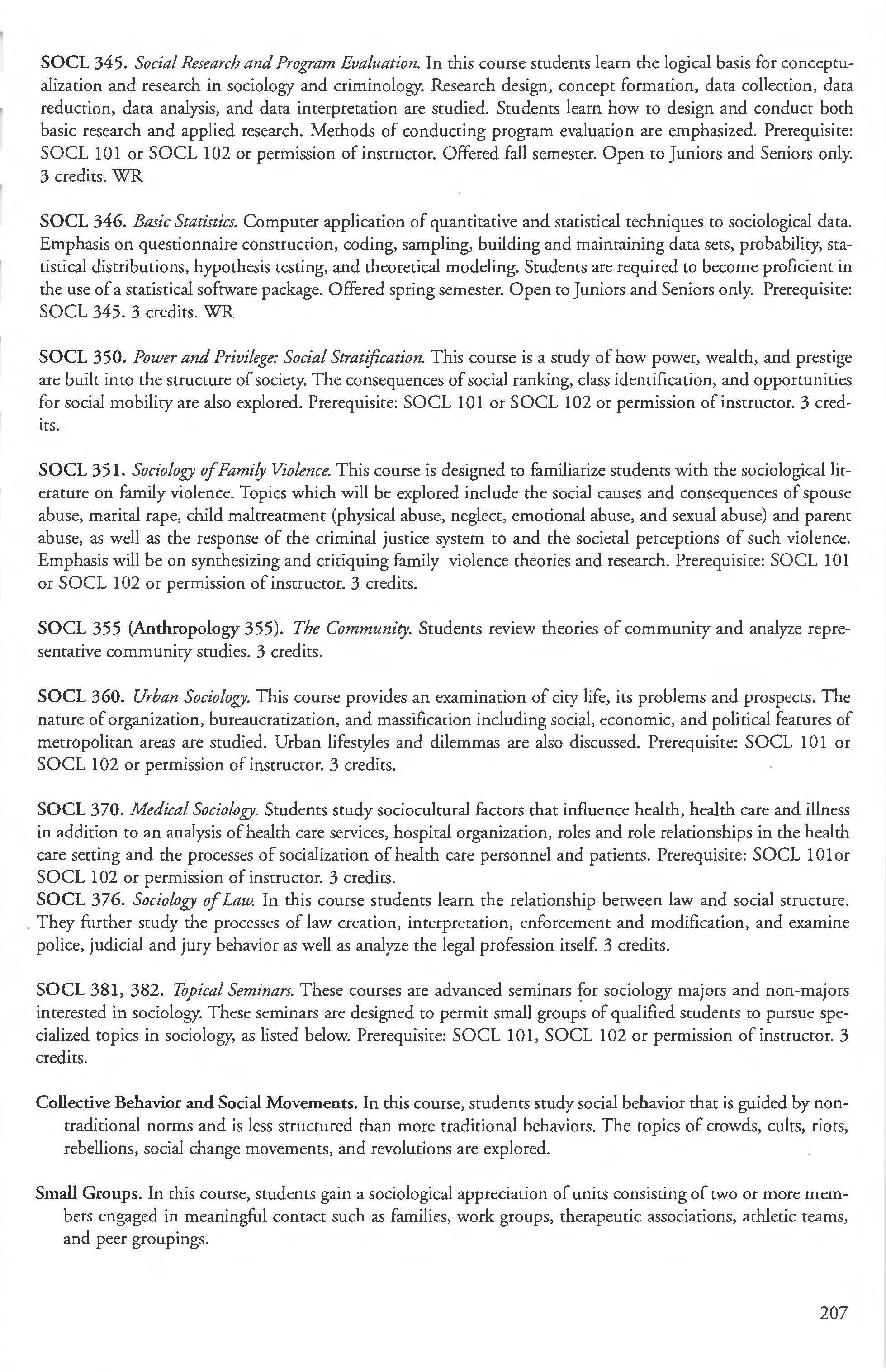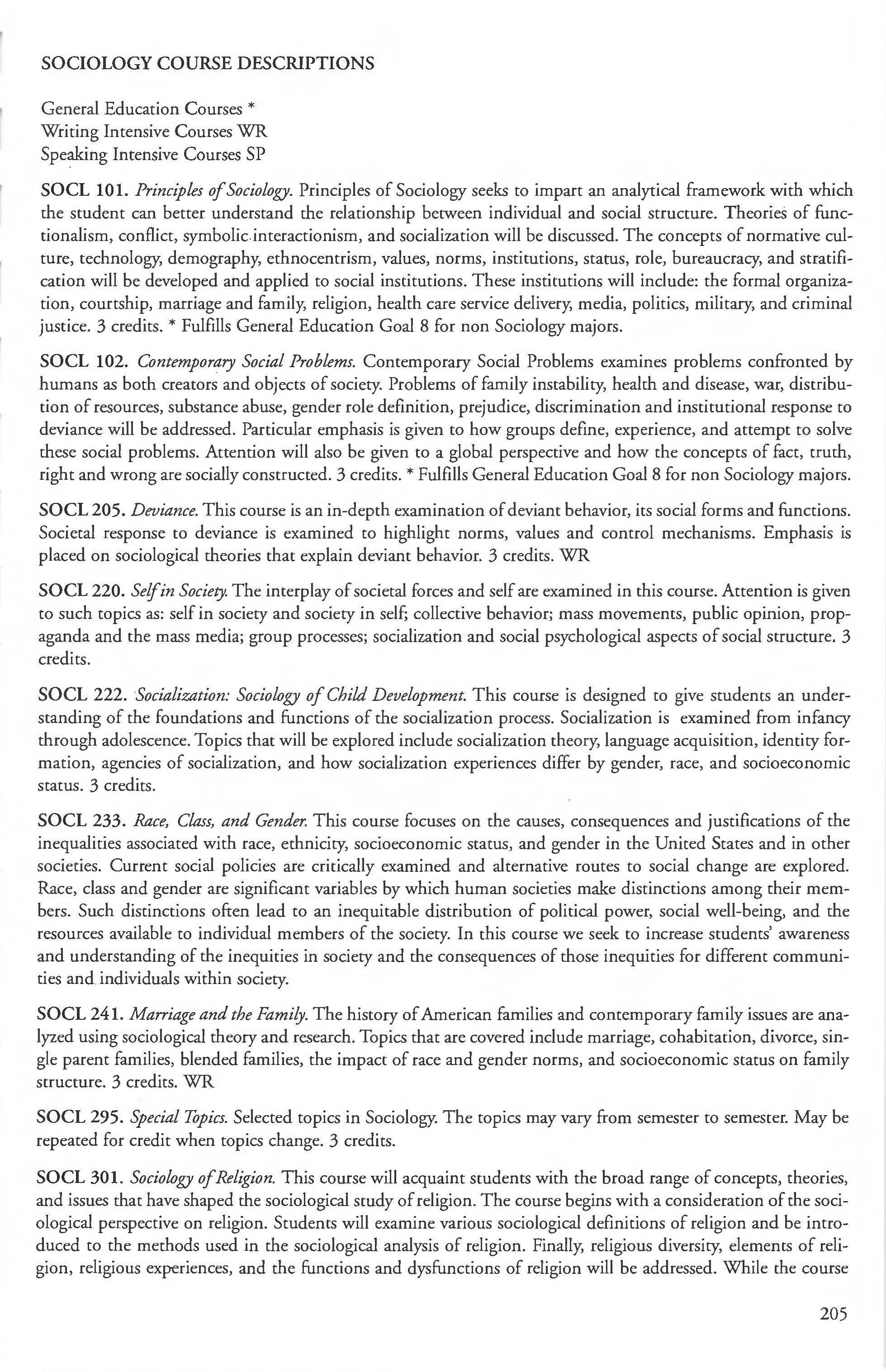 Sociology, Anthropology and Criminal Justice Studies, Dept. of 201 Sociology Courses 205-208