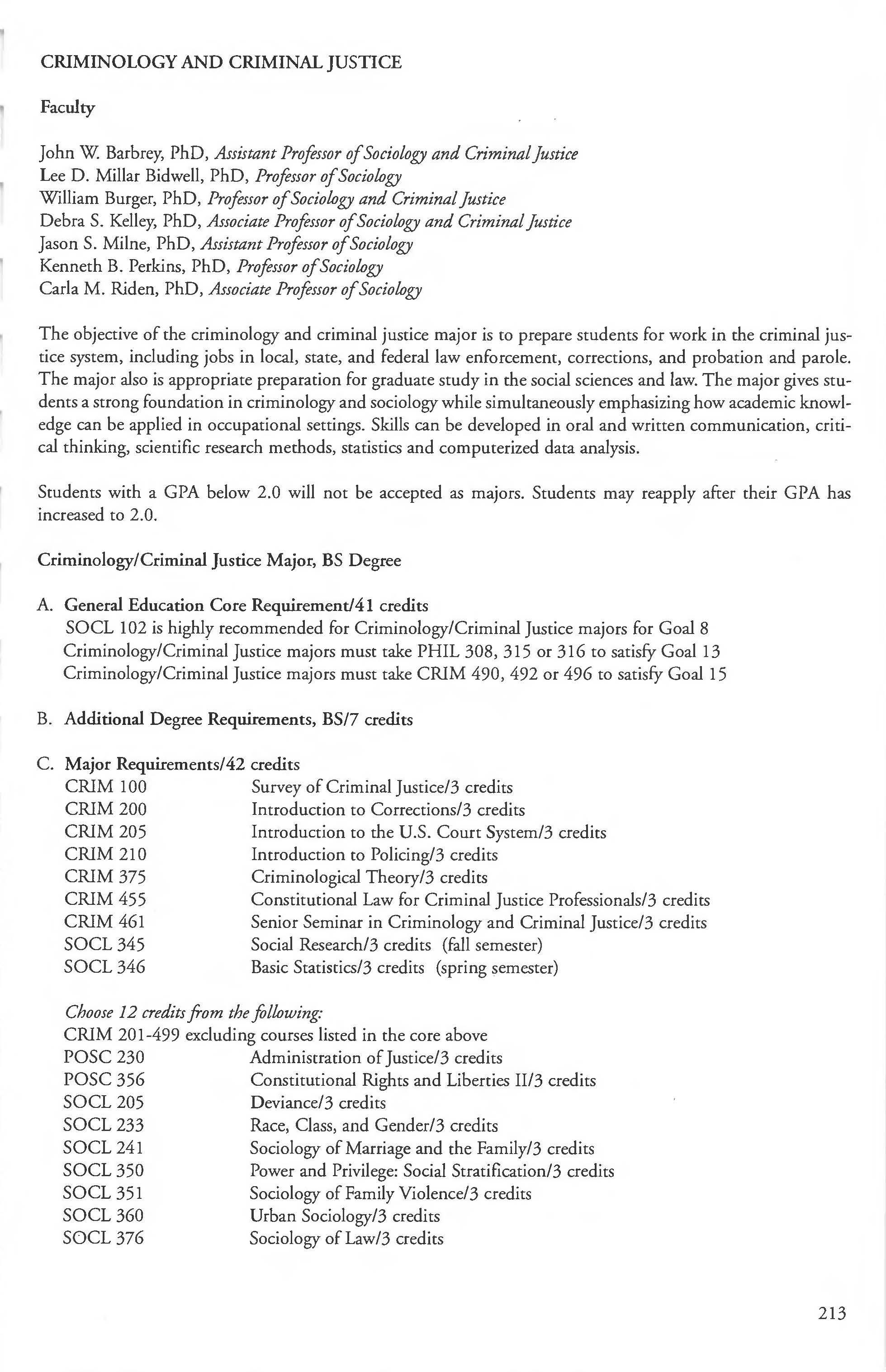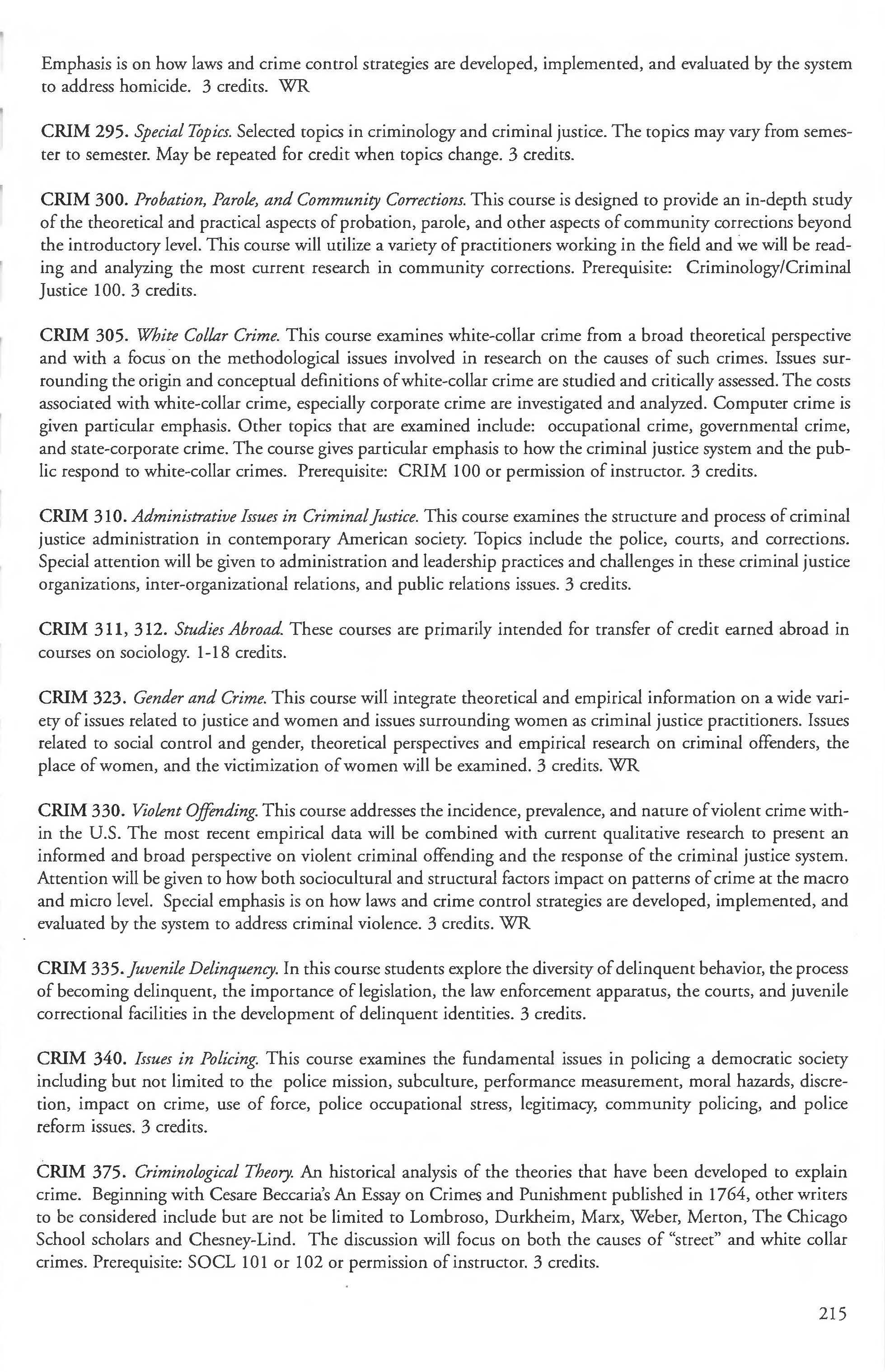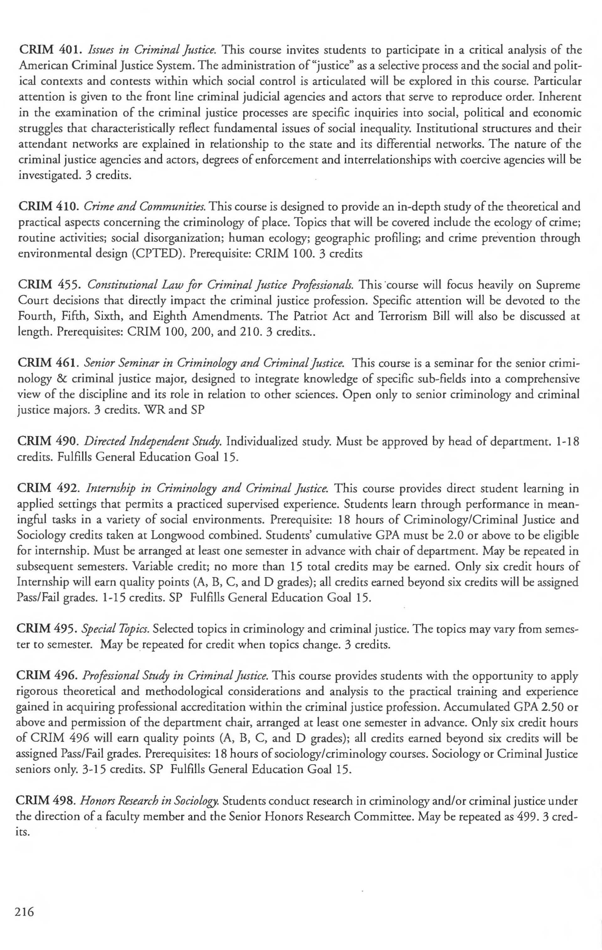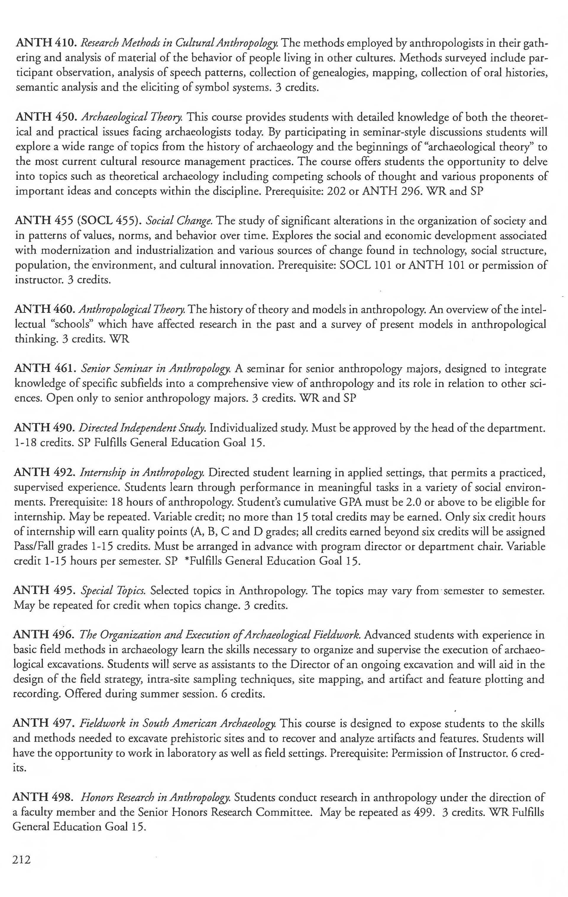 Sociology, Anthropology and Criminal Justice Studies, Dept. of 201 Sociology Courses 205-208